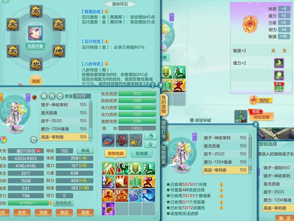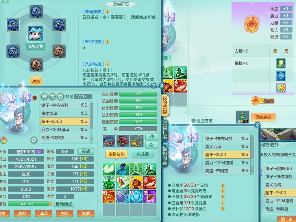 K22278风驰电掣159男盘丝,精灵舞,2龙1内胆神,【9只觉醒,已潜龙】,4位靓号,6宠皮,4特殊(羽袭,号角,祈雨,剑胆),5只六技能镜花灵,1只六技能龙姬,三红愤怒易成长笑里单加腰带,六特,仓库有921易成长单加54武器,5.0基础鼎+70攻+280血,8.7法爆,15个永久格子,7个纯六字,20只满果子,宠排在榜,经验成就在榜,背包51神兽内丹碎片,5只坐骑,冰晶庭院,带70天月卡。