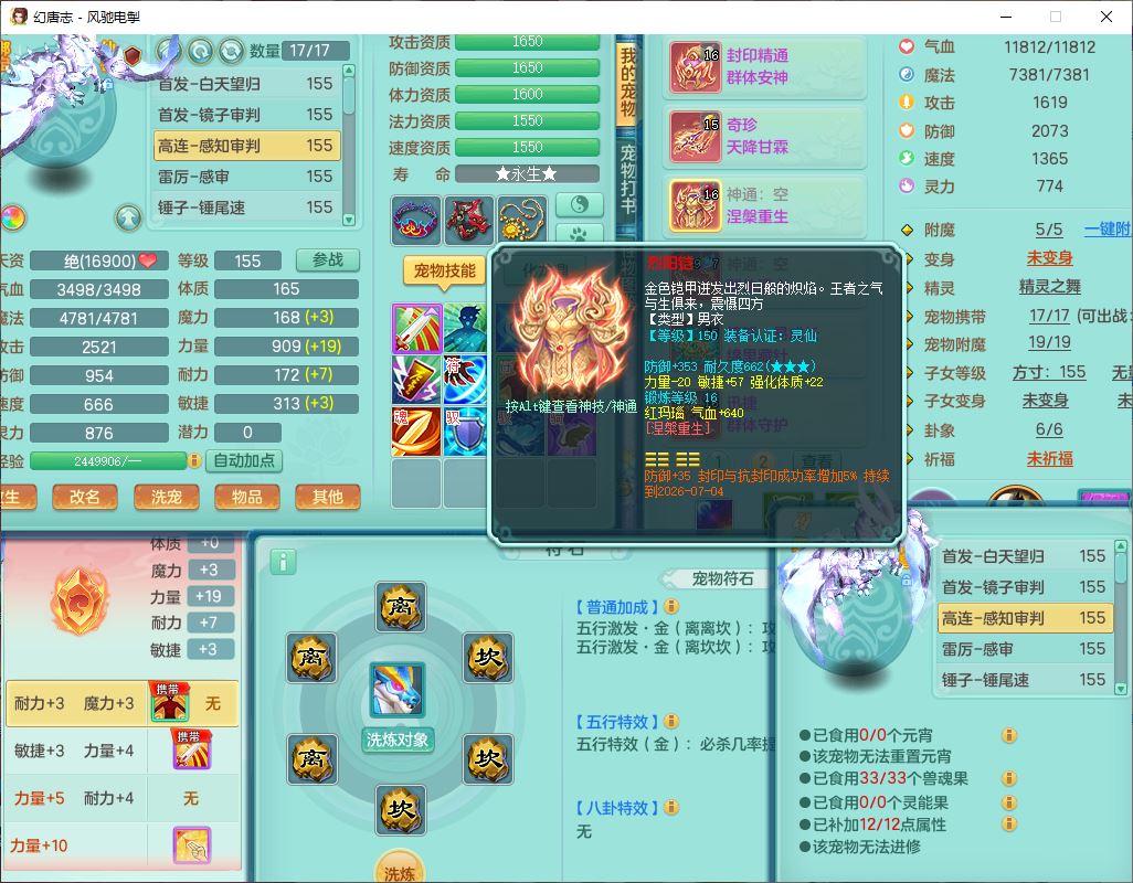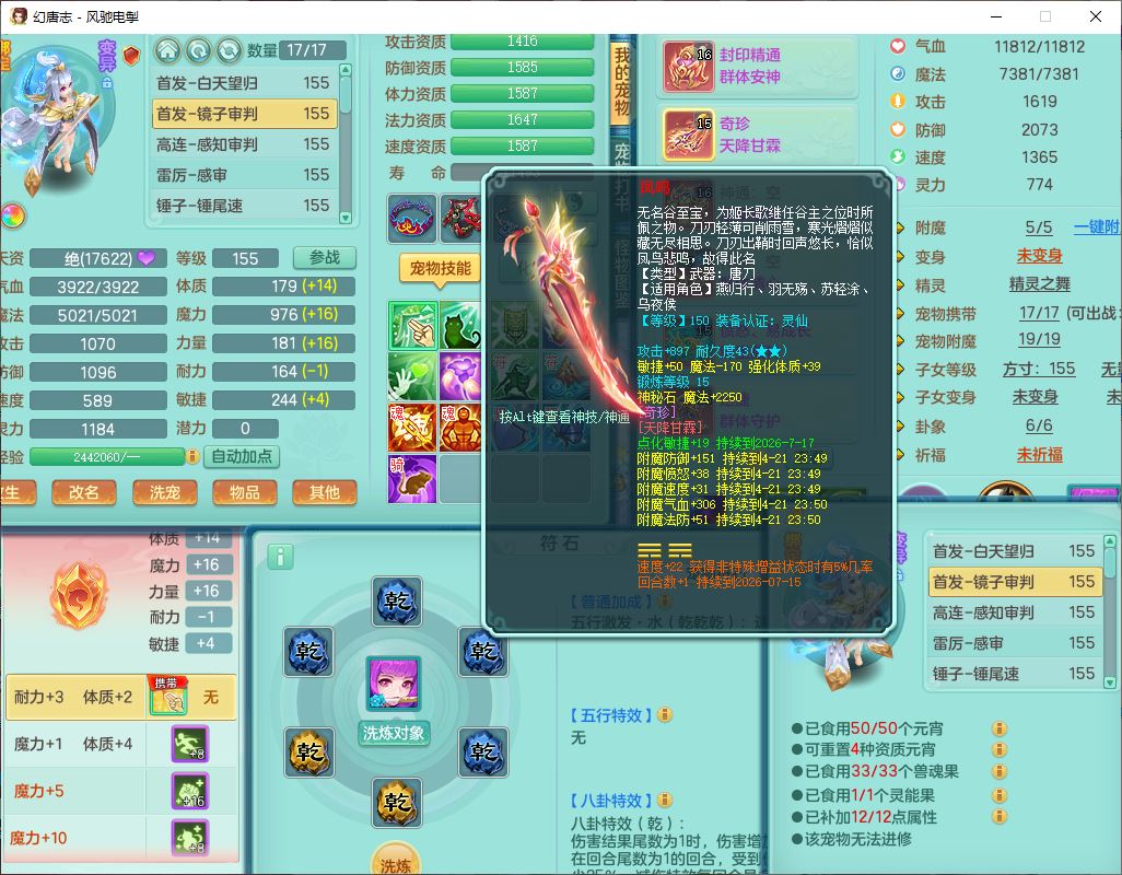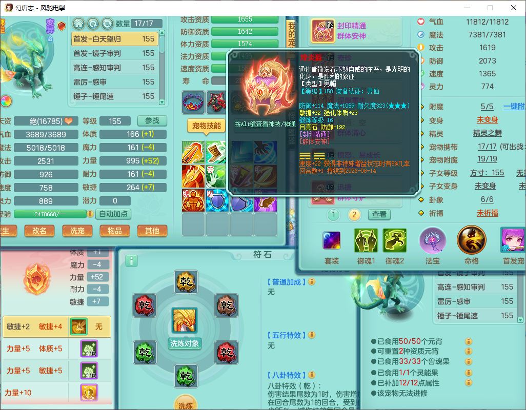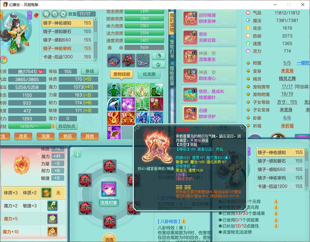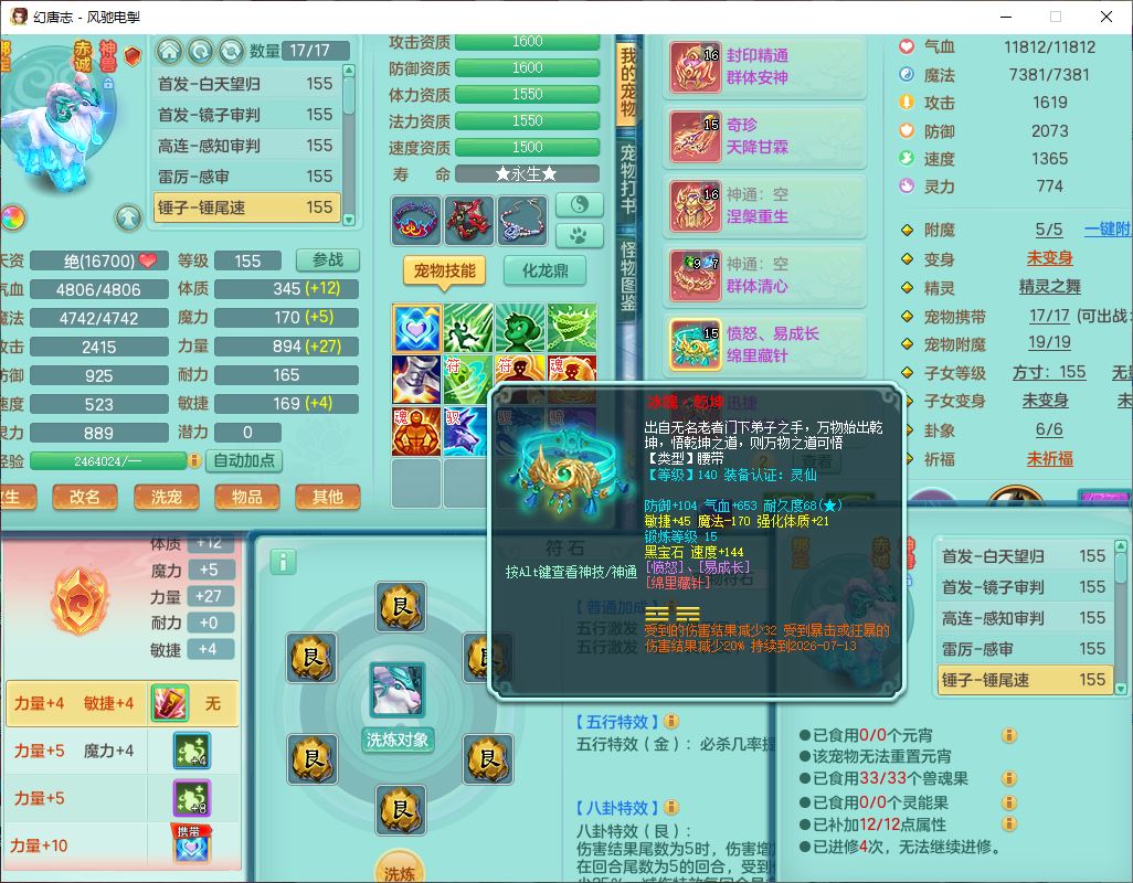 4373风驰电掣159男盘丝【潜龙号】精灵舞,4位靓号,2龙(换)1内5镜花1望归4特殊(剑胆、羽袭、战争、祈雨),9觉醒6宠皮7六字10四字23只满果子,17格子,11红星辰之拥装备,封印精通群体安神帽子,愤怒Y笑里腰带,迅捷群体守护鞋子,鼎5.0+70+280,法爆8.7,2套符石,69天月卡,冰晶庭院,永久外观、精灵皮肤,51个内丹碎片,5坐骑