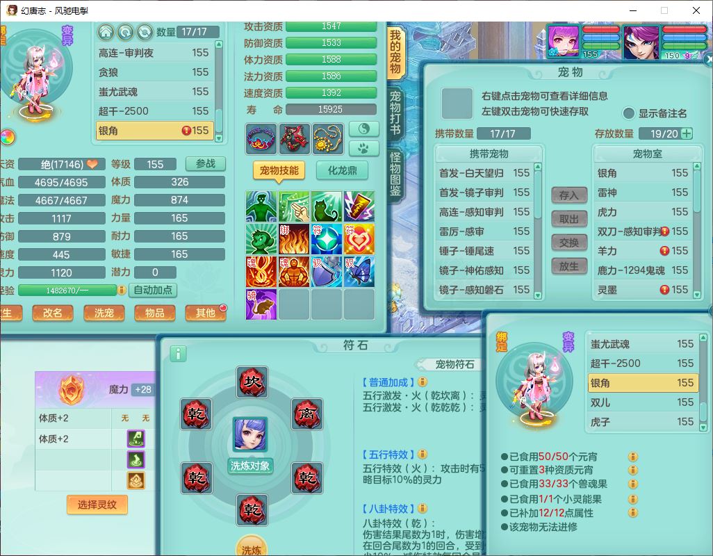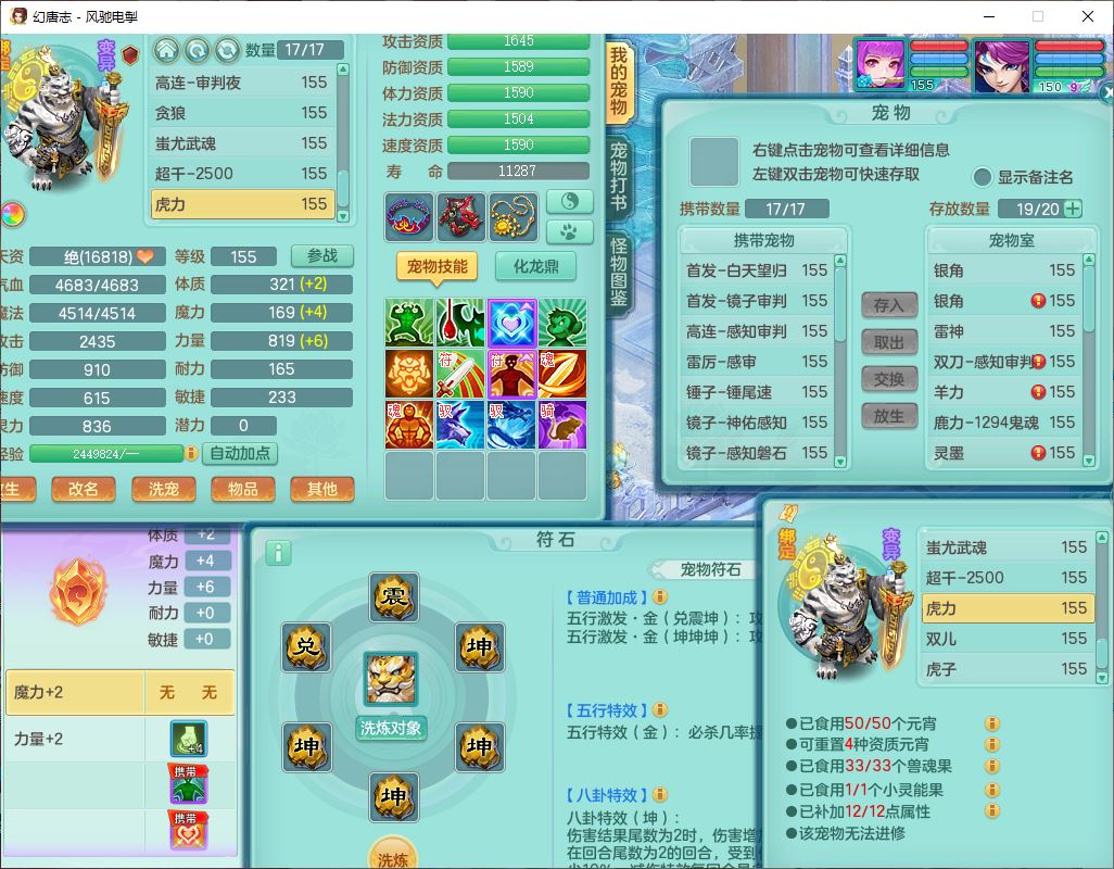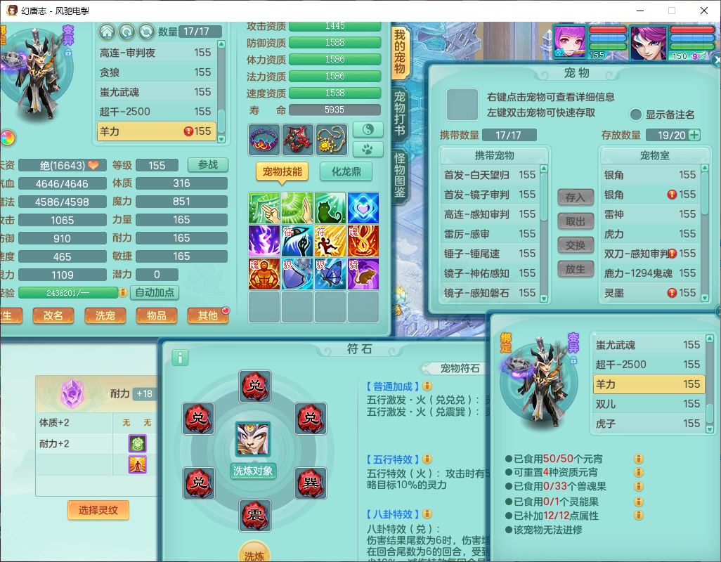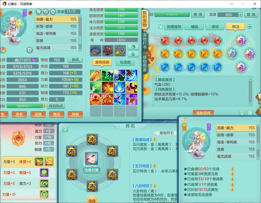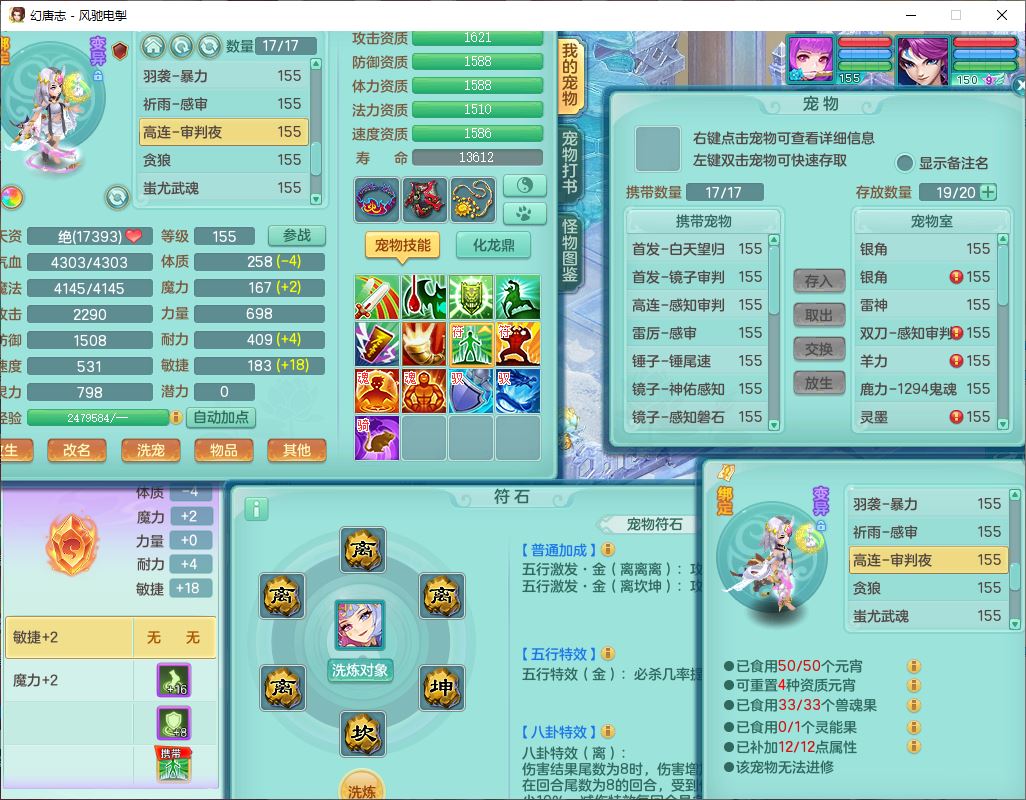 4373风驰电掣159男盘丝【潜龙号】精灵舞,4位靓号,2龙(换)1内5镜花1望归4特殊(剑胆、羽袭、战争、祈雨),9觉醒6宠皮7六字10四字23只满果子,17格子,11红星辰之拥装备,封印精通群体安神帽子,愤怒Y笑里腰带,迅捷群体守护鞋子,鼎5.0+70+280,法爆8.7,2套符石,69天月卡,冰晶庭院,永久外观、精灵皮肤,51个内丹碎片,5坐骑