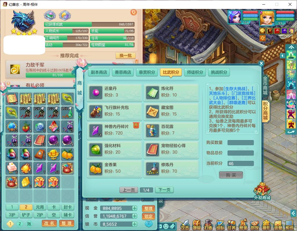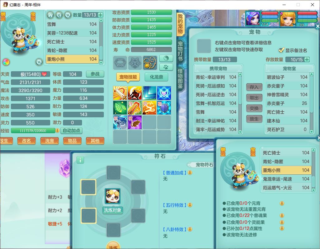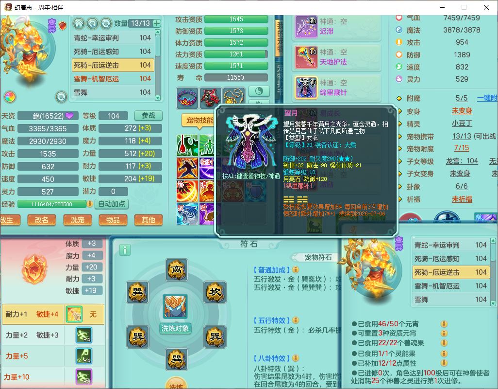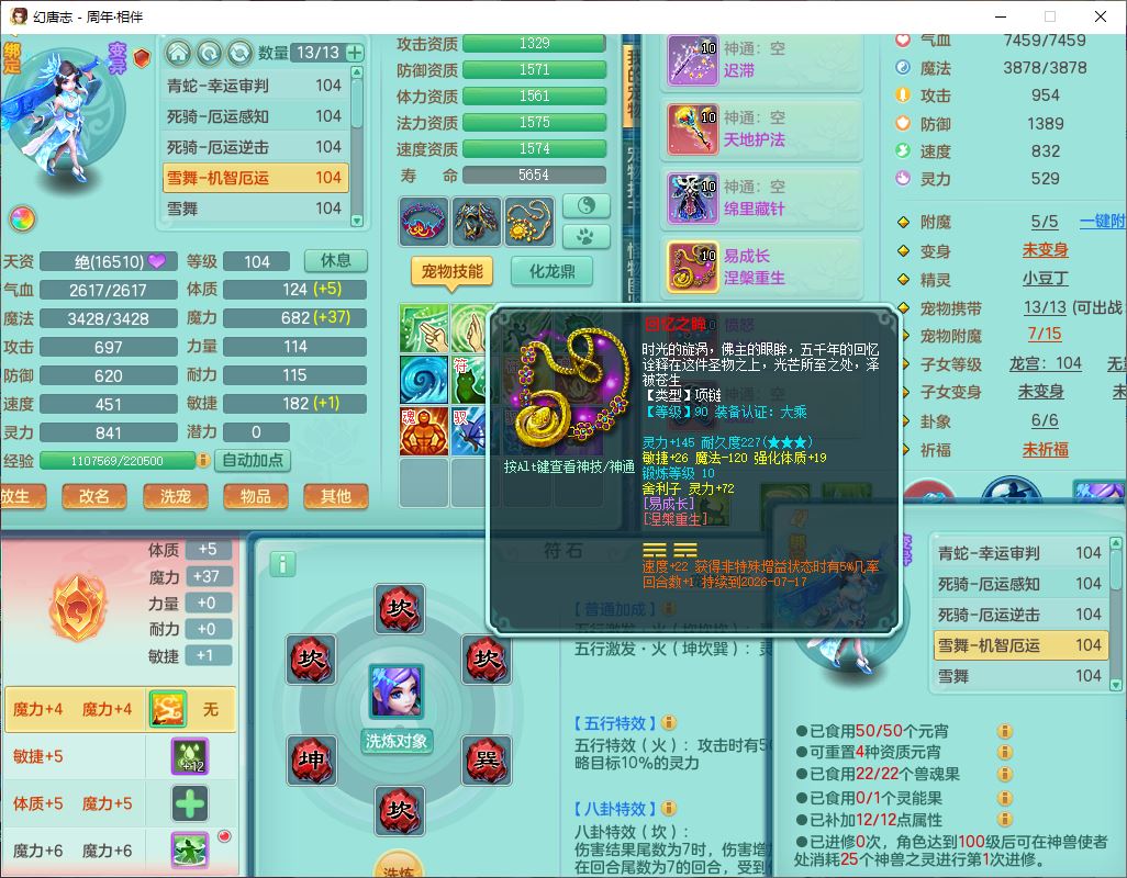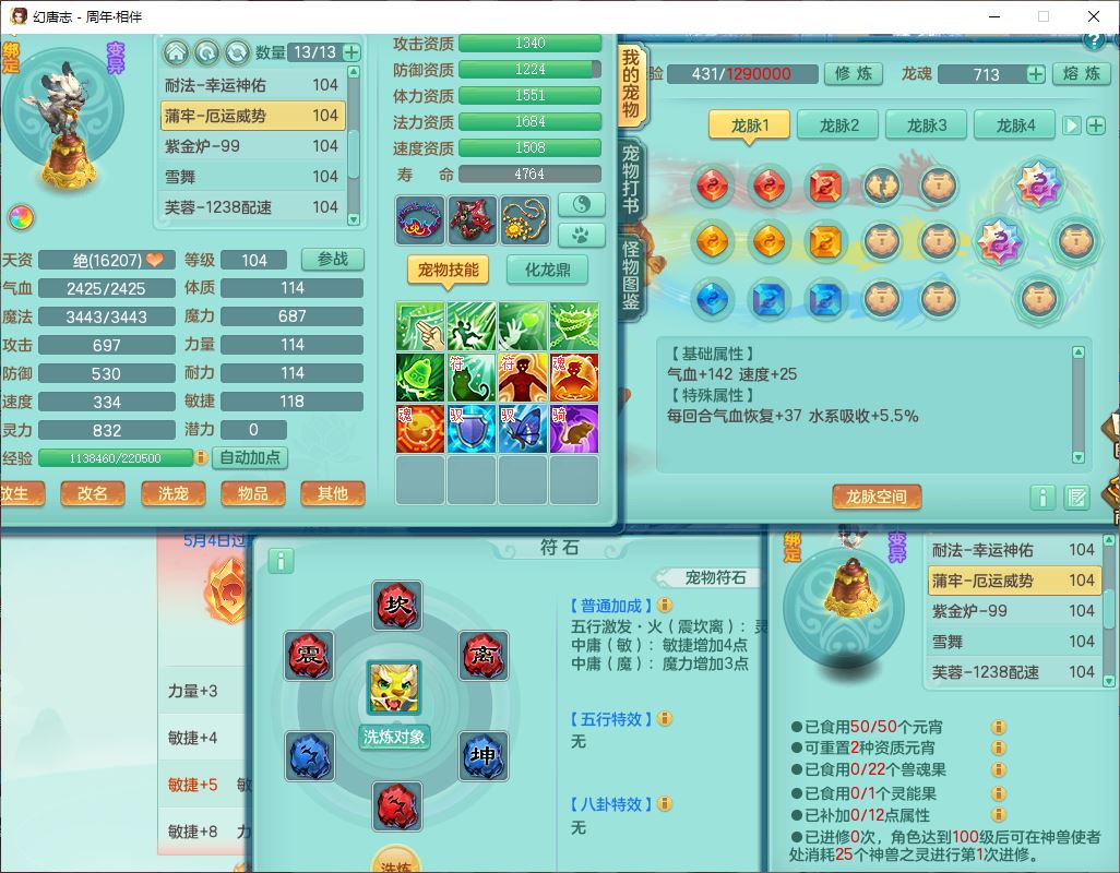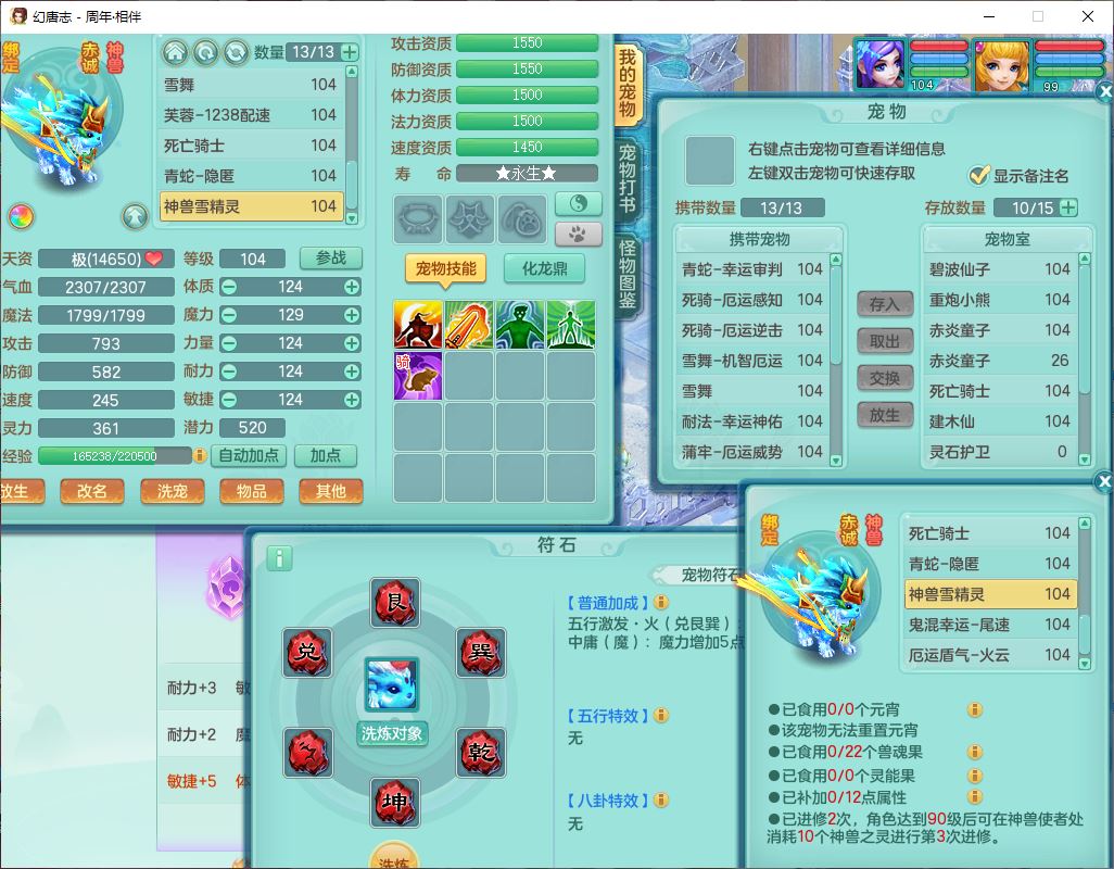 52695周年相伴99女普陀体敏精灵,1内(带蛇影)1青蛇(无内)4翻江2舍身1金炉1童子,4觉醒3宠皮2五字8四字7只满果子,8红装备,Y慈航项链,愤怒晶清腰带,鼎2.0,27天月卡,冰晶庭院153,永久头饰、精灵皮肤,57个内丹碎片,1双人飞行坐骑