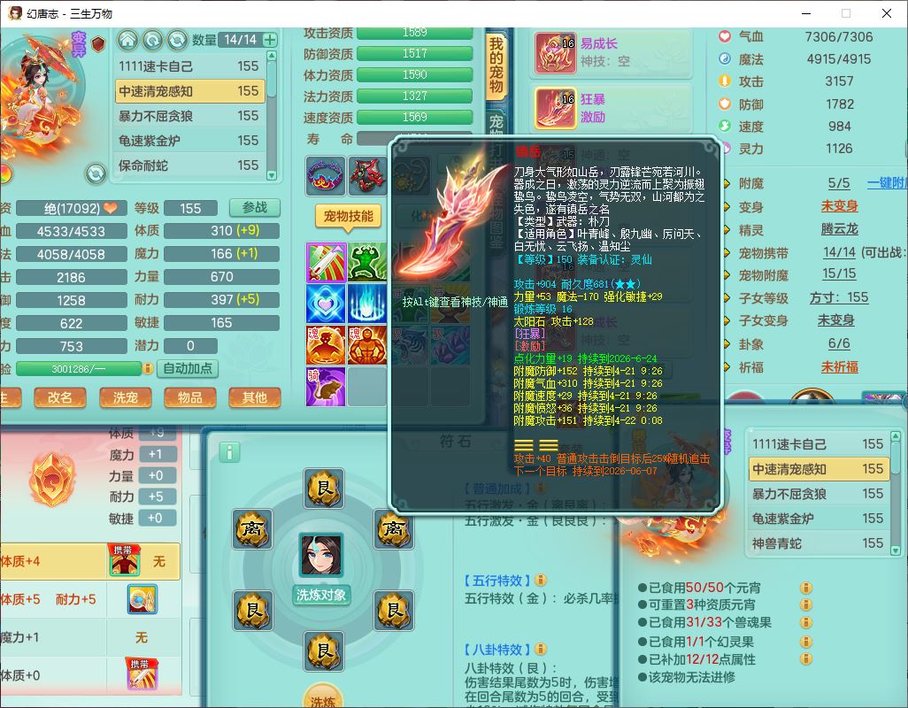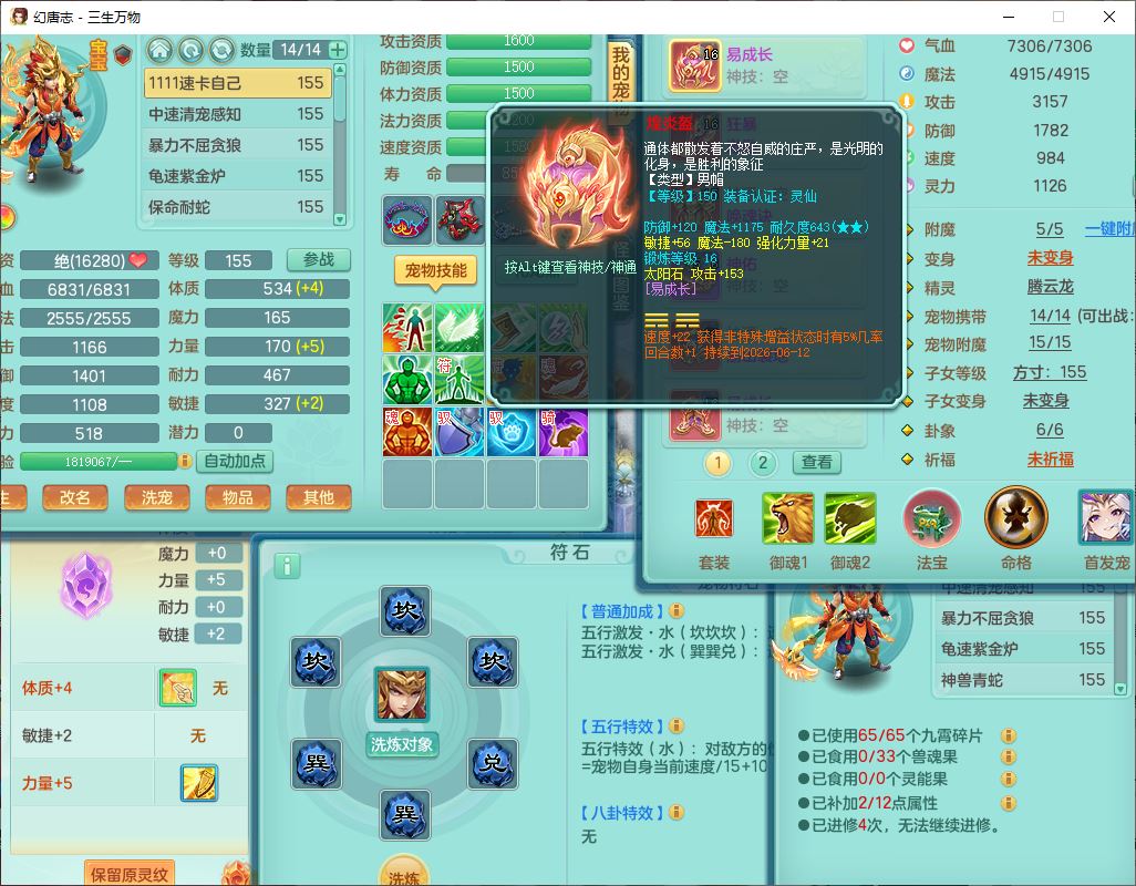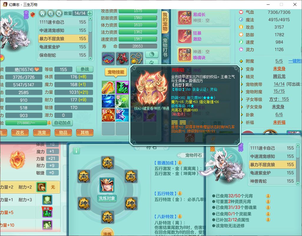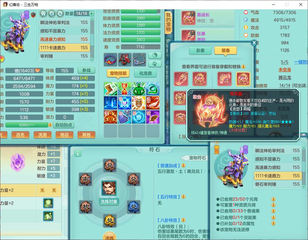 71476WH三生万物159男万兽【马上发财+暴龙猎手+火焰之力】精灵歌,1龙1内丹青蛇1神兽(无内)2镜花1龙姬1望归1金炉,3觉醒1宠皮5四字综合7只满果子,7红装备,单加狂暴激励武器,神佑项链,崩山衣服,一套封系装备,封锁武器,愤怒腰带,匠心止戈项链,鼎4.5,冰晶庭院153,永久头饰、精灵皮肤,1双人飞行坐骑