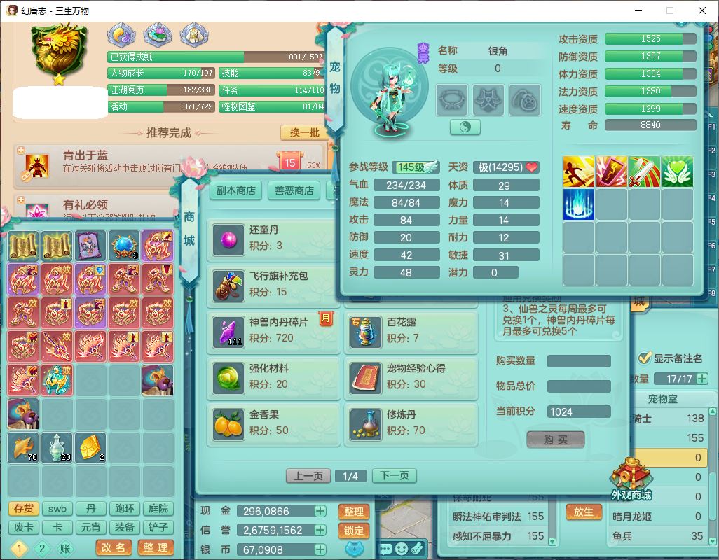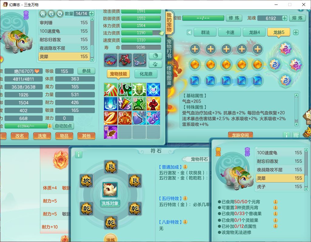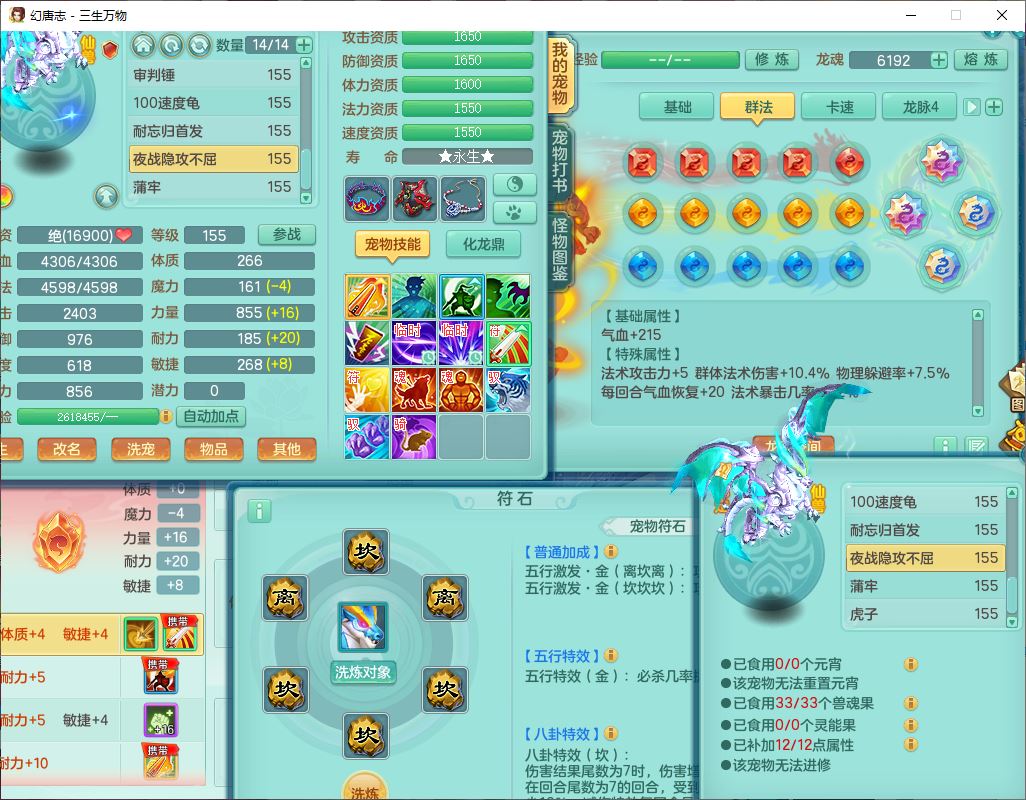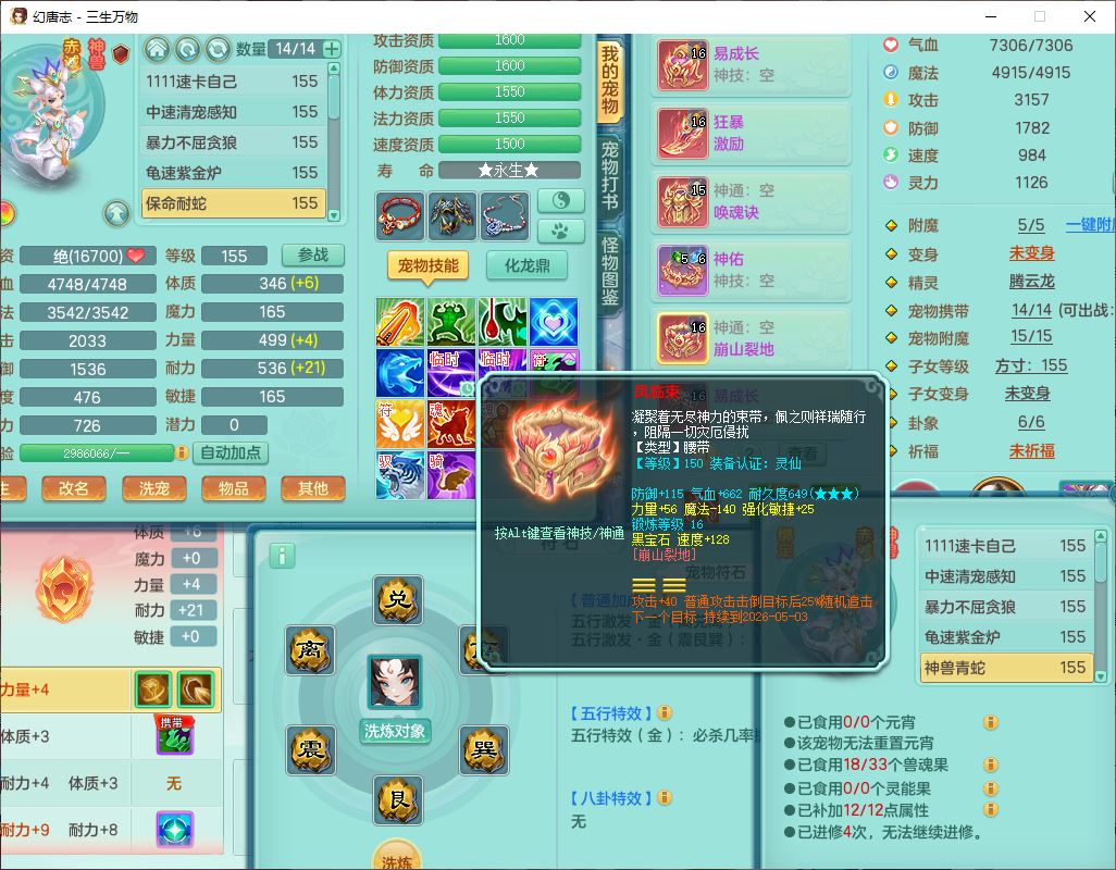 71476WH三生万物159男万兽【马上发财+暴龙猎手+火焰之力】精灵歌,1龙1内丹青蛇1神兽(无内)2镜花1龙姬1望归1金炉,3觉醒1宠皮5四字综合7只满果子,7红装备,单加狂暴激励武器,神佑项链,崩山衣服,一套封系装备,封锁武器,愤怒腰带,匠心止戈项链,鼎4.5,冰晶庭院153,永久头饰、精灵皮肤,1双人飞行坐骑