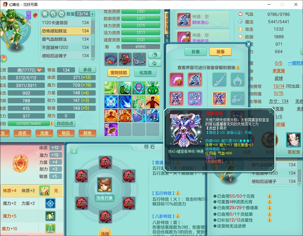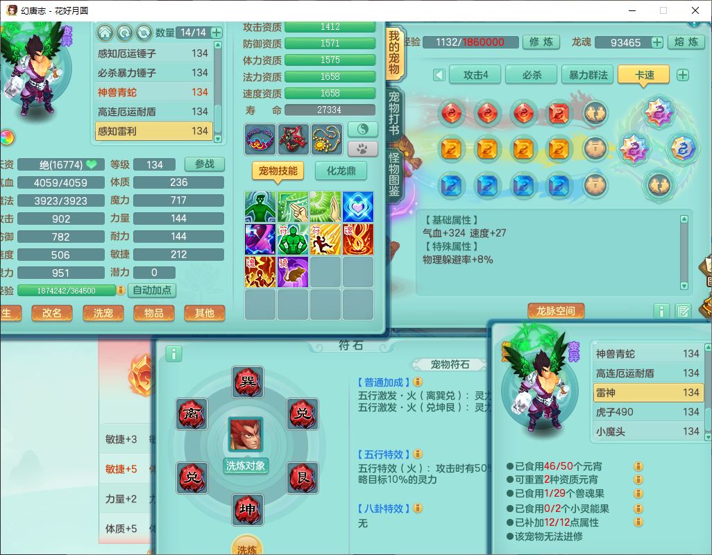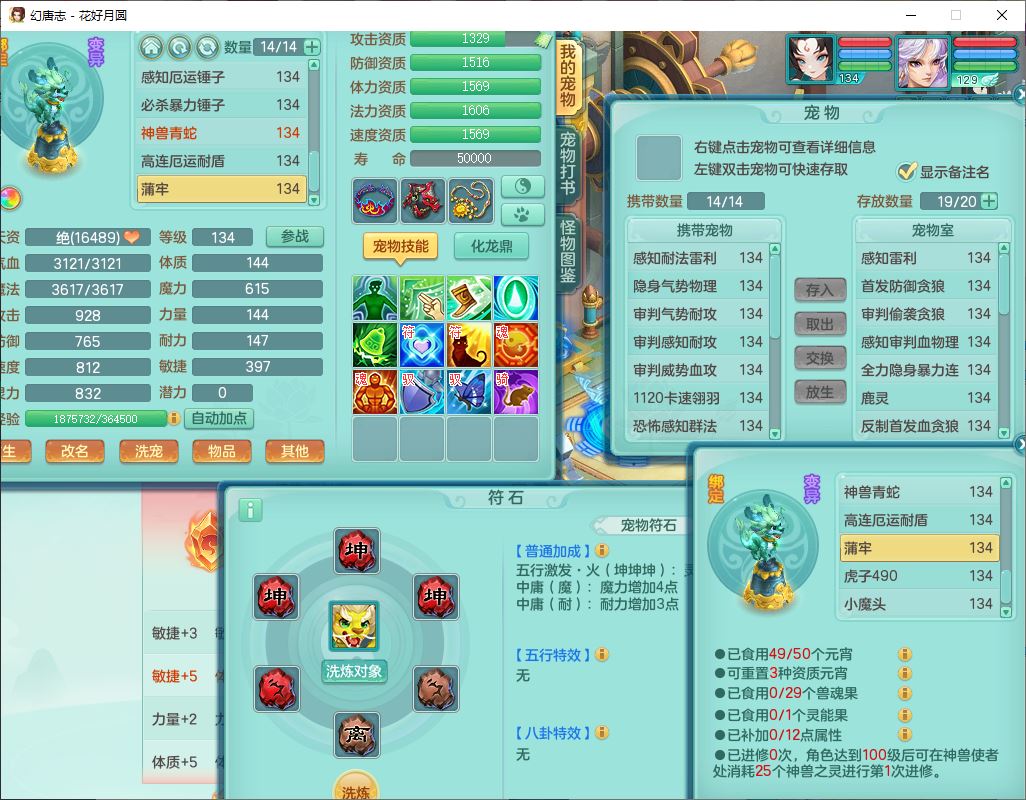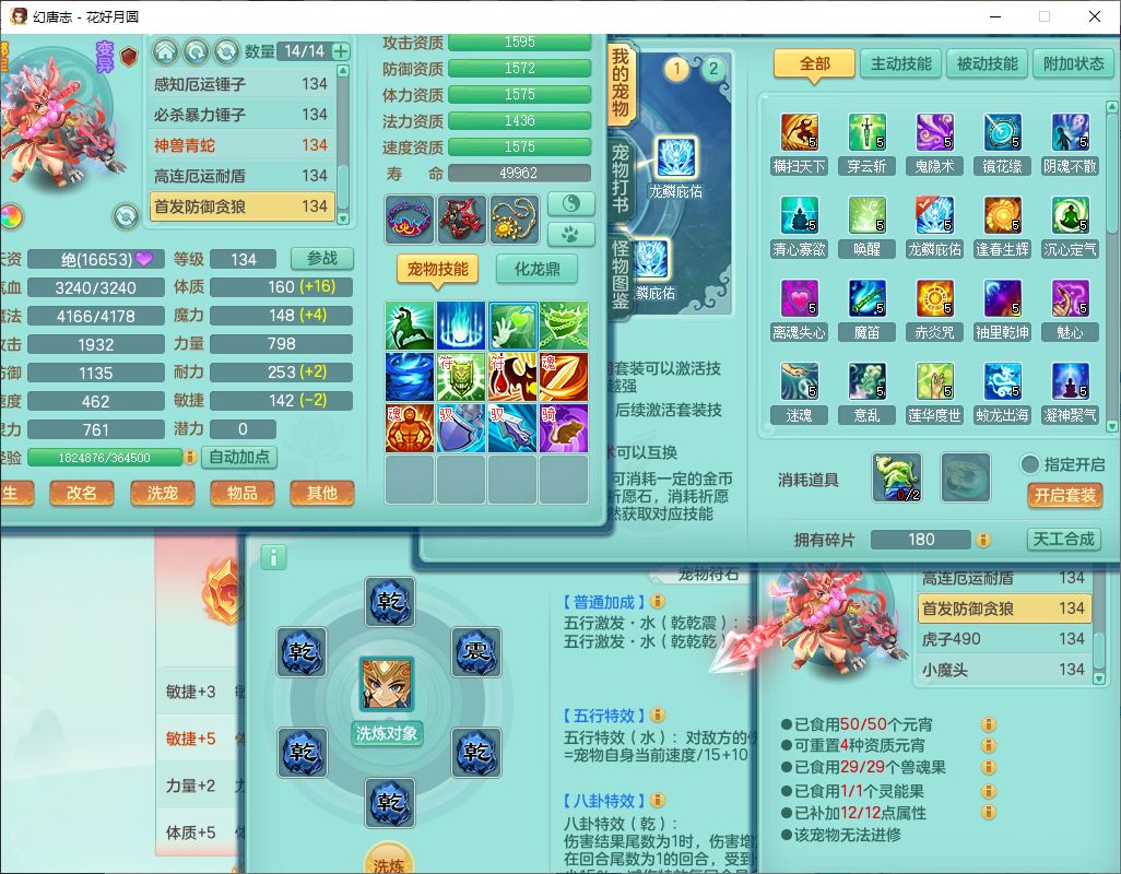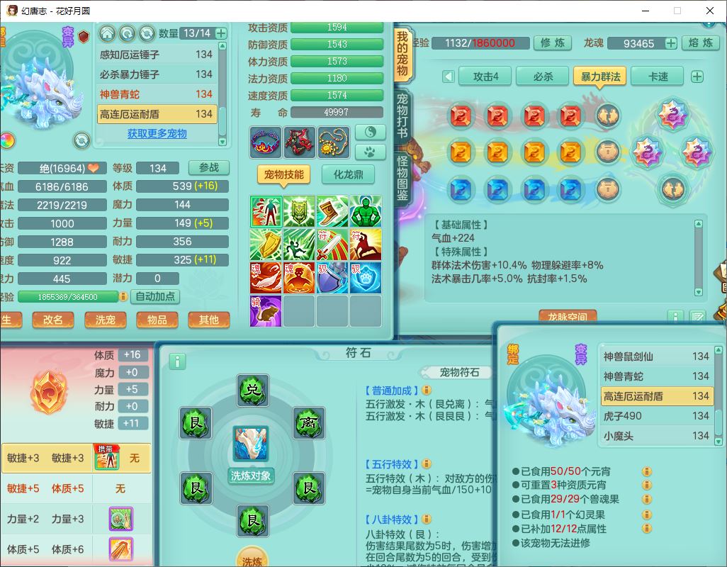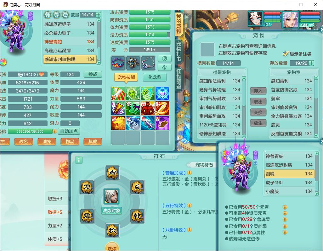 4372花好月圆129男灵月【潜龙号】精灵舞,7龙(1换)3内(1青蛇)3贪狼2九幽1金炉,11觉醒7宠皮(1幻灵果)7六字4五字6四字19只满果子,8红装备,强壮群体守护衣服,愤怒止戈腰带,匠心四海衣服,Y激励鞋子,鼎4.0+56+224,2套符石,庭院150,永久外观、精灵皮肤,33个仙兽灵,140多个兽魂果,一页还童丹,1双人飞行坐骑