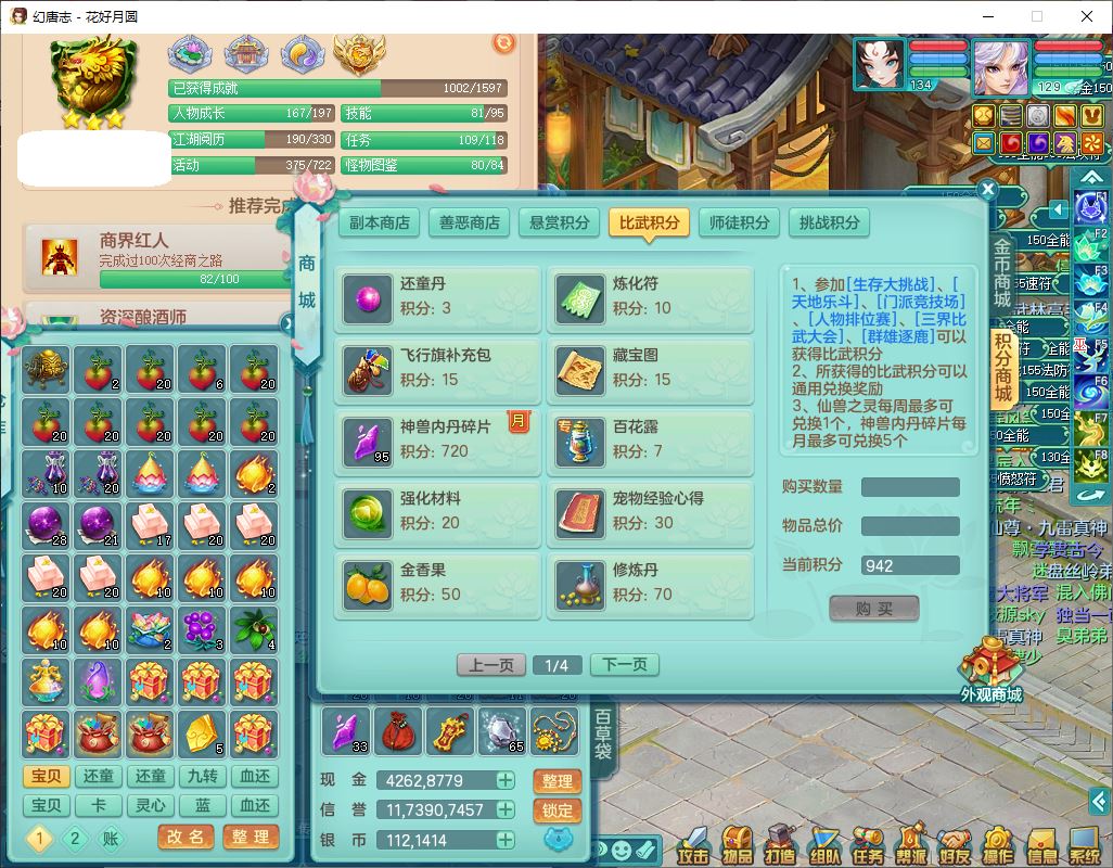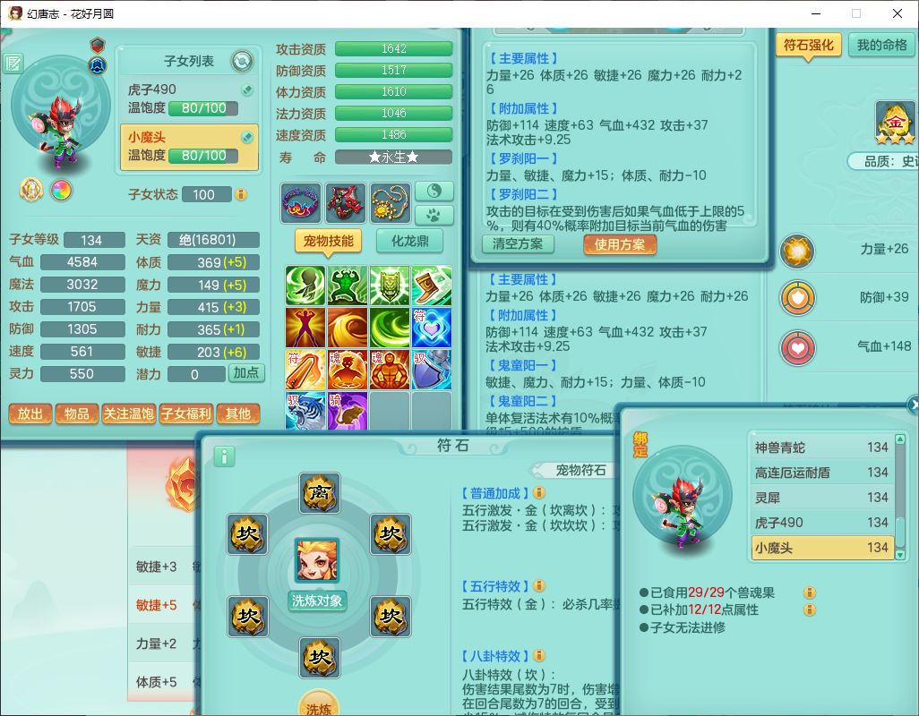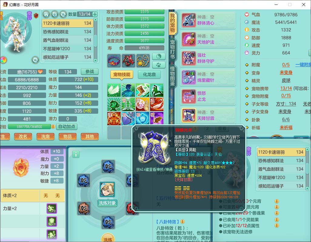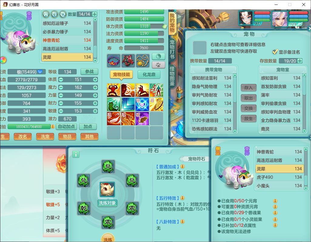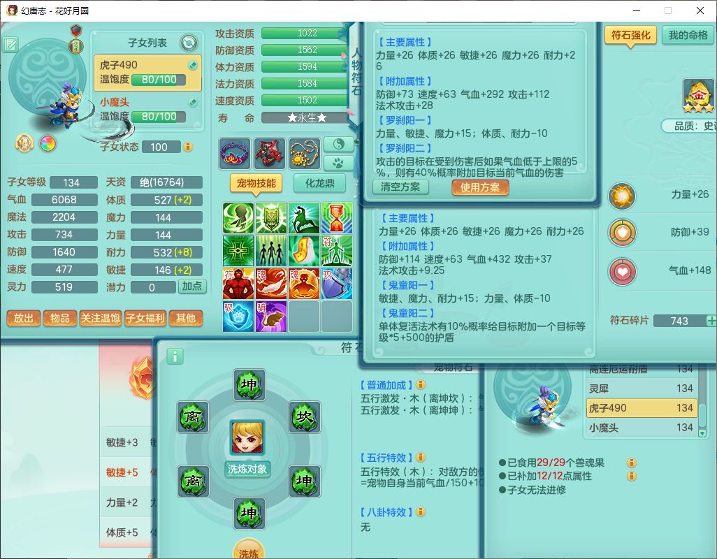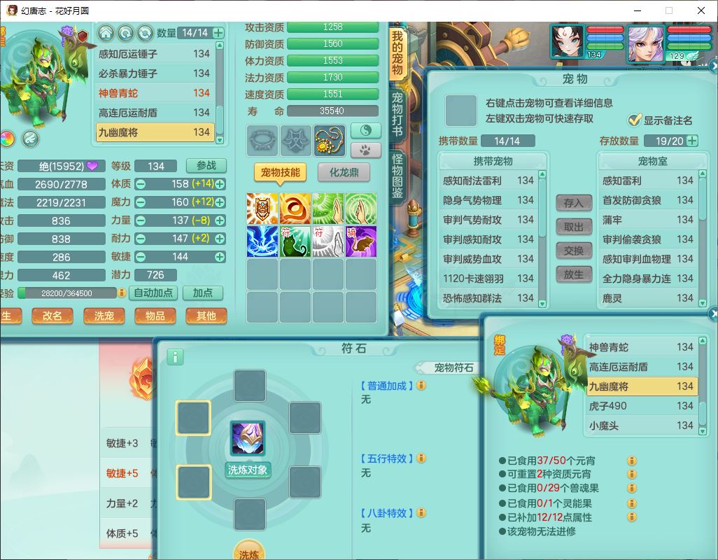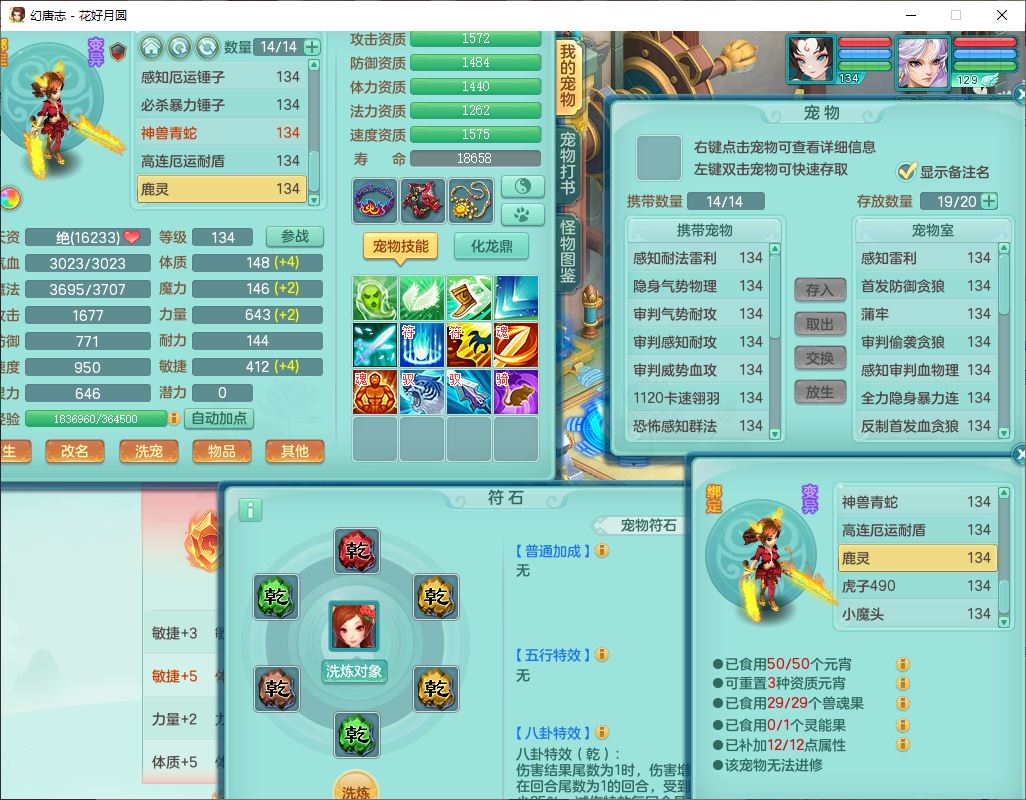 4372花好月圆129男灵月【潜龙号】精灵舞,7龙(1换)3内(1青蛇)3贪狼2九幽1金炉,11觉醒7宠皮(1幻灵果)7六字4五字6四字19只满果子,8红装备,强壮群体守护衣服,愤怒止戈腰带,匠心四海衣服,Y激励鞋子,鼎4.0+56+224,2套符石,庭院150,永久外观、精灵皮肤,33个仙兽灵,140多个兽魂果,一页还童丹,1双人飞行坐骑