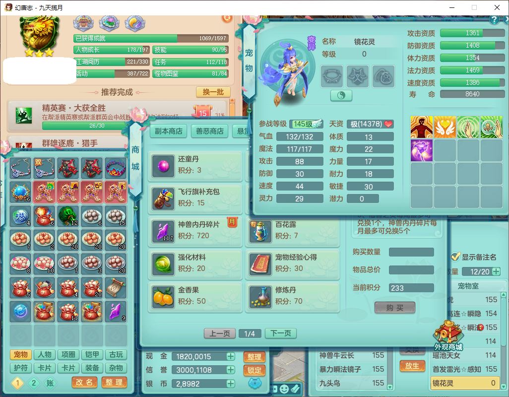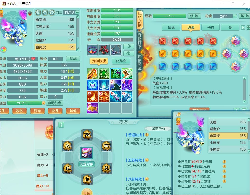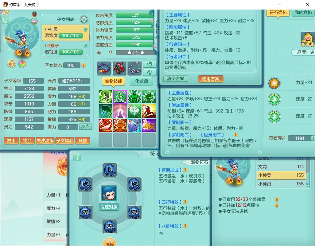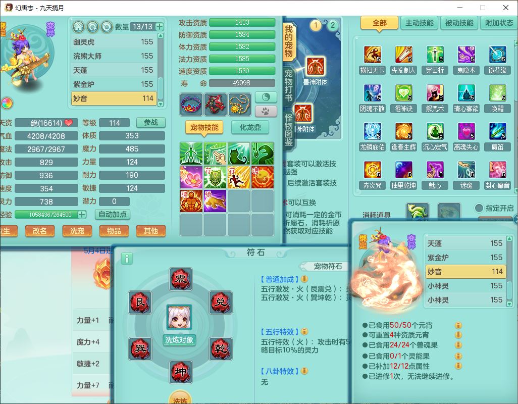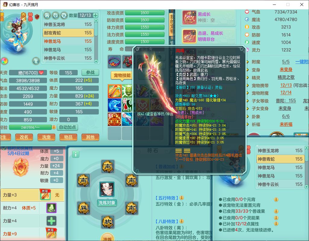 24316九天揽月159双开号,男万兽精灵歌、怒,5内(1青蛇2龙马)1镜花1金炉,2觉醒1宠皮2五字(1洗练珠)9四字综合14只满果子,8红全单加装备,击退Y明镜武器,以战衣服,有法系装,法爆慈航武器,鼎4.5+280,2套符石,庭院172房屋164,永久头饰、精灵皮肤,2坐骑(1双人);女方寸精灵舞、歌,1神兽(无内)2镜花1特殊(枪出),4觉醒3六字6四字综合9只满果子,8红装备,愤怒破力腰带,Y群体守备鞋子,鼎4.5,24个内丹碎片,1飞行坐骑