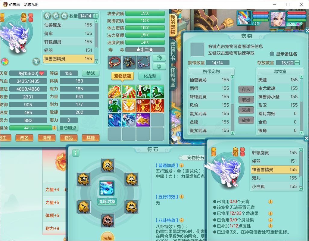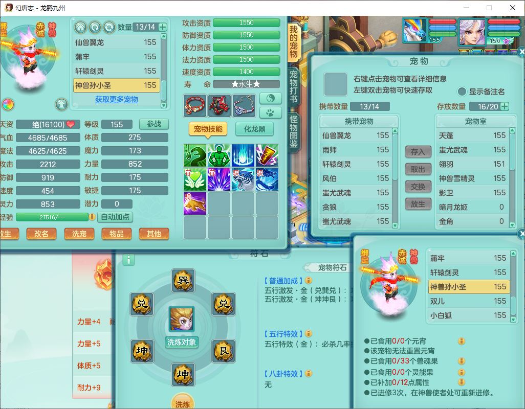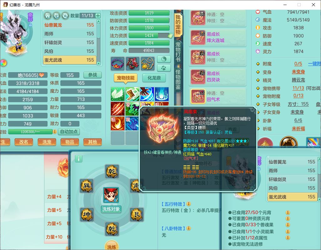 24315龙腾九州159男魔王精灵怒,2龙(1破境)2神兽(无内)1望归1镜花1龙姬,5觉醒2六字1五字1四字,7红全部单加装备,Y烽火武器,Y四灵项链,回气腰带,鼎4.5,庭院160,永久精灵皮肤,半页还童丹,600多w神武币,仓库多存货,1双人飞行坐骑