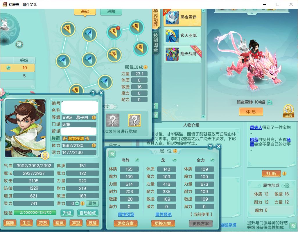 52694醉生梦死99男天策【潜龙号】力敏精灵,6龙(换、无内)2内(1青蛇)2翻浆2舍身,10觉醒5宠皮11六字2五字7四字19只满果子,10红装备,Y破血武器,崩山衣服,愤怒破耐腰带,匠心Y群体安神鞋子,仓库多装备,有辅助法系装,法爆慈航武器,法术缭乱止戈衣服,鼎3.0+42+168,3套符石,庭院154,永久头饰、背饰、精灵皮肤,1双人飞行坐骑