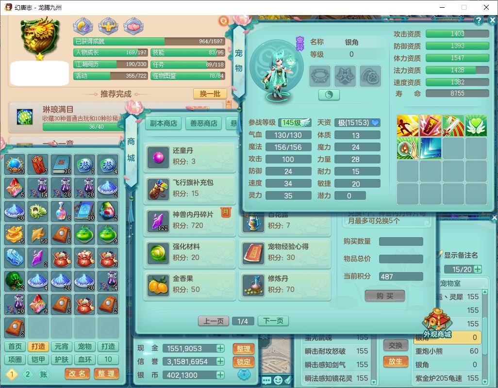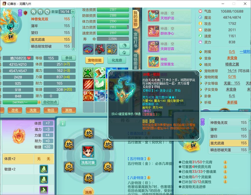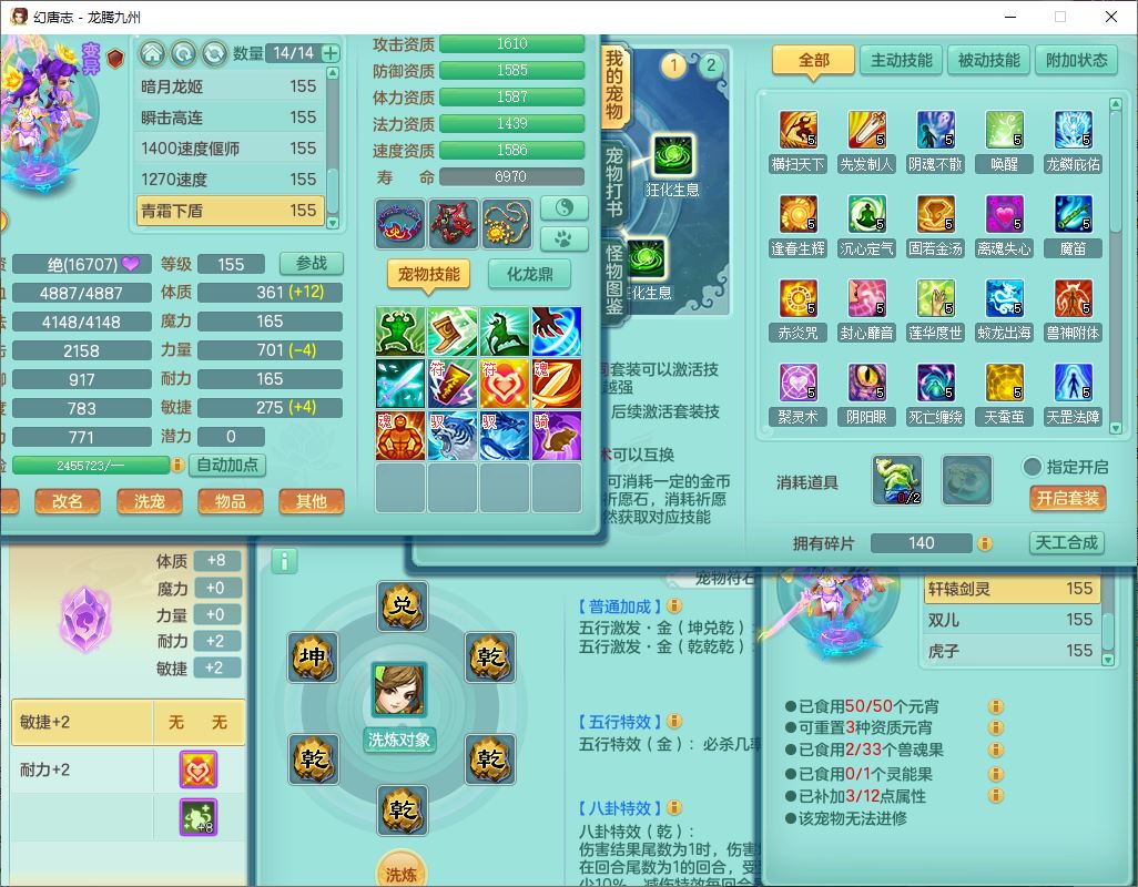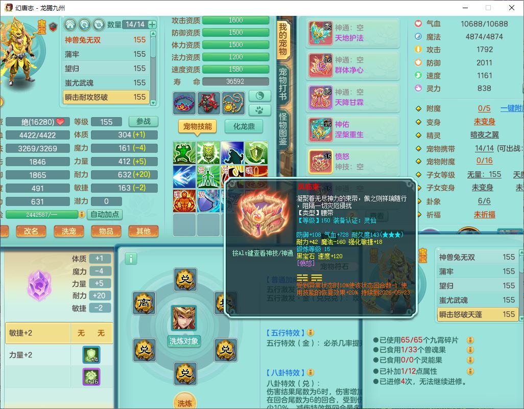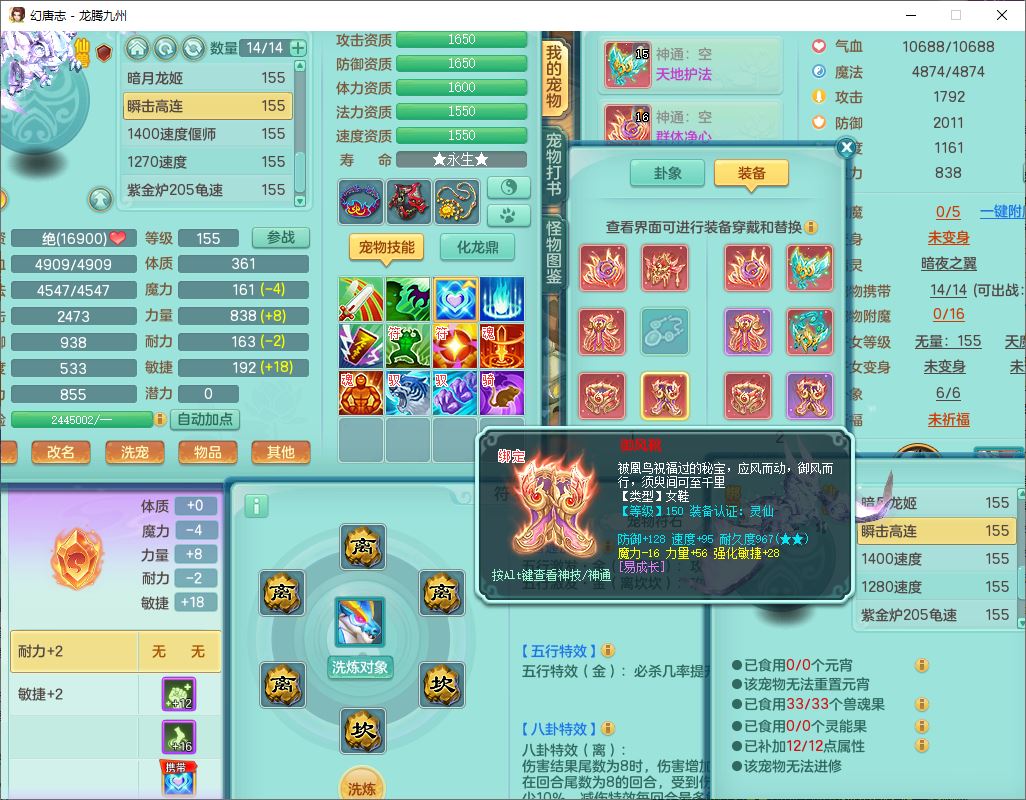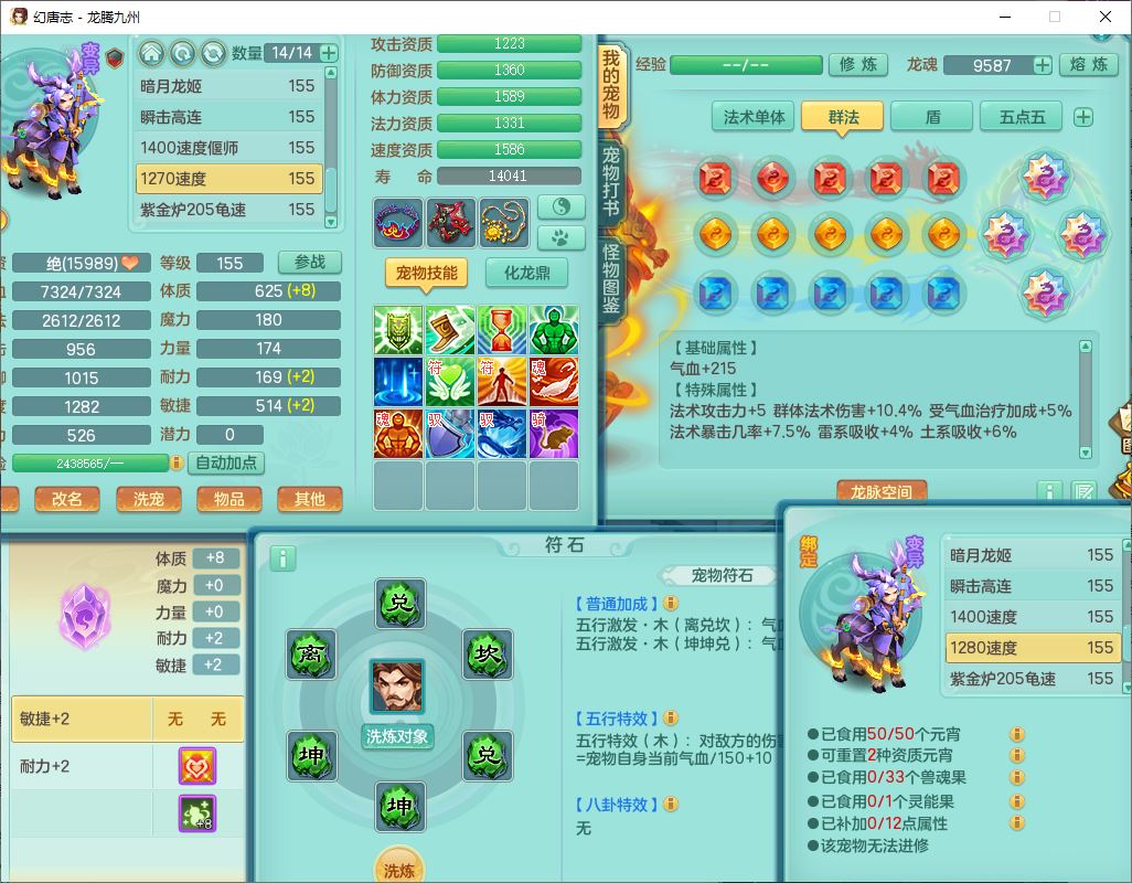 24318龙腾九州159双开号,女无量精灵舞,1龙1内(破境)1望归1龙姬2镜花,4觉醒2五字9四字综合9只满果子,愤怒五特装备,神佑慈航项链,一套输出装,必杀武器,崩山腰带,鼎5.5,400多w神武币,27个内丹碎片,1双人飞行坐骑,带150奶粉;女天宫精灵歌,1神兽(无内,破境)1望归2镜花2龙姬1特殊兽决(枪出),7觉醒10四字,全单加8红装备,Y五雷武器,Y疾速项链,一套辅助装备,鼎4.5,33个内丹碎片,160多w神武币,1双人坐骑;女无量精灵舞,1龙1内(破境)1望归1龙姬2镜花,4觉醒2五字9四字综合9只满果子,愤怒五特装备,神佑慈航项链,一套输出装,必杀武器,崩山腰带,鼎5.5,400多w神武币,27个内丹碎片,1双人飞行坐骑,带150奶粉