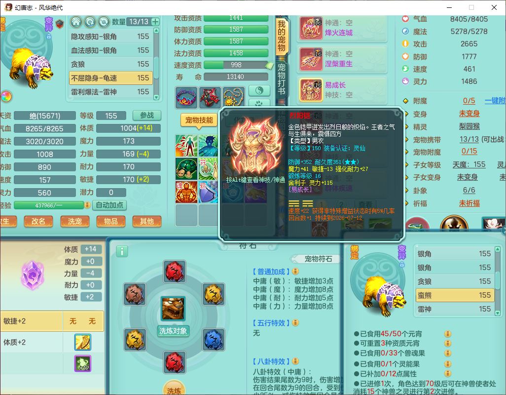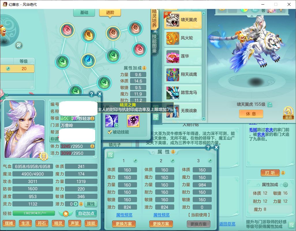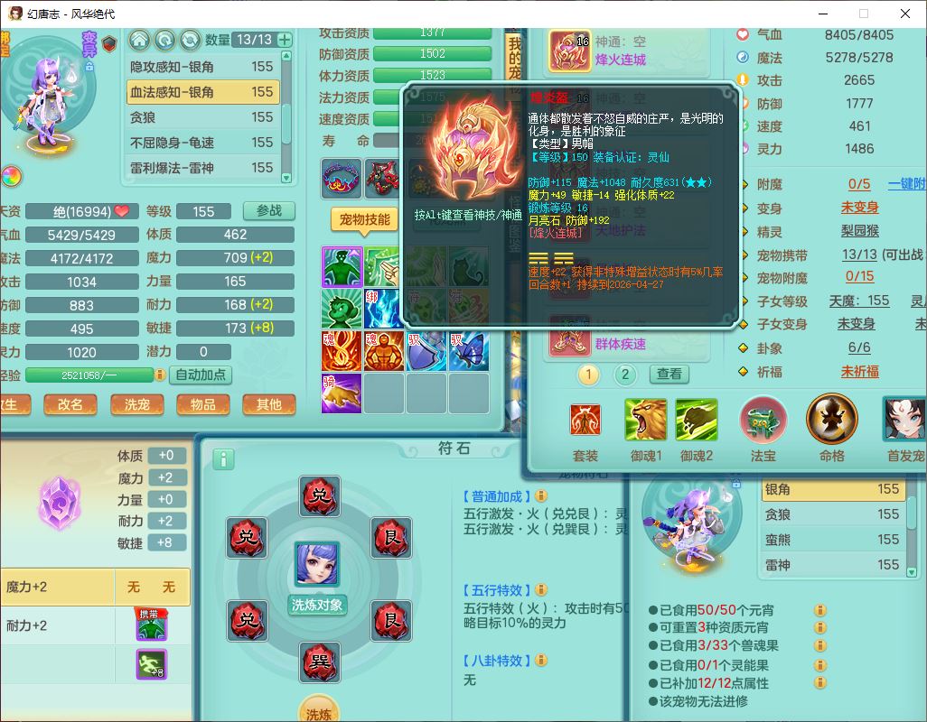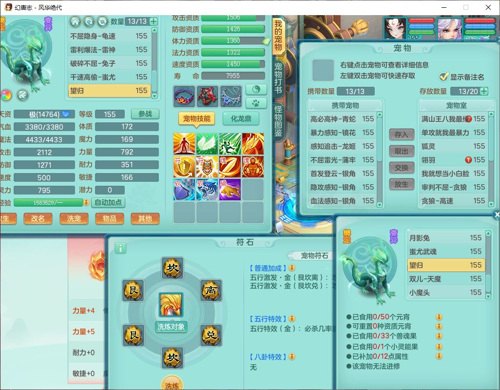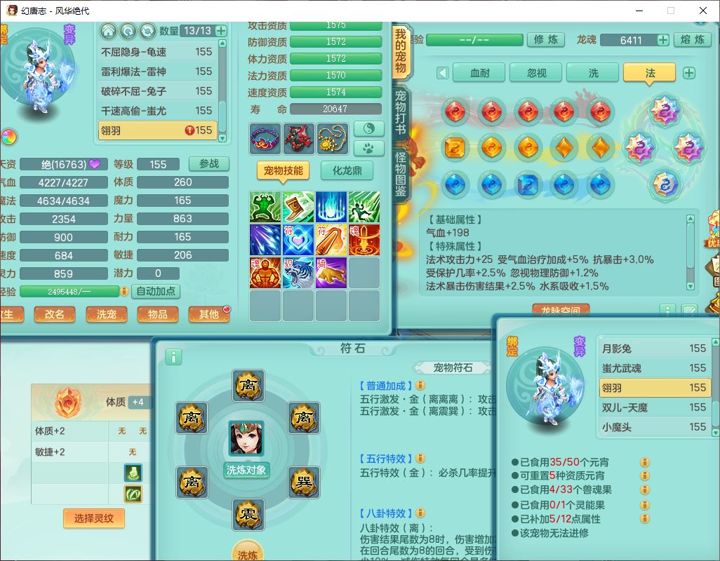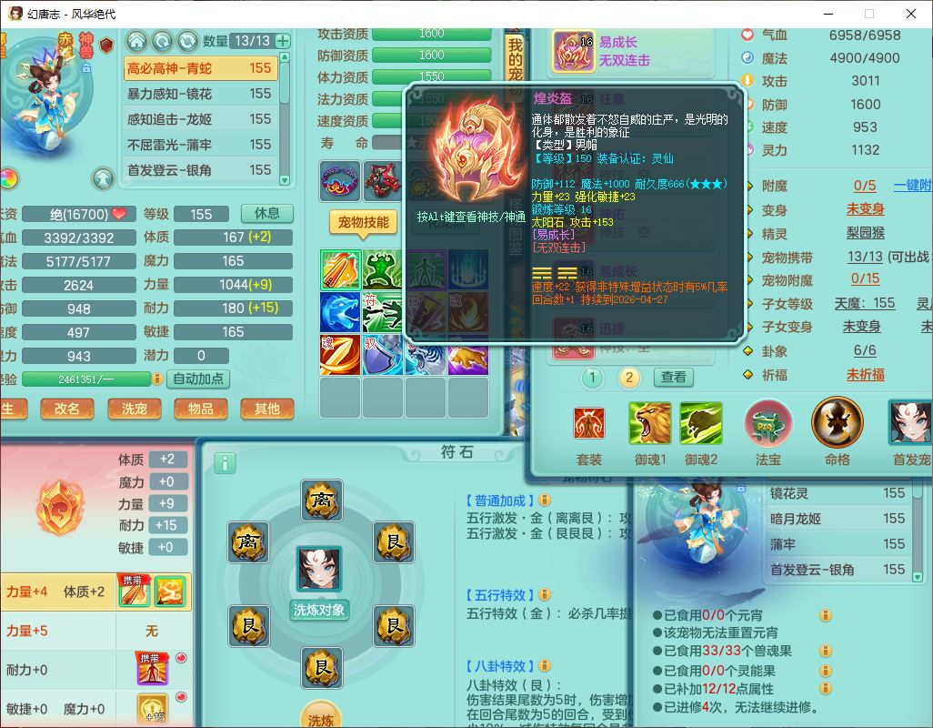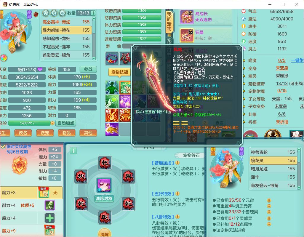 24311风华绝代159双开号,男万兽精灵舞,1内丹青蛇1龙姬1特殊(登云)1镜花,2五字5四字,7红装备,Y破血帽子,926单加狂暴武器,神佑项链,一套全单加法系装备,鼎4.5,35天月卡,房屋155,49个仙兽灵,15个内丹碎片,300多w神武币,1双人飞行坐骑;159男无量精灵悟,2神兽(无内)1望归1龙姬1镜花1特殊兽决(破碎),8四字,8红装备,回春四海武器,迅捷法术反制鞋子,愤怒腰带,回春武器,鼎5.5,63个仙兽灵,13个内丹碎片,600多w神武币,3坐骑