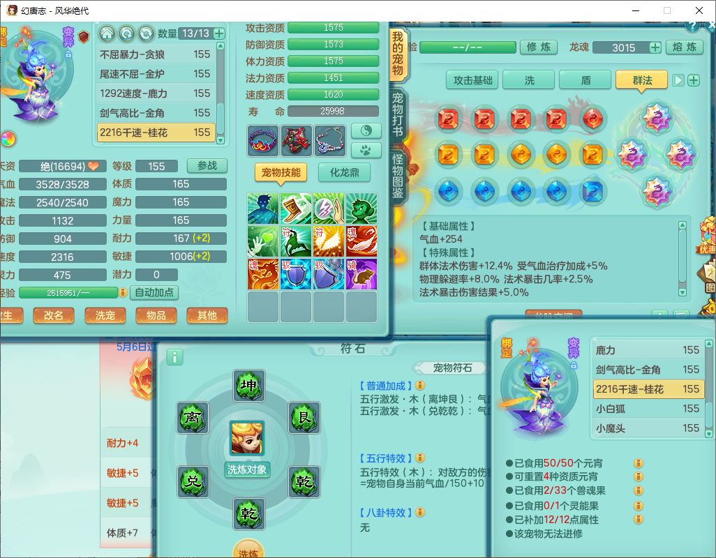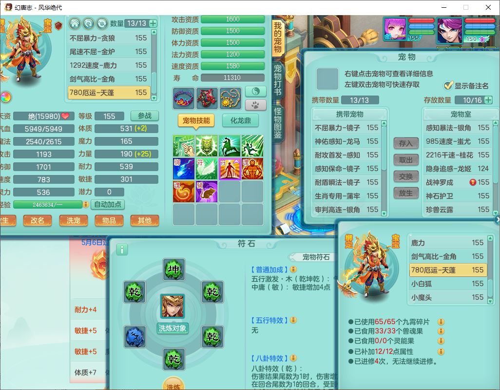24310风华绝代159男魔王【马上发财+火焰之力】精灵舞,1内丹龙马1望归2特殊(祈雨,兽决禁锢)1金炉3镜花,4觉醒1宠皮1六字2五字7四字综合8只满果子,9红星辰之拥装备,法爆群体安神武器,五雷帽子,261单加Y群体守备项链,法缭四海鞋子,一套物理装备,932单加Y武器,崩山衣服,神佑罗汉项链,Y破血鞋子,鼎4.5,143天月卡,永久头饰、背饰、精灵皮肤,18个内丹碎片,11个仙兽灵,180多w神武币,1双人坐骑,带150奶粉
