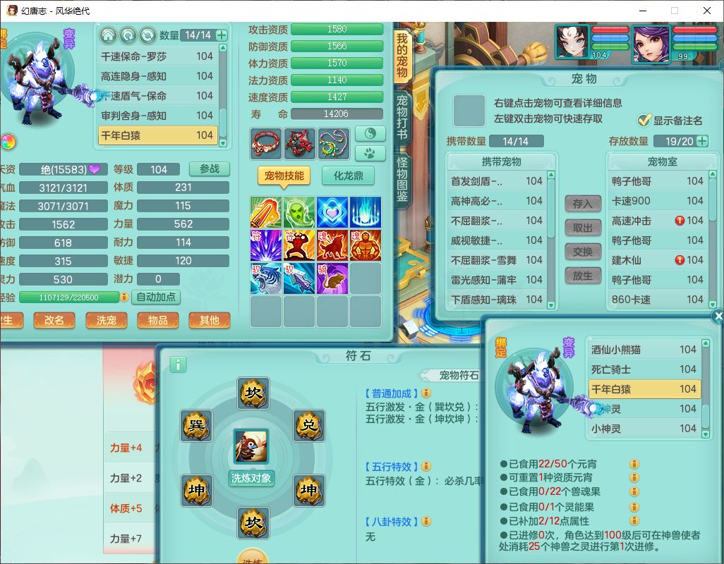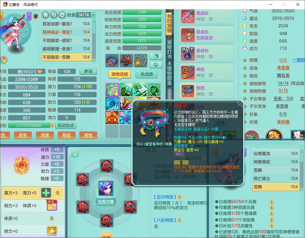 24309风华绝代99女万兽【准潜龙号,差4只宝宝1条附加】全力精灵, 1龙1内丹青蛇2翻江3舍身,4觉醒2宠皮4六字9四字11只满果子,8红装备,Y破血武器,神佑项链,愤怒腰带,迅捷四海鞋子,鼎2.5+42+168,房屋169,永久背饰、精灵皮肤,44个内丹碎片,1双人飞行坐骑,带150奶粉,8位靓号,装备宝宝齐全,1双人坐骑