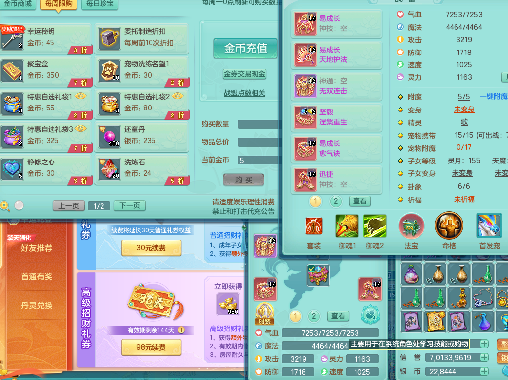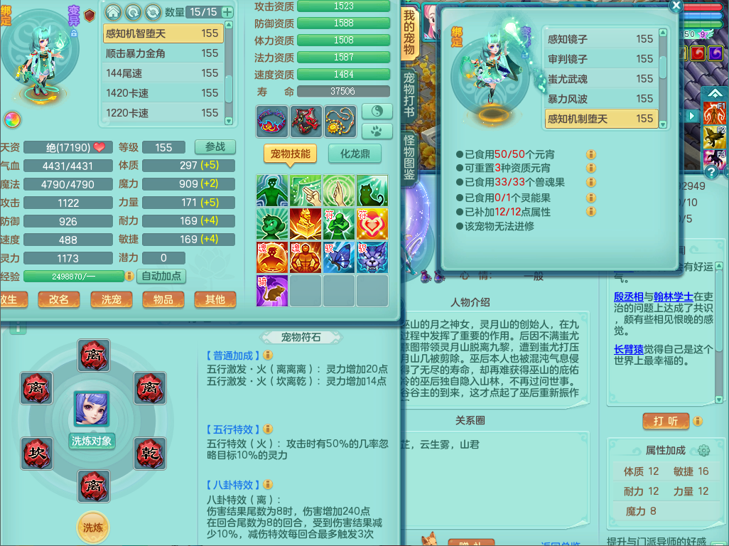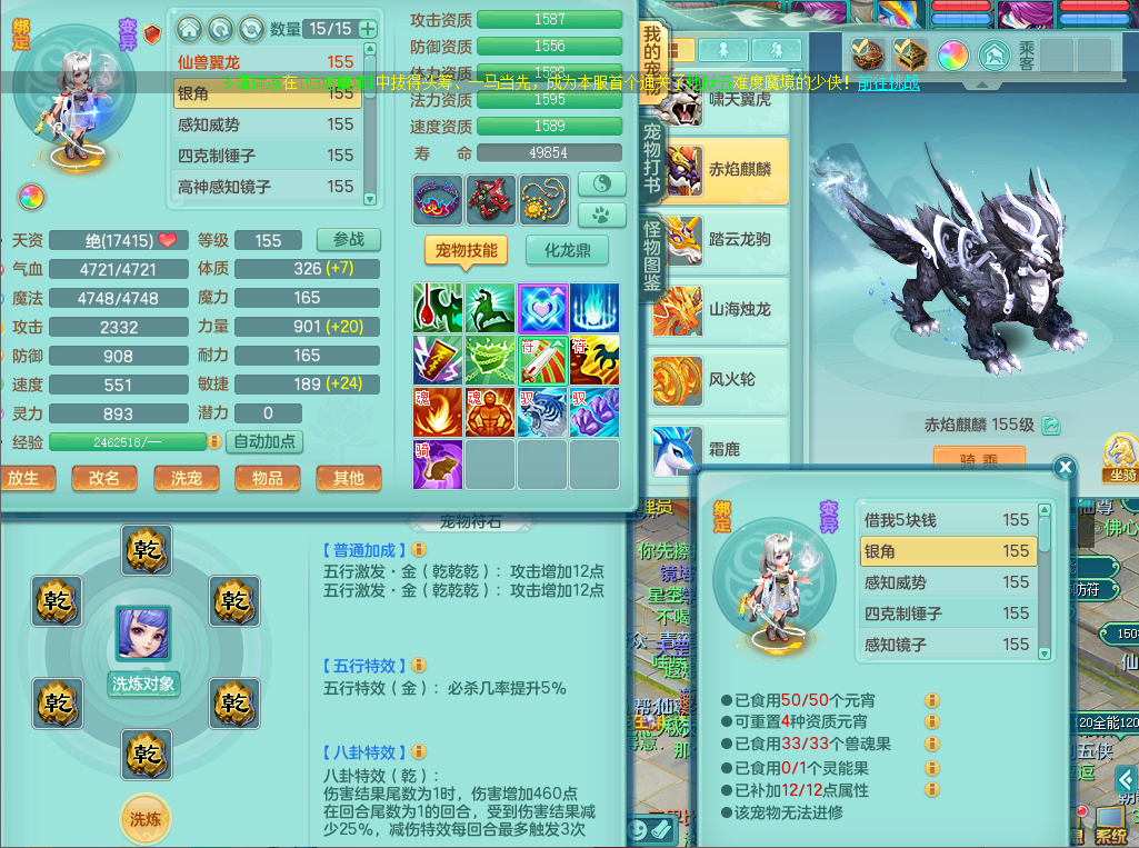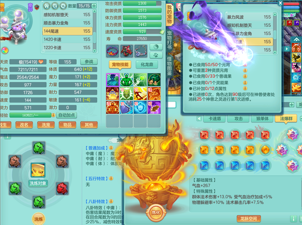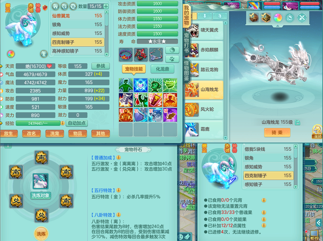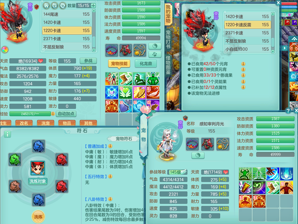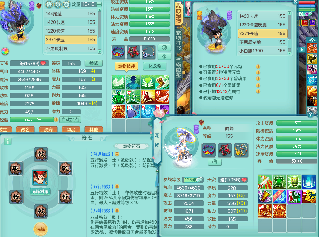 63141,扬名立万159万兽,1龙1内(存)1皮肤,8只觉醒5个6字,16只以上满果子,2特殊(月光,堕天)5只坐骑,基础5.0,精灵歌,易成长头,918攻易罗汉武器,单加50破血衣服,坚毅慈航双红项链,单加55易成长双红腰带,单加57迅捷鞋子,150庭院天上人间,永久头饰,脸饰,背饰,2980配合改密