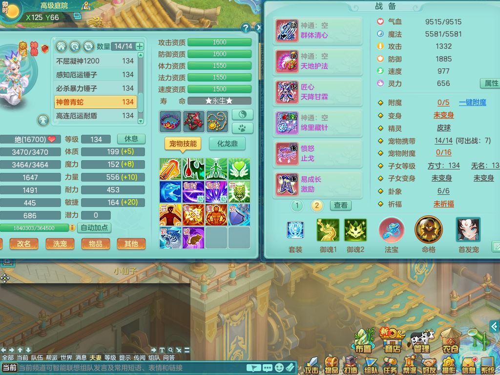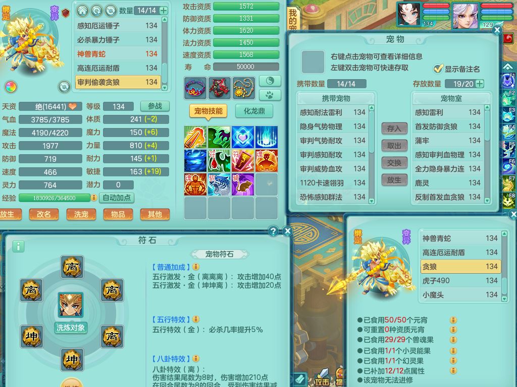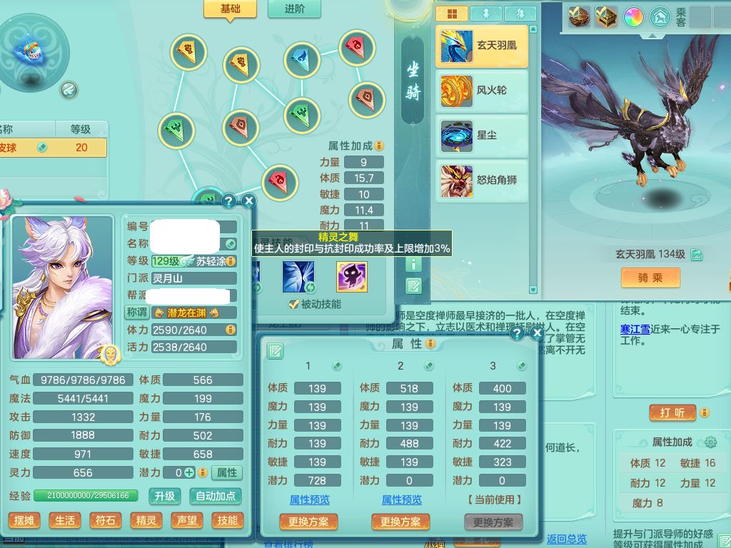 hh10398花好月圆129男灵月【潜龙号】精灵舞,2套星穹,7内丹龙3内丹神(1青蛇)7皮(1幻灵果),19只满果子11觉醒7个纯6字,8红愤怒6特,强壮群体守护衣服,愤怒止戈腰带,匠心四海衣服,Y野兽鞋,鼎4.0+56+224,2套符石,庭院150,永久外观精灵皮肤,1195金币,140多果子,33内丹碎片,宠排在榜,飞行双人坐骑