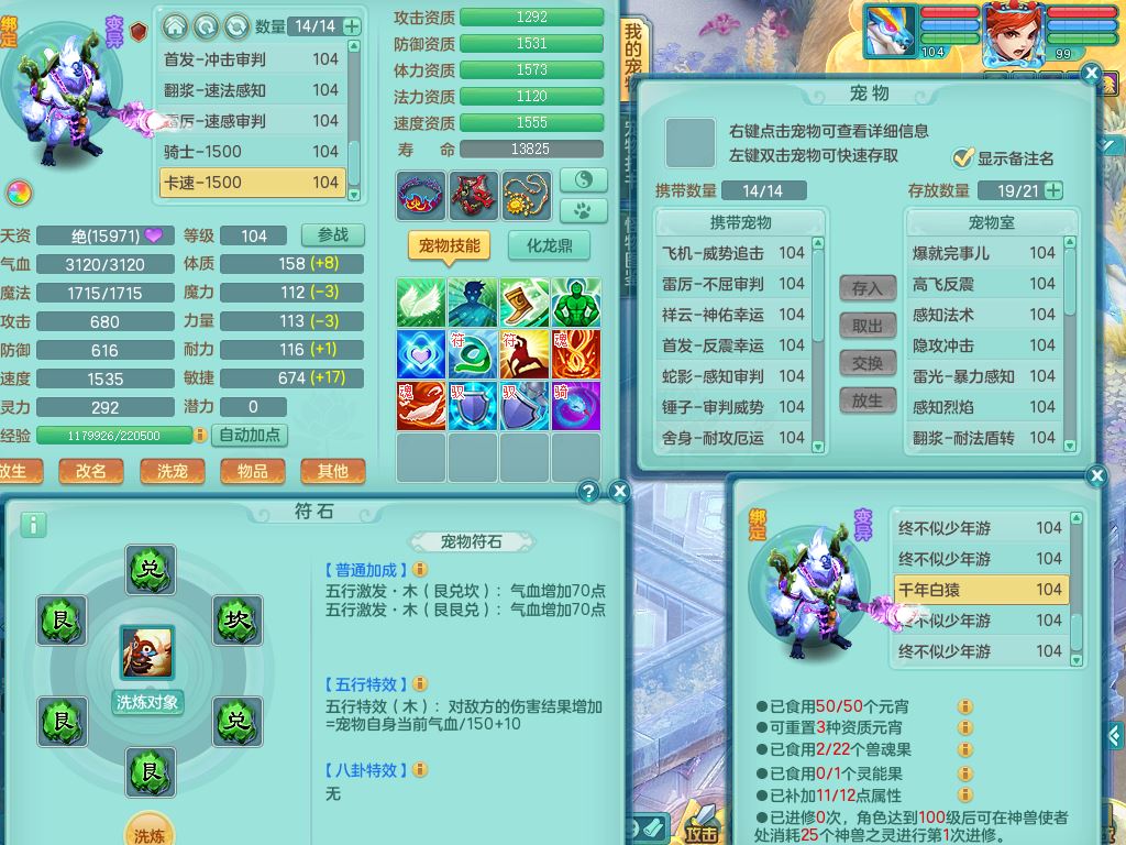 qq10405七窍玲珑99男天策【潜龙号+神驹心想事成+暴龙泰坦+西瓜冰】双系精灵,3内丹龙4内丹神4破境1皮,24只满果子13觉醒8个纯6字,11红,破甲头,545Y必杀3红武器,幸运崩山衣服,愤怒破血腰带,Y止戈鞋,Y四海衣服,愤怒幸运群体迟滞腰带,崩山头,鼎2.5+42+168,2套符石,26天月卡,冰晶庭院158房屋158,永久外观精灵皮肤,60多果子,56内丹碎片,宠排在榜,6坐骑(4只双人)
