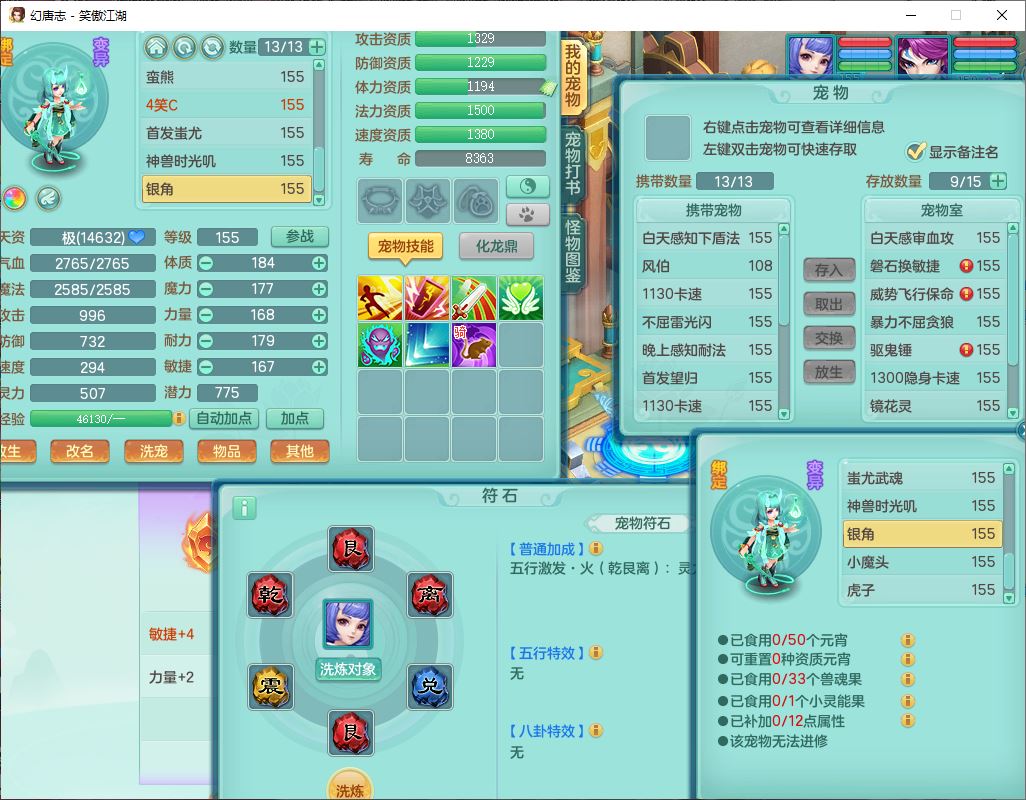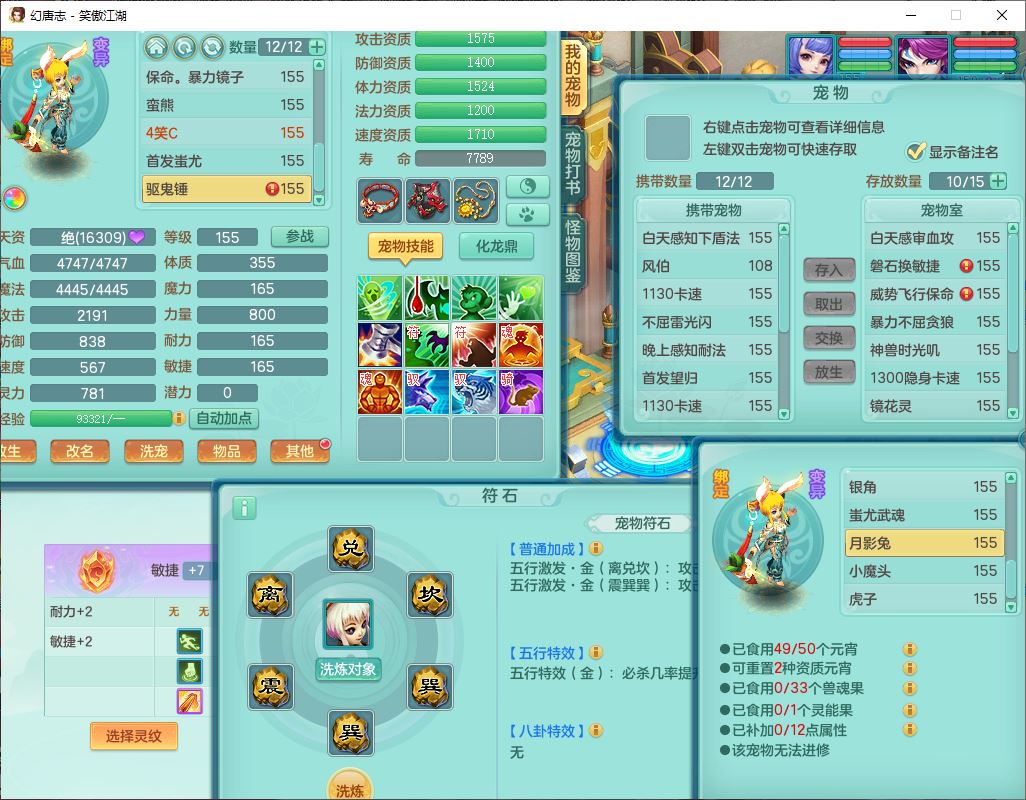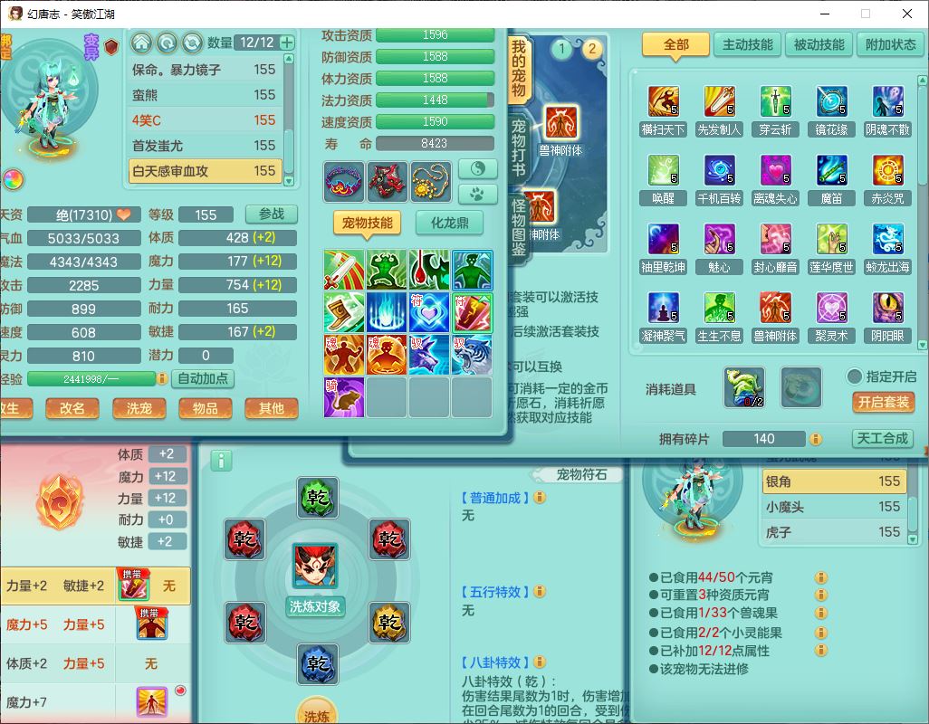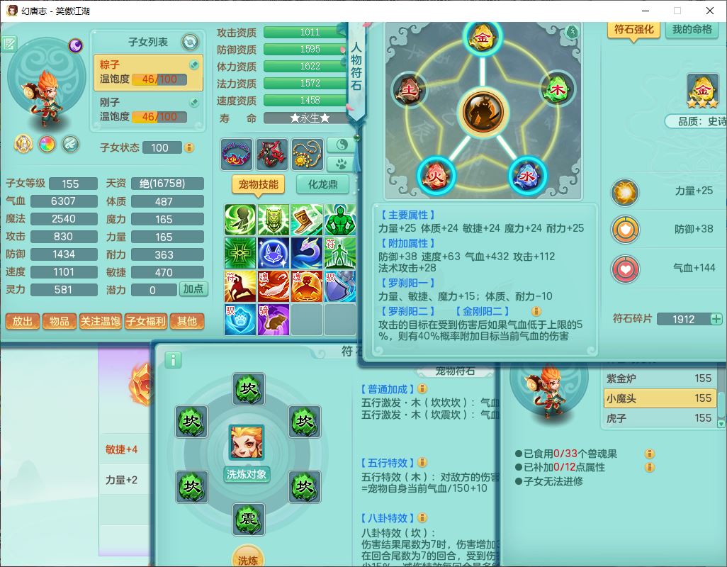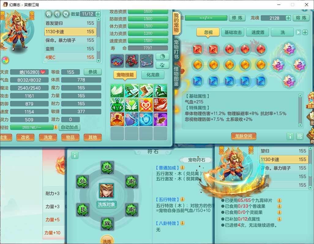 4374笑傲江湖159夫妻号,男万兽精灵歌,1神兽(无内)1望归1镜花,3觉醒,全单加7红装备,Y破血帽子,Y乱刃武器,愤怒罗汉腰带,鼎5.5,46个内丹碎片,带女方寸精灵舞,1神兽(无内)1望归2镜花1龙姬4特殊(夺命,兽决雷光、焚心、羽袭),1觉醒,9红装备,强壮慈航衣服,Y笑里项链,愤怒Y腰带,有法系装备,274Y慈航项链,法缭衣服、鞋子,41个内丹碎片