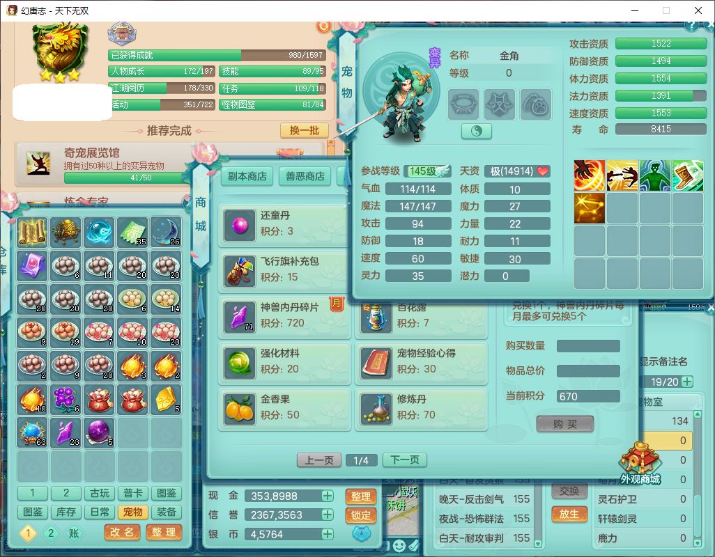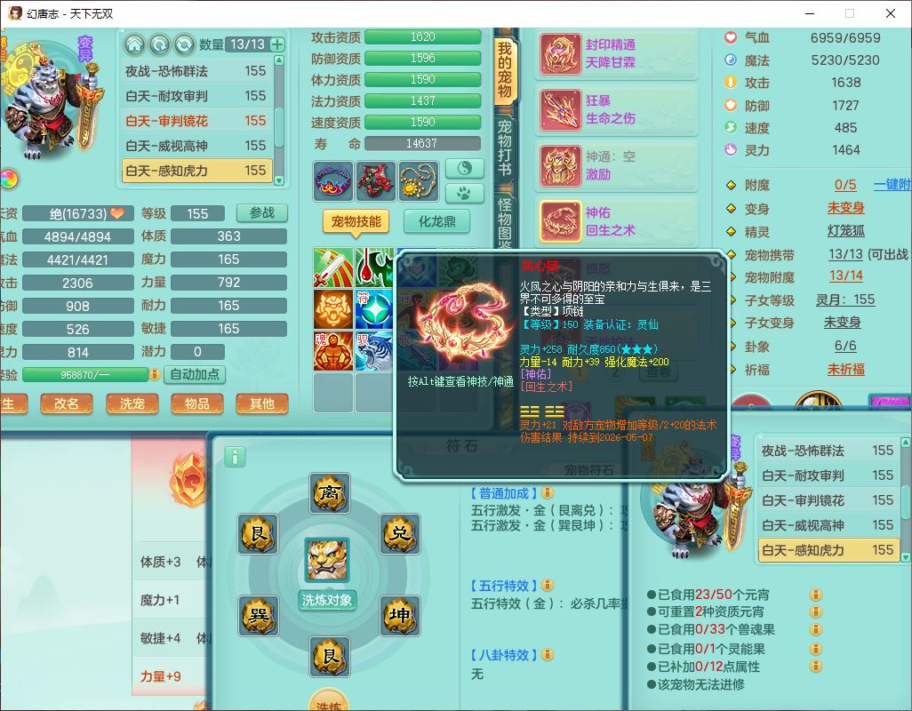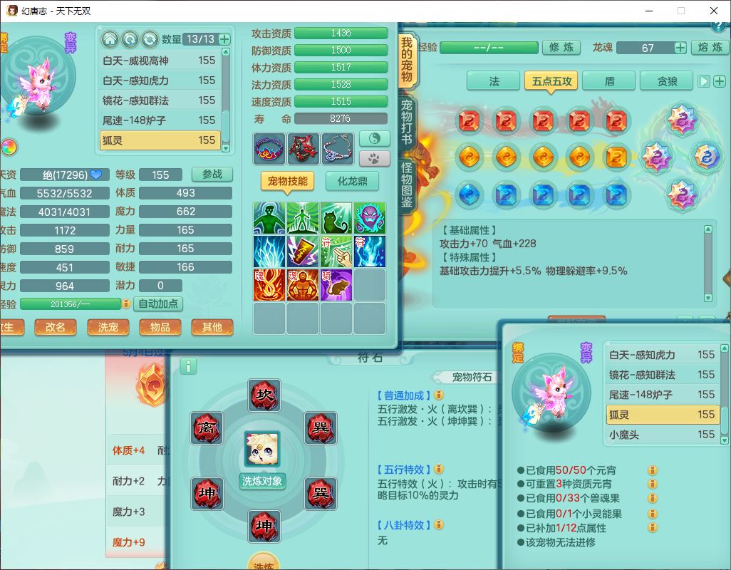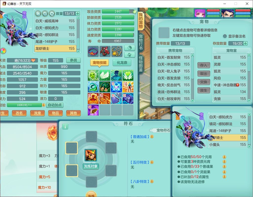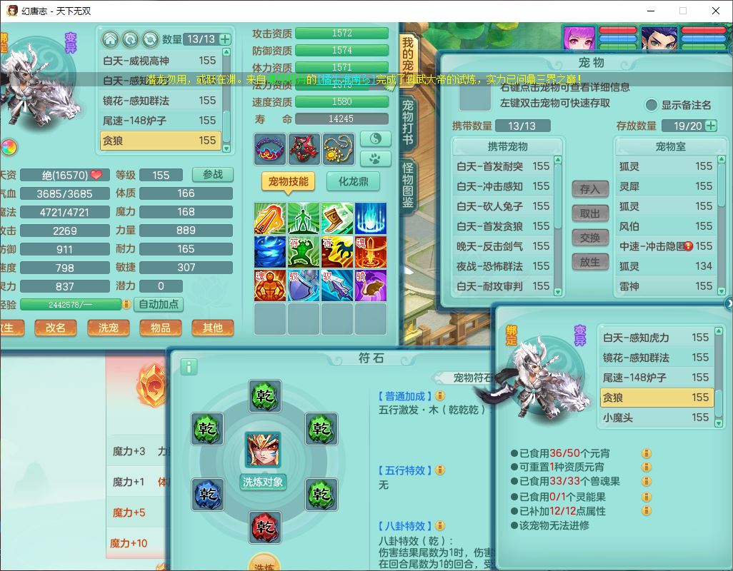 24324天下无双159男龙宫【潜龙过半】精灵舞,2内(1小马)1望归2镜花1金炉1特殊(枪出兽决),5觉醒5六字8四字综合8只满果子,全单加装备,击退武器,四灵腰带,五雷鞋子,一套10红装备,封印精通四海帽子,921狂暴生命之伤武器,神佑回生项链,Y罗汉鞋子,鼎5.5+70,63个仙兽灵,23个内丹碎片,1双人坐骑,带150奶粉