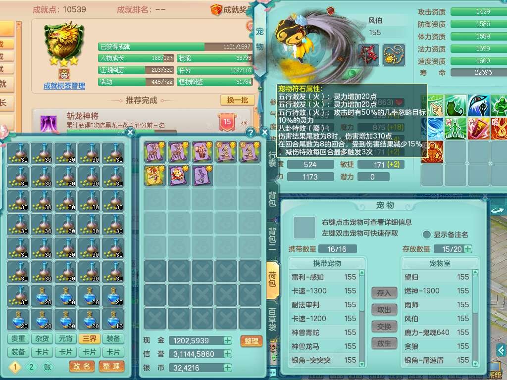 24328,2020区159男灵月山精灵舞,4龙2内胆神,8只觉醒(化龙鼎差1个厚土龙纹,符石差5个主要,2个附加,宠物5只满足),1宠皮,8位靓号不带4,4只六技能镜花灵,1只6技能龙姬,1特殊(勇猛),愤怒烽火单加50腰带,6特,回春武器,5.5基础鼎+70攻,14个格子,6个纯六字,2个五字,20只满果子,宠排在榜,经验在榜,双人坐骑,带31天月卡,特价1.48W包