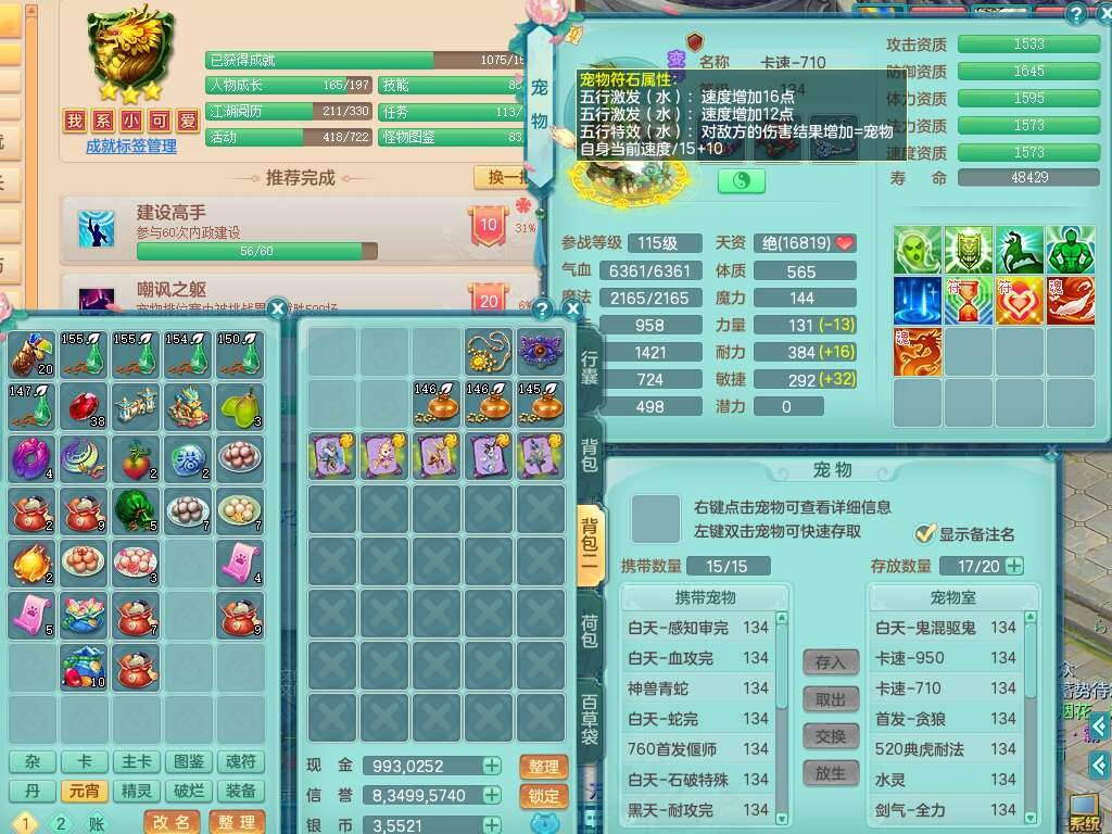 24326浪淘沙129男龙宫精灵舞,2龙2内胆神,12觉醒(准潜龙化龙鼎满足,宝宝满足5只,符石石差3个主要,差2个附加),3宠皮,易成长烽火单加40头,法爆单加44武器,法缭单加衣服,207易成长单加44链子,愤怒单加46腰带,五雷鞋子,4.5基础鼎+56攻+224血,13个永久格子,8个纯六字,2个五字,23只满果子,宠排在榜,双人坐骑,带41天月卡,特价8888包