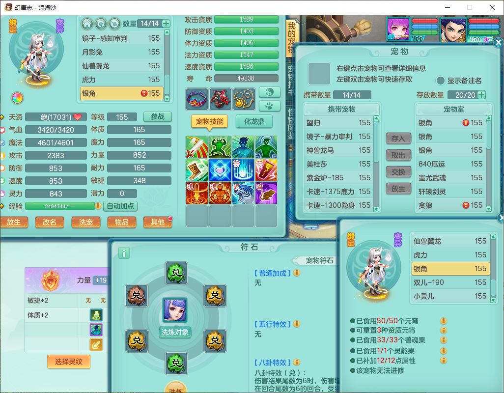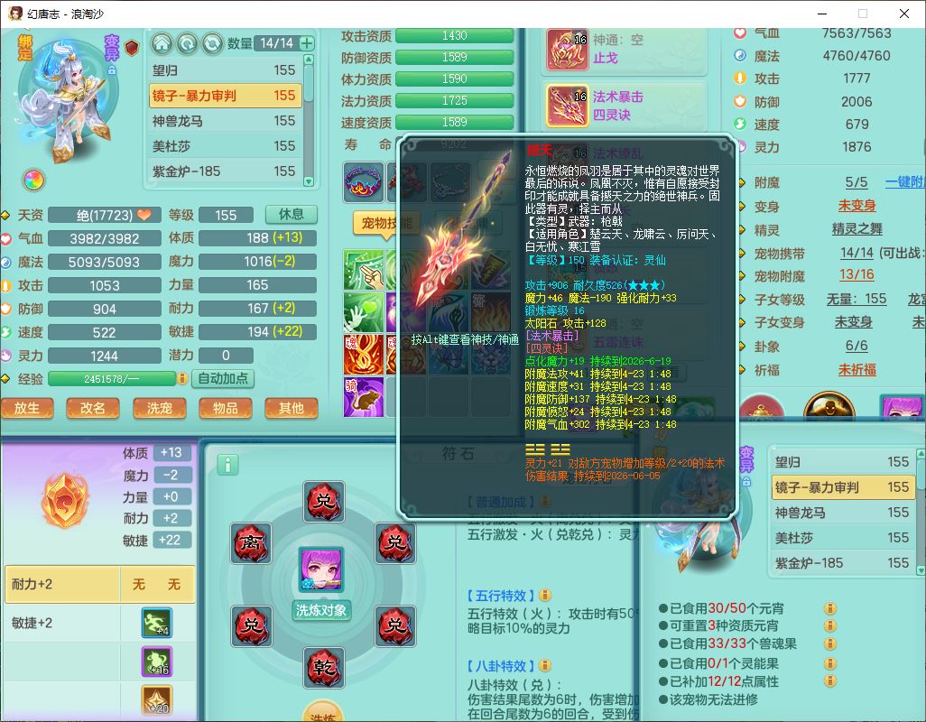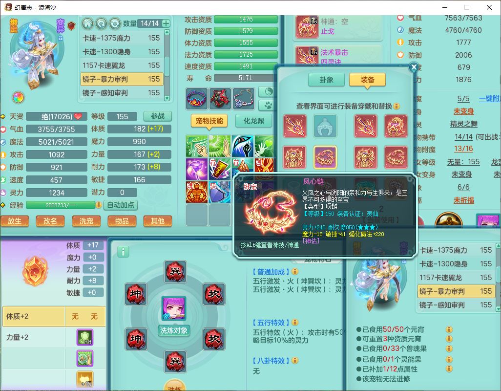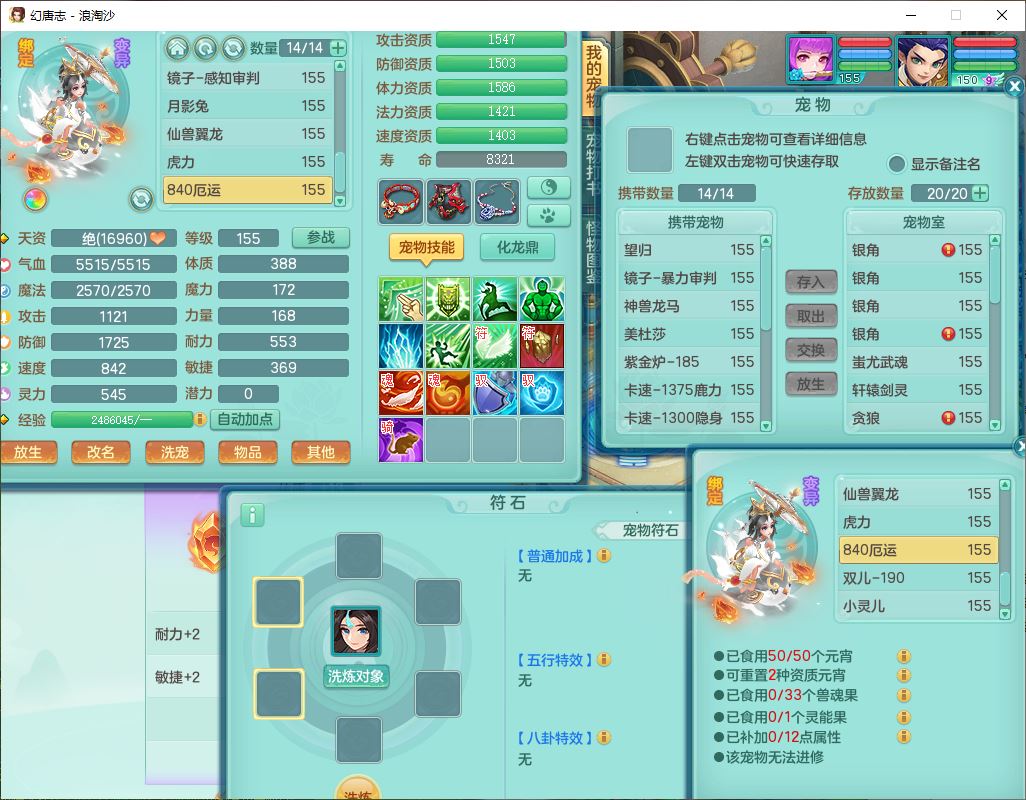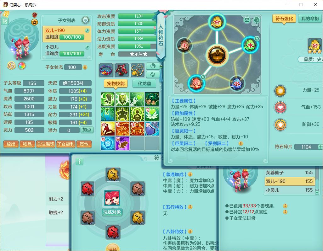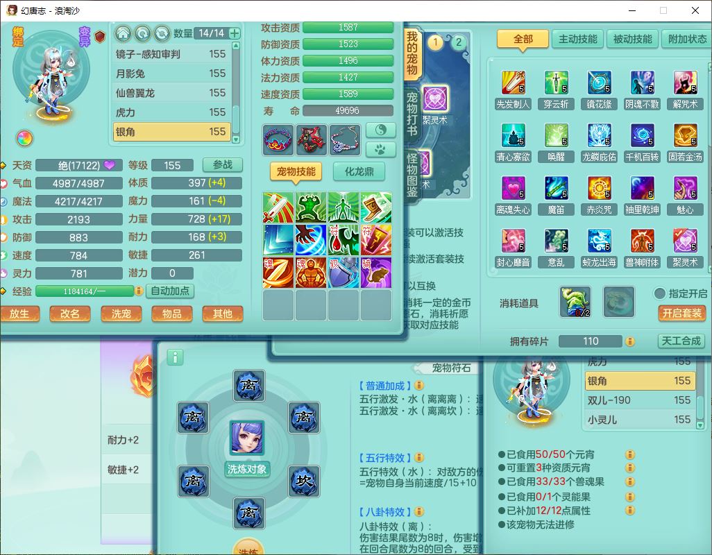 99792浪淘沙159男龙宫【暴龙逍客】精灵舞,2龙(1换)2内(1青蛇1龙马,1破境)1望归4镜花1金炉1特殊兽决(上善),5觉醒3宠皮5六字5五字3四字13只满果子,9红星辰之拥装备,法爆四灵武器,法缭驭兽衣服,愤怒四海腰带,五雷鞋子,有物理装,Y疾速武器,崩山衣服,神佑项链,Y驭兽鞋子,鼎5.5+70,156天月卡,庭院162房屋158,永久外观、精灵皮肤,14个内丹碎片,4双人坐骑(1飞行)