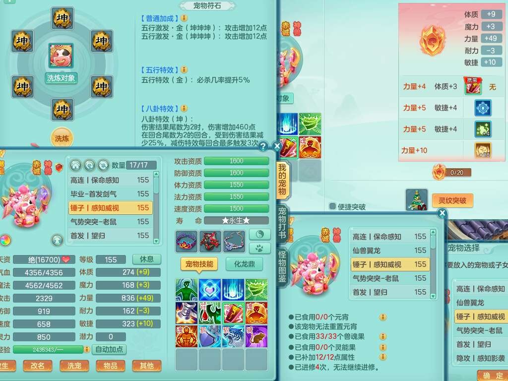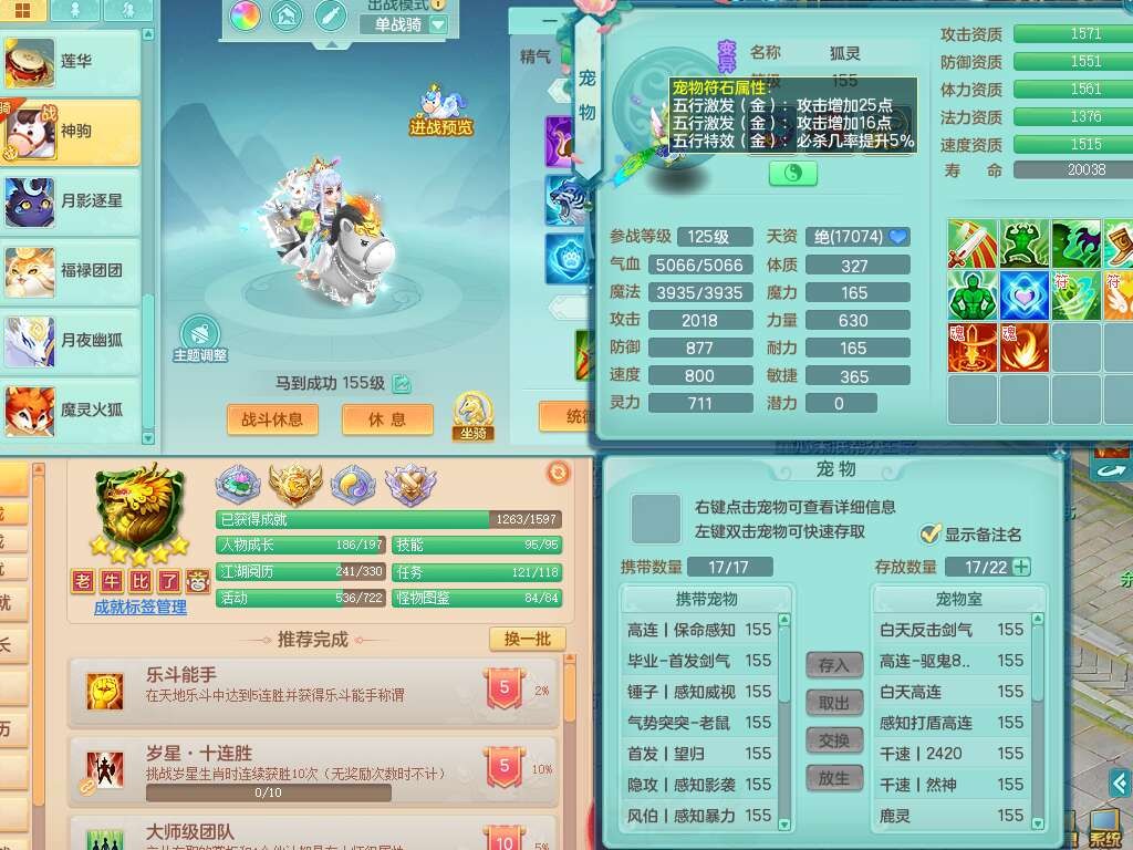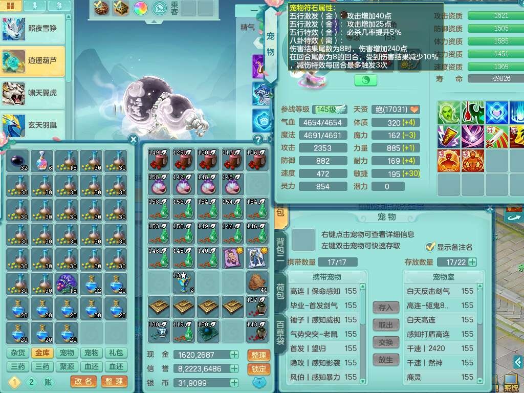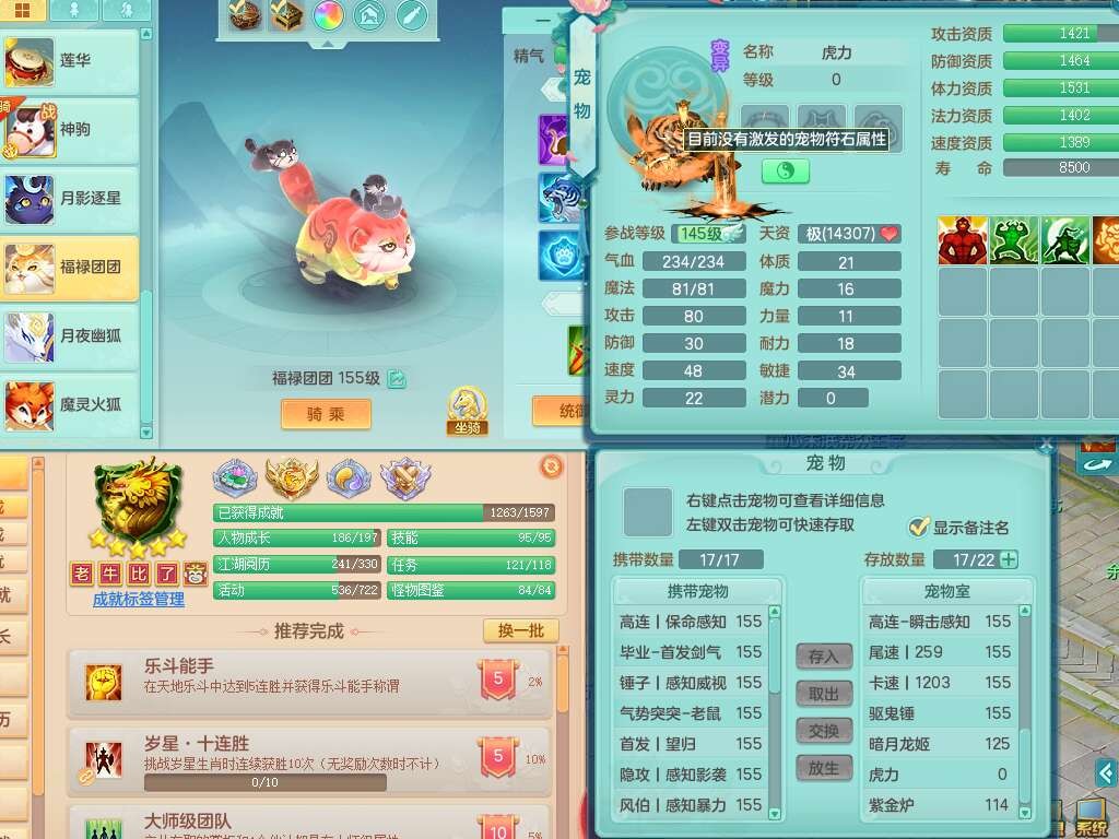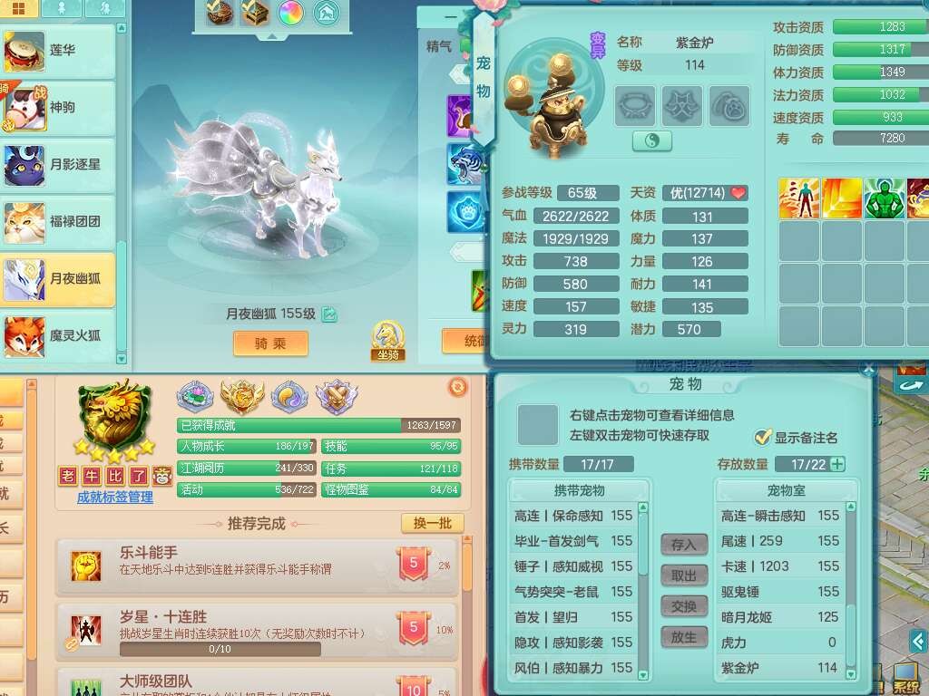 A22316普天同庆159女万兽,精灵舞,2龙2内胆神,1破镜,【11只觉醒,已潜龙】,极品8位靓号ABBBBBBB,10宠皮,5特殊(影袭×2,荒古,飞花,舍身),3只六技能镜花灵,2只六技能龙姬,易成长崩山单加50衣服,愤怒单加53项链,5.5基础鼎+70攻+280血,15个永久格子,14个纯六字,27只满果子,仓库还有122个果子,宠排在榜,经验修炼成就都在榜,永久称谓,16只坐骑,暴龙洪荒+神驹马到成功+西瓜冰,冰晶庭院,带108天月卡。