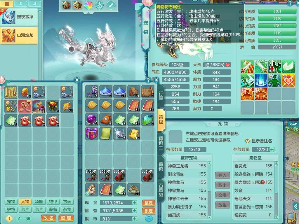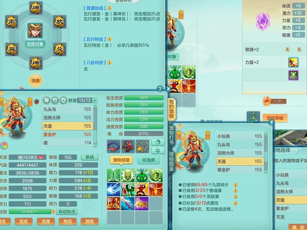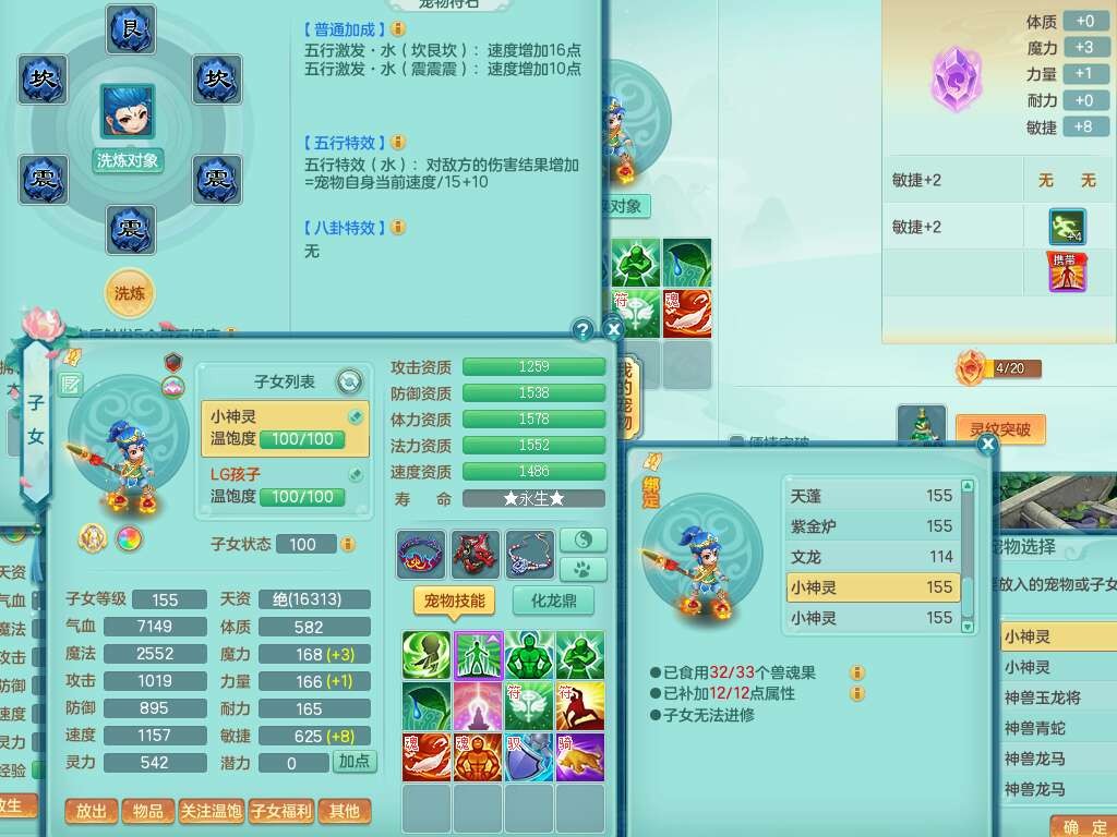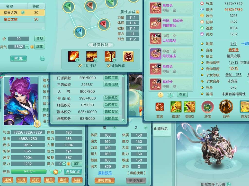S22318九天揽月158男万兽,精灵歌+怒,5内胆神,2觉醒,1宠皮,1只六技能镜花灵,易成长单加头,三红903击退易成长明镜非台单加武器,易成长单加腰带,易成长单加鞋子,4.5基础鼎+280血,2个五字,7只满果子,双人坐骑,带28天月卡。➕159女方寸,精灵舞+歌,1神兽+24个神兽内丹碎片,4觉醒,1特殊(枪出),2只六技能镜花灵,1只六技能龙姬,愤怒破力式单加腰带,易成长群体守备单加鞋子,六特,4.5基础鼎,3个纯六字,9只满果子。
