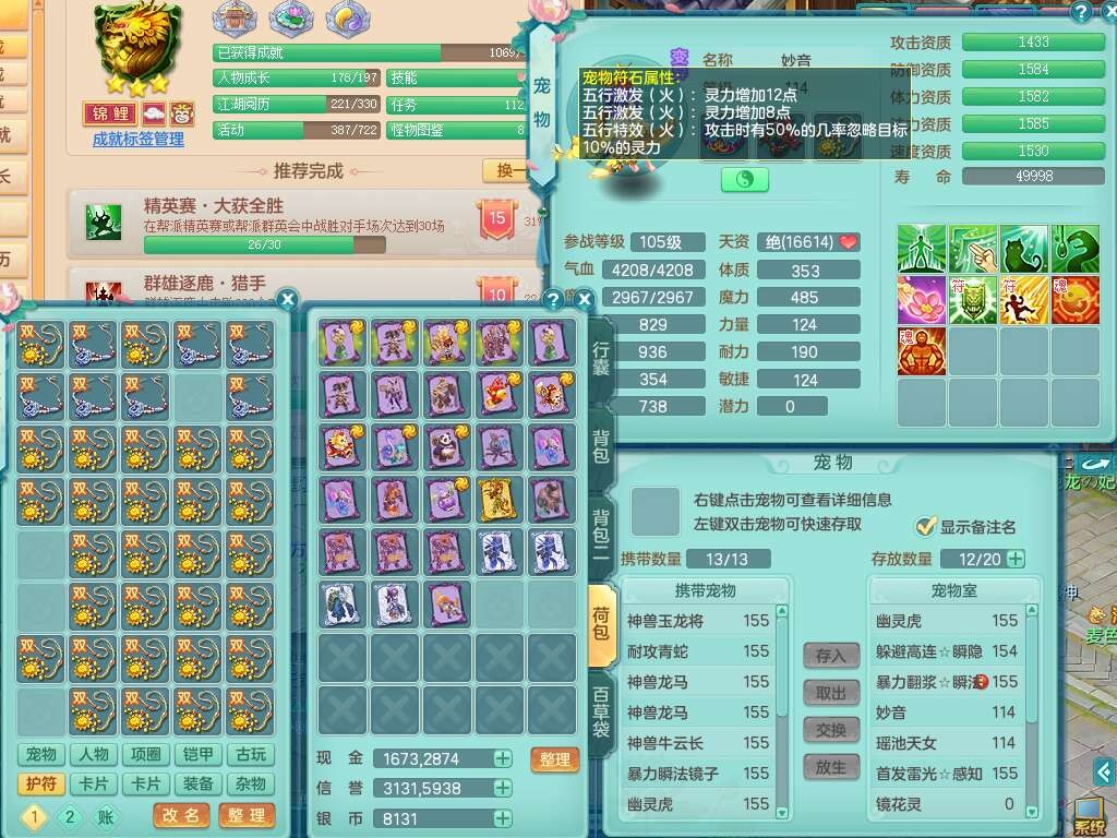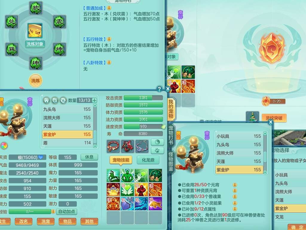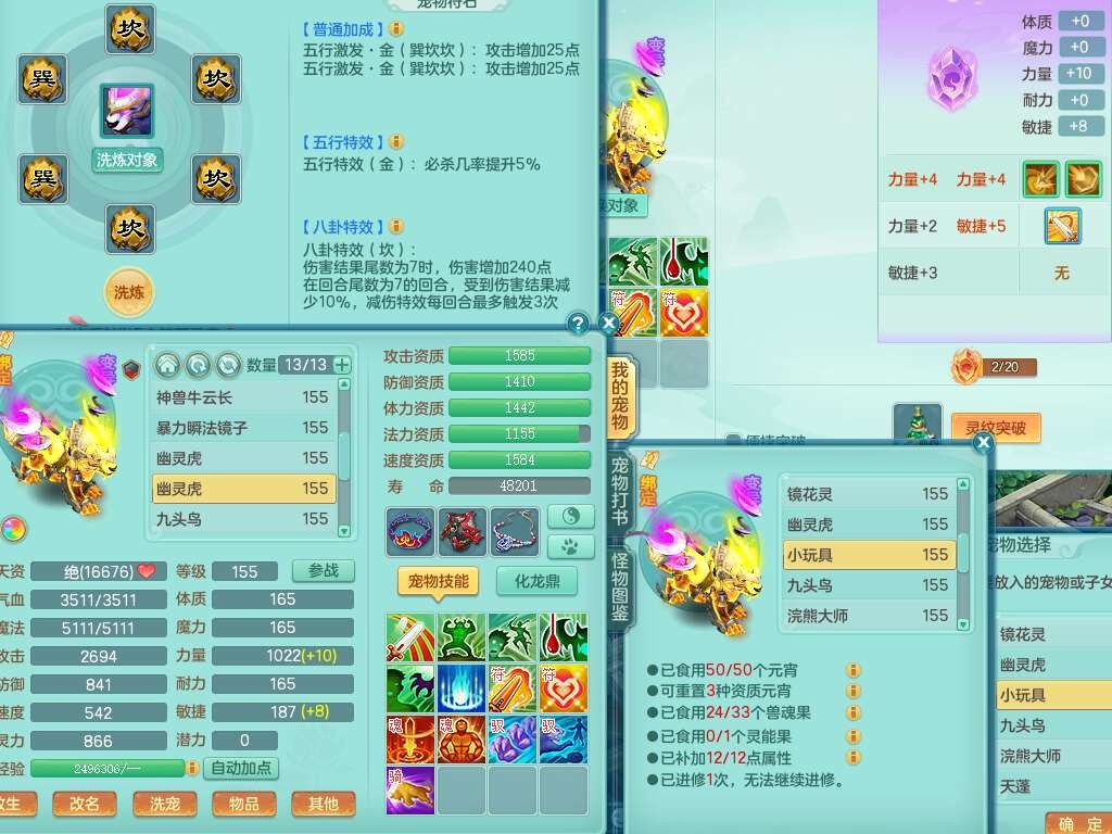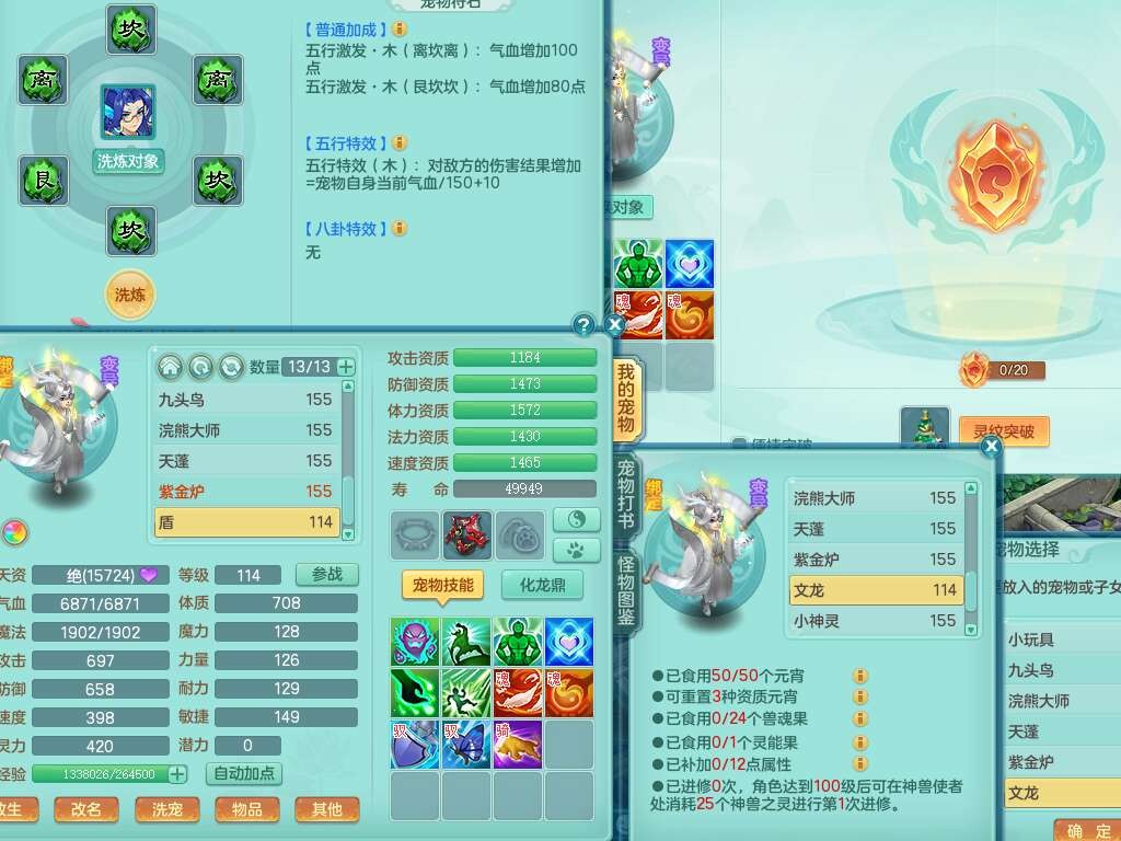 S22318九天揽月158男万兽,精灵歌+怒,5内胆神,2觉醒,1宠皮,1只六技能镜花灵,易成长单加头,三红903击退易成长明镜非台单加武器,易成长单加腰带,易成长单加鞋子,4.5基础鼎+280血,2个五字,7只满果子,双人坐骑,带28天月卡。➕159女方寸,精灵舞+歌,1神兽+24个神兽内丹碎片,4觉醒,1特殊(枪出),2只六技能镜花灵,1只六技能龙姬,愤怒破力式单加腰带,易成长群体守备单加鞋子,六特,4.5基础鼎,3个纯六字,9只满果子。