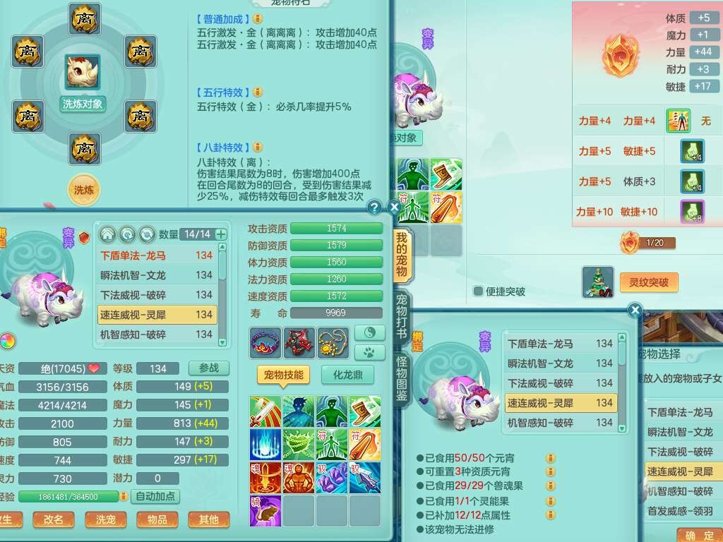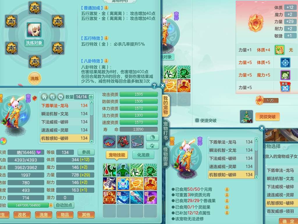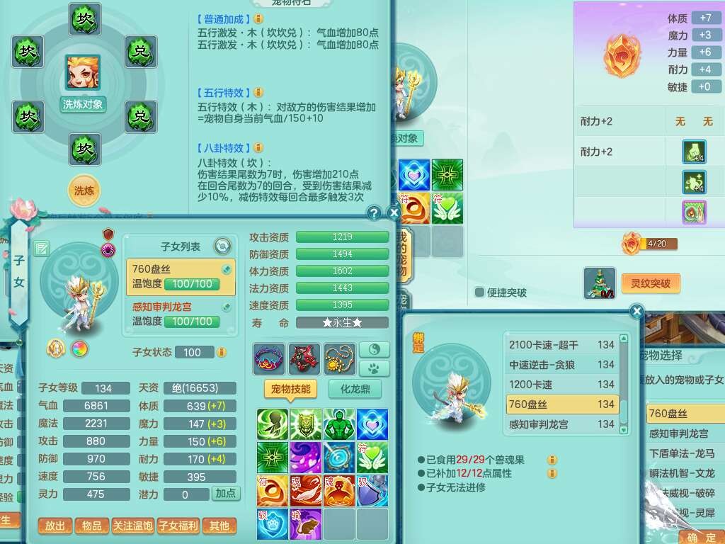 K22312浪淘沙129男五庄,精灵舞,1内胆神,10觉醒*(准潜龙,宝宝化龙鼎满足,符石只差3个主要,差1个附加属性),1宠皮,愤怒易成长腰带,易成长罗汉鞋子,五特,4.0基础鼎+56攻+224血,9个纯六字,20只满果子,宠排在榜,双人坐骑,有29个仙兽蛋,81天月卡。➕159女五庄奶粉,1神兽,3只六技能镜花灵。