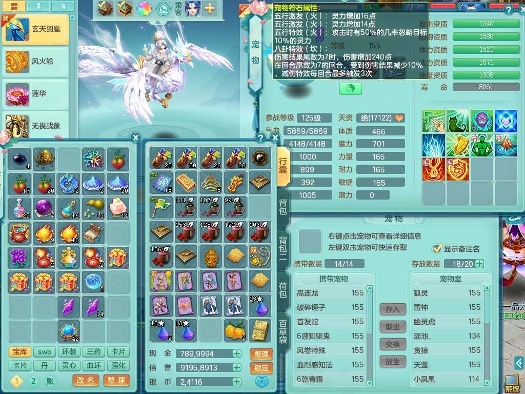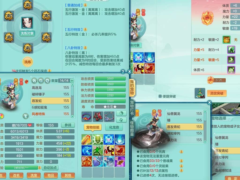 a22311任剑逍遥159女普陀,精灵歌,1龙2内胆神,7觉醒,2特殊(月光, 风卷),易成长笑里单加头,愤怒野兽单加50腰带,易成长慈航单加50鞋子,4.5基础鼎,9觉醒,10只满果子,仓库还有38个果子,宠排在榜,双人坐骑,有42个仙兽蛋,25天月卡。