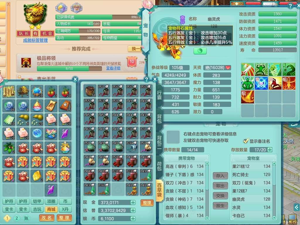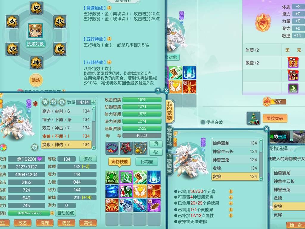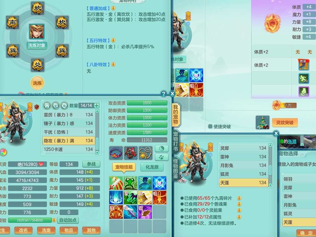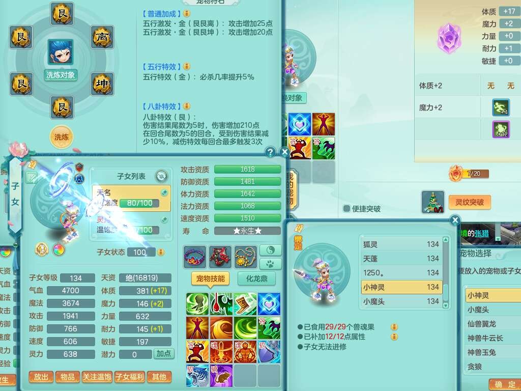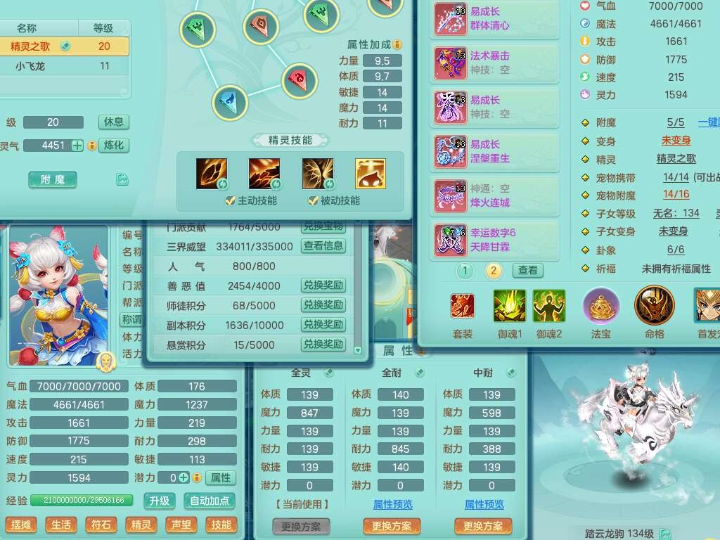 p22310,2020区129女魔王,精灵歌,1龙2内胆神,4觉醒(潜龙条件化龙鼎满足,宝宝满足4只,差符石2个主要,差4个附加属性),4宠皮,易成长玉清单加43头,法爆单加42武器,易成长单加44衣服,199易成长慈航链子,幸运6四海单加43鞋子,4.0基础鼎+56攻+224血,6个纯六字,2个五字,14只满果子,双人坐骑,有有28个仙兽蛋。➕129女普陀奶粉,精灵舞,易成长清心术单加武器,愤怒四海单加腰带,六特,4.0基础鼎,带380w神武币。