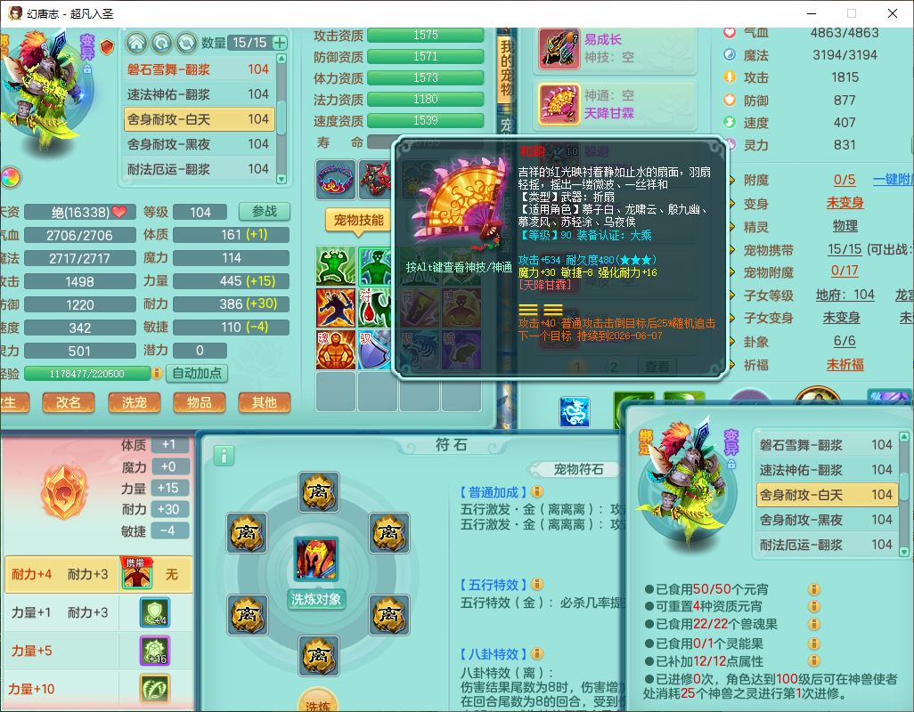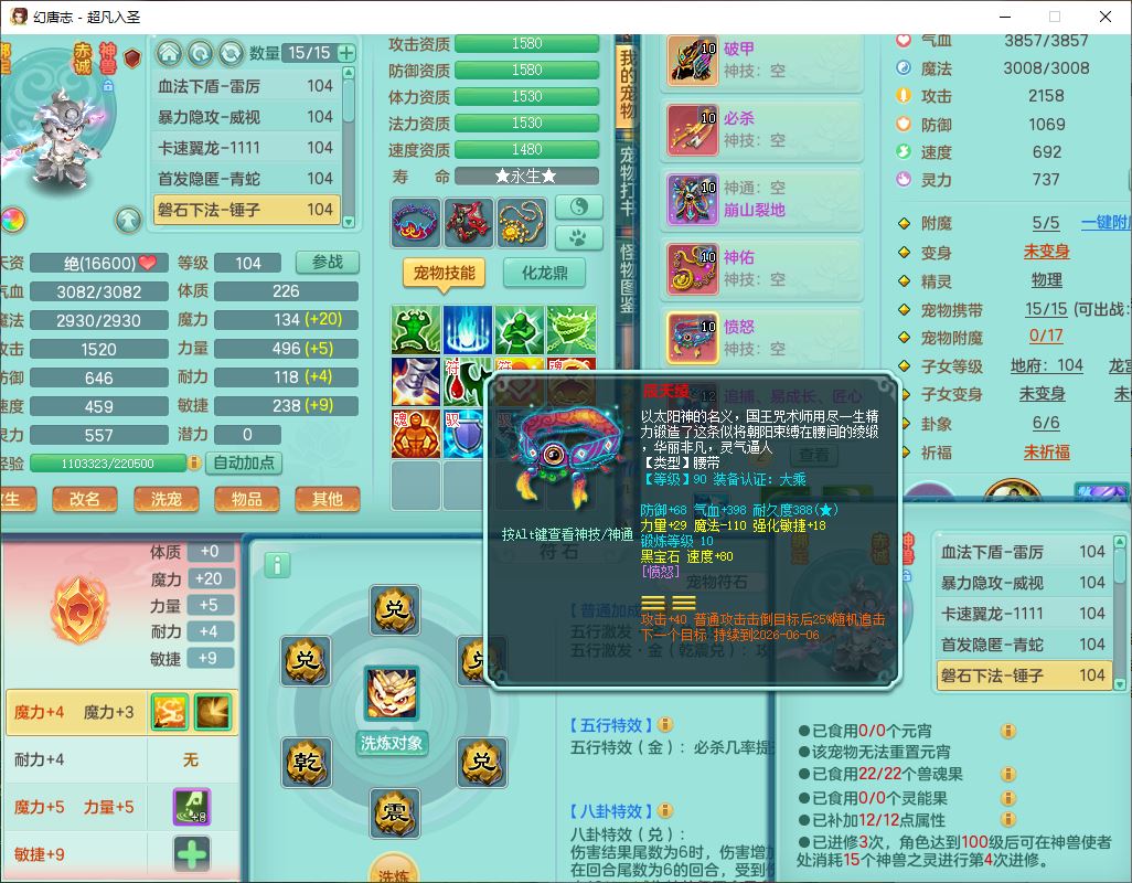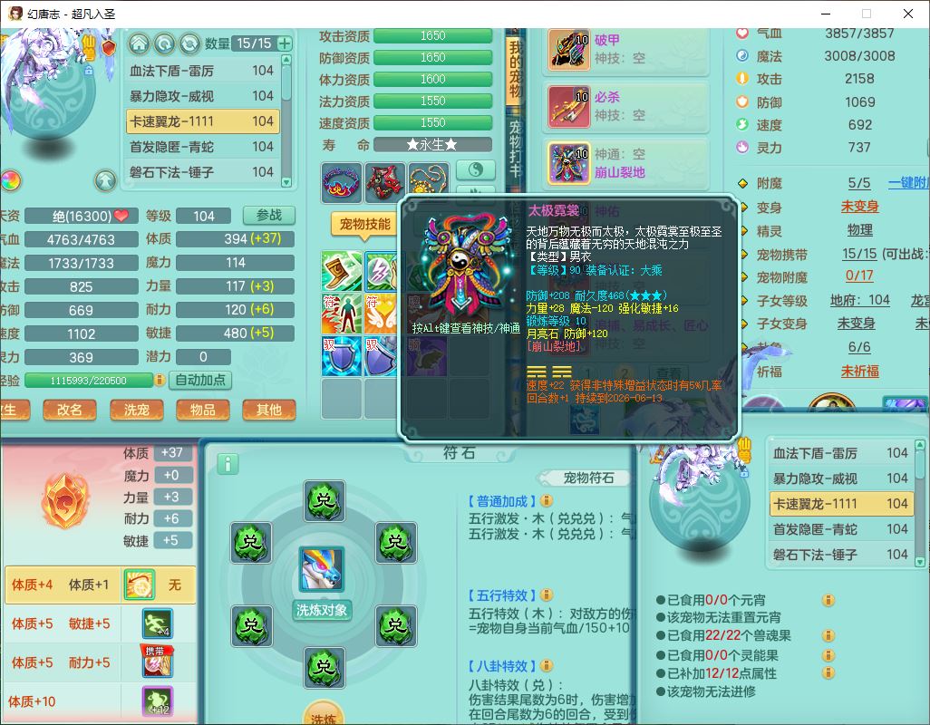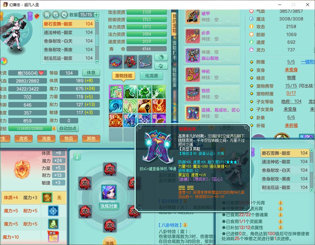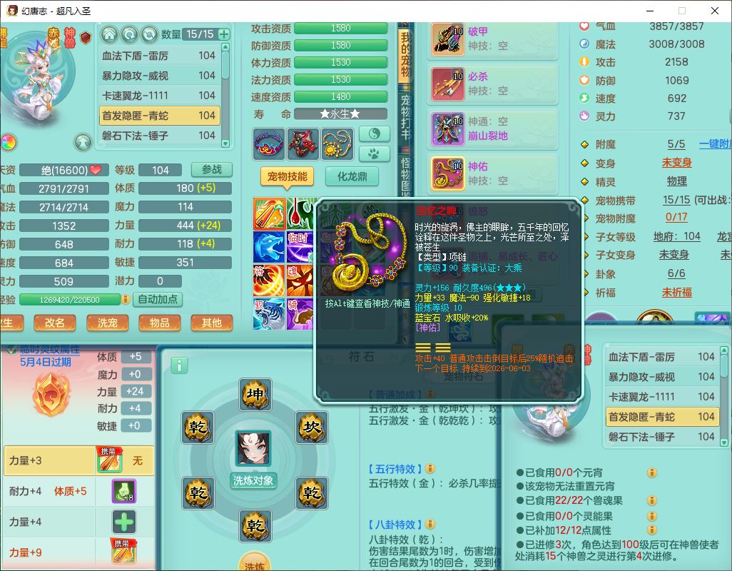 52696超凡入圣99男无名【准潜龙号,差2条附加】力敏、全魔双精灵,3龙(1换、无内)2内(1青蛇)4翻江4舍身1童子1金炉,8觉醒4宠皮8六字3五字8四字21只满果子,8红装备,破甲帽子,必杀武器,崩山衣服,神佑项链,匠心Y鞋子,有法系装,躲避笑里衣服,156单加Y项链,五雷鞋子,鼎2.5+42+168,2套符石,58天月卡,庭院150,永久外观、精灵皮肤,27个内丹碎片,1双人坐骑