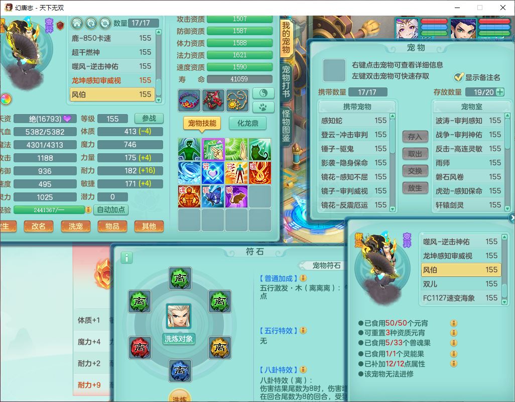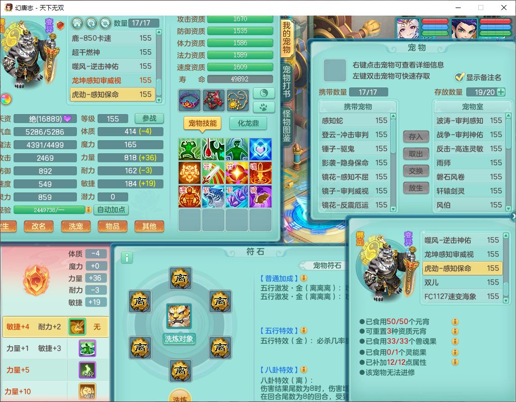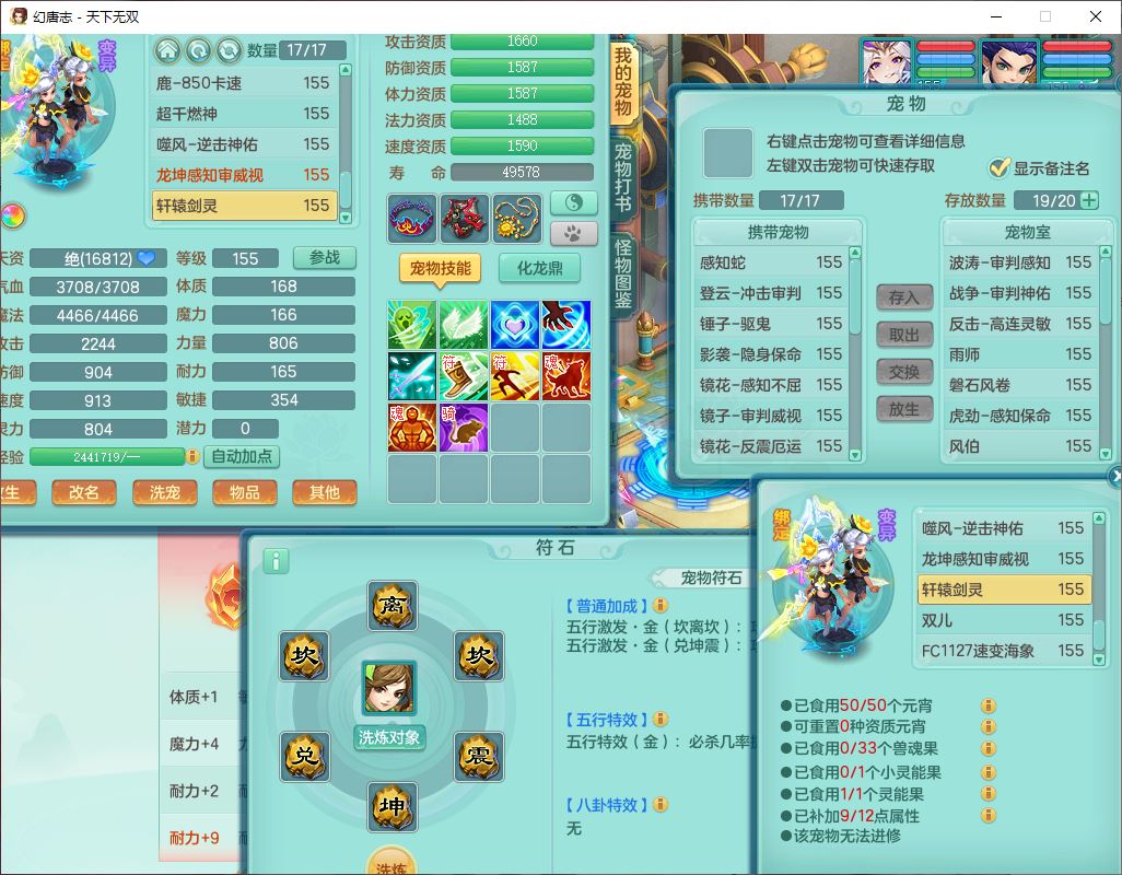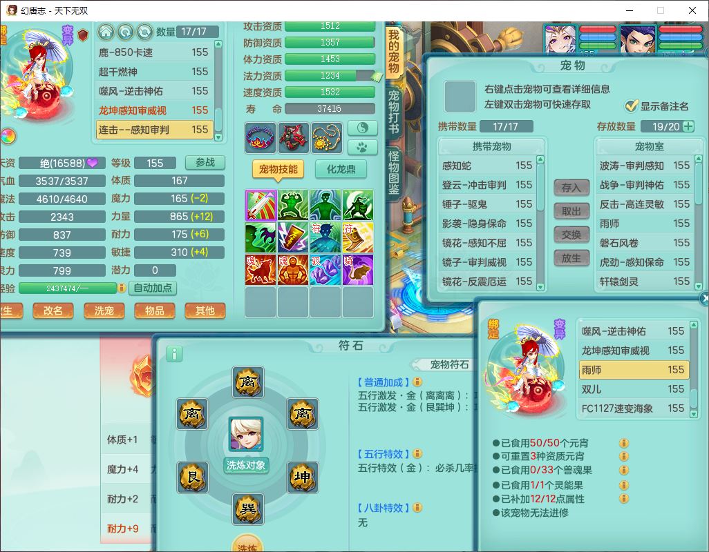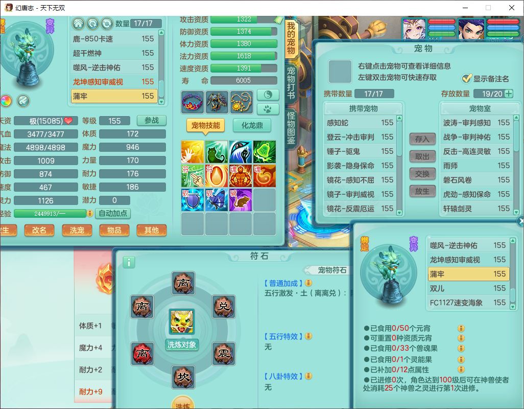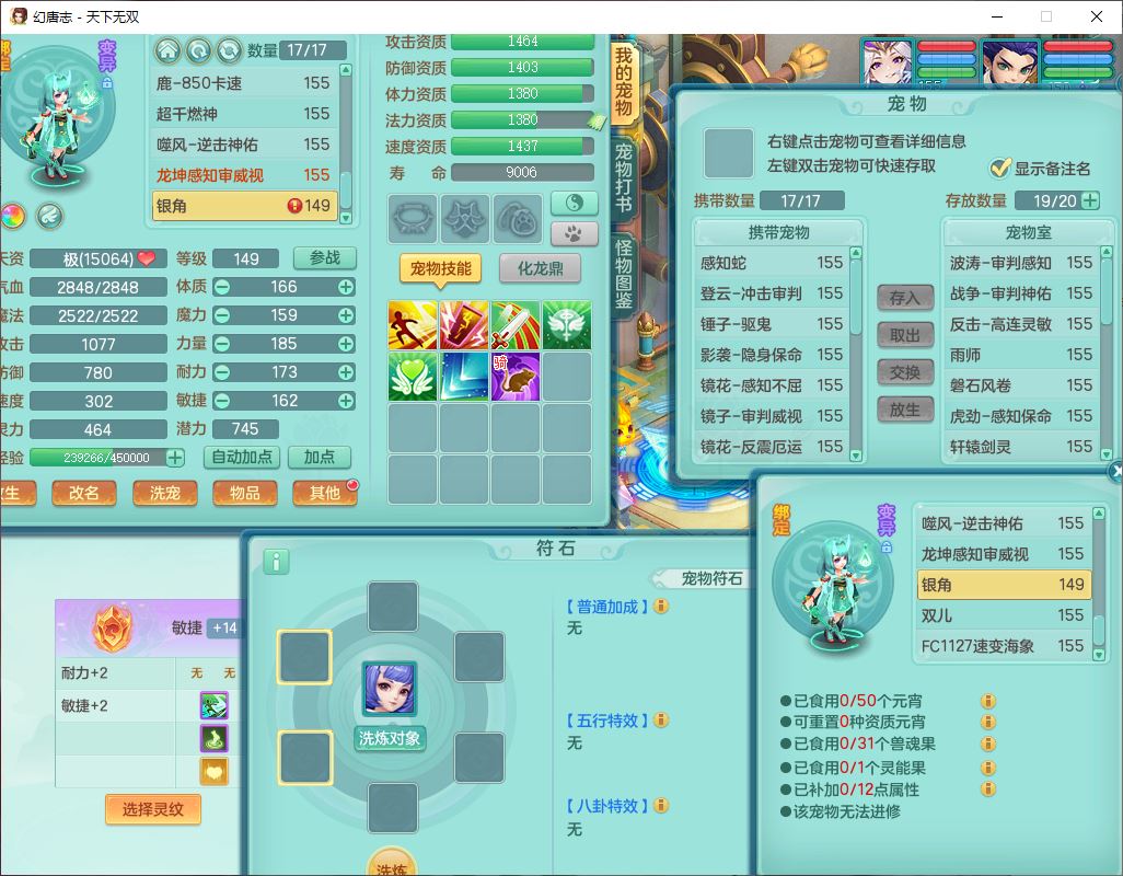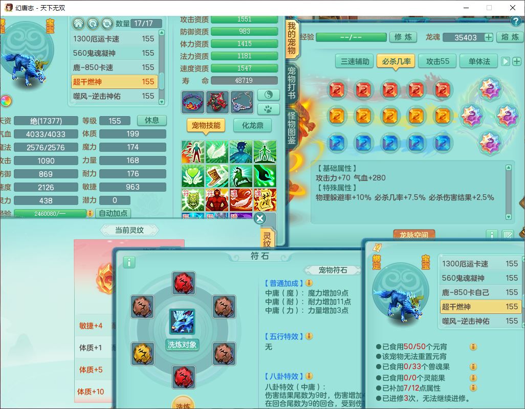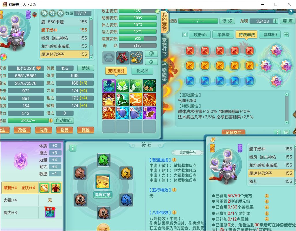 24321天下无双159男天宫【潜龙号+暴龙洪荒+西瓜冰】精灵歌,1龙(换,无内)1内丹青蛇8特殊(破碎、影袭、号角、噬风,兽决飞花、以战、双星、怒破)5镜花灵1龙姬1金炉,21觉醒4宠皮17六字3四字综合21只满果子,17格子,10红双破甲星辰之拥装备,,单加Y狂暴武器,破甲帽子,格挡衣服,神佑以战项链,指挥崩山腰带,破甲回生鞋子,一套法系装备,Y击退武器,法缭衣服,五雷帽子,法缭鞋,鼎6.0+70+280,房屋166,永久外观精灵皮肤,31内丹碎片,360w神武币,宠排在榜,7只双人坐骑