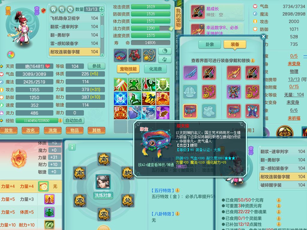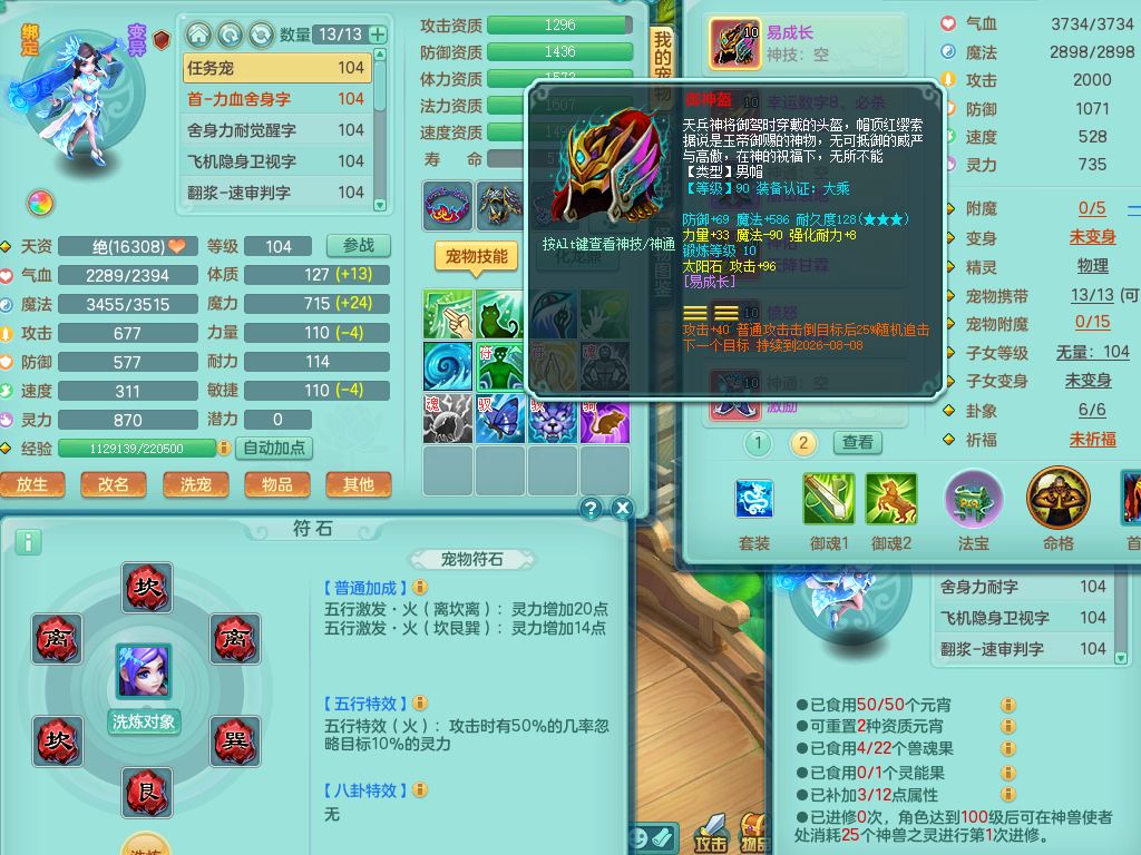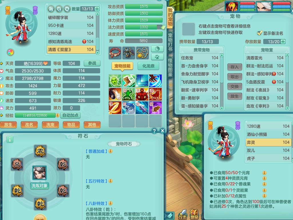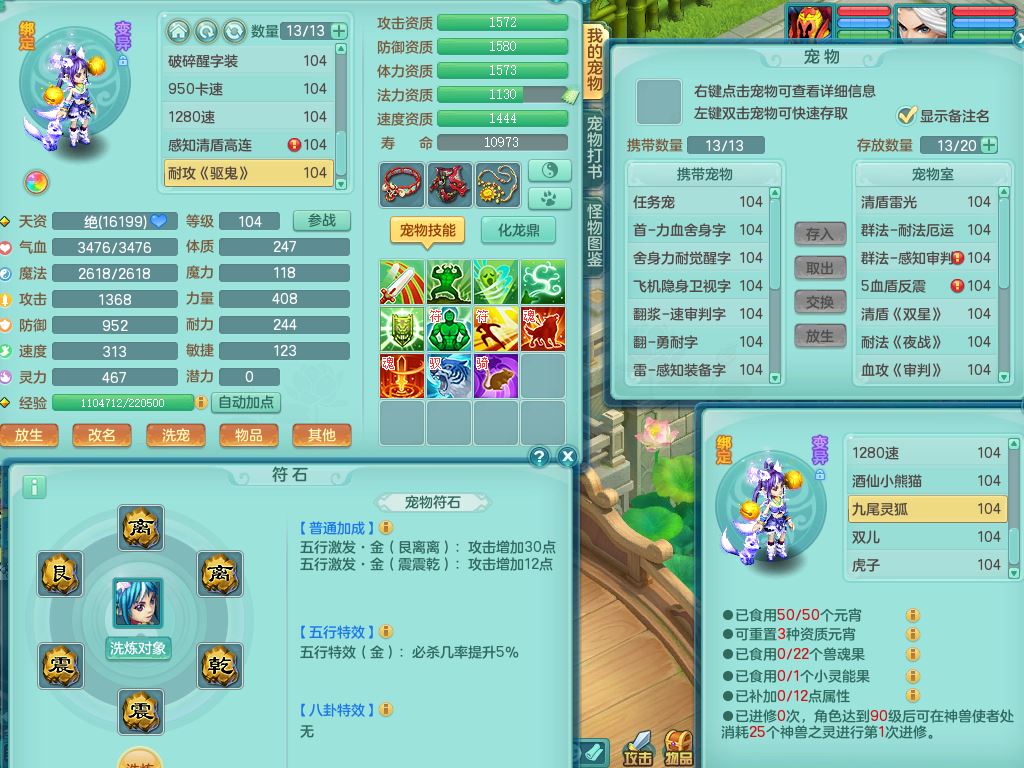 tx10423天下无双99男天策3系精灵,1内丹神1青蛇无内,7只满果子8觉醒2个纯6字,全身单加10红,537幸运必杀罗汉武器,崩山衣服,神佑四海项链,愤怒双红腰带,鼎2.5+42,精灵皮肤,双人坐骑