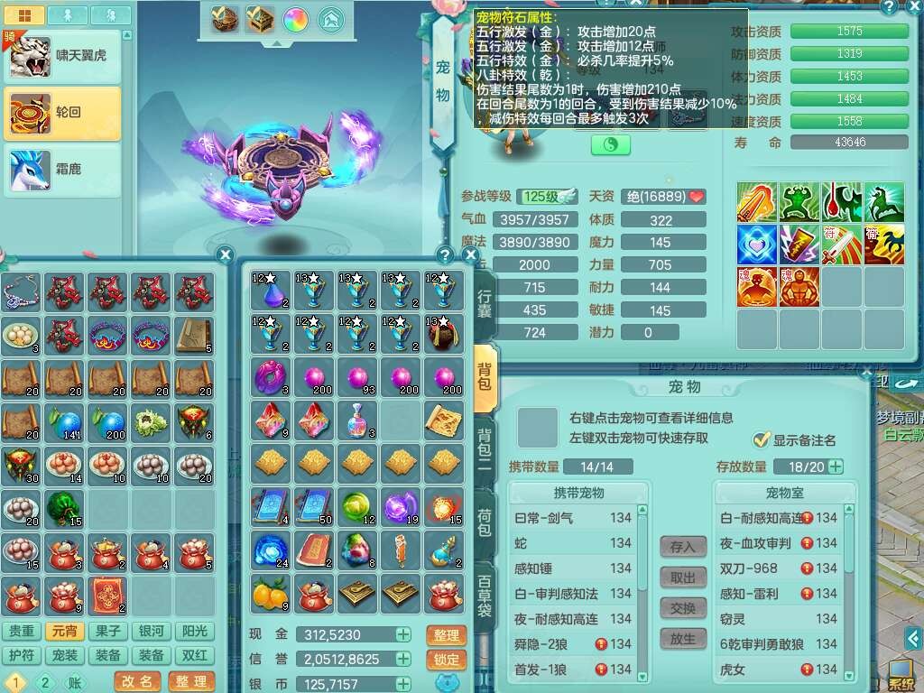 K22337花好月圆129男普陀,精灵舞,1灵2内胆神(1蛇),6觉醒,易成长四海单加衣服,易成长笑里链子,愤怒刺甲咒单加45腰带,六特,4.0基础鼎+56攻,2个纯六字,12只满果子,宠排在榜,双人坐骑。