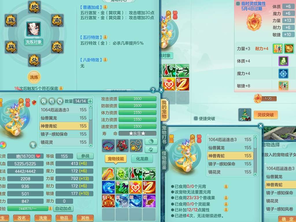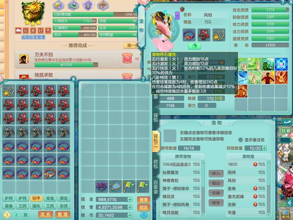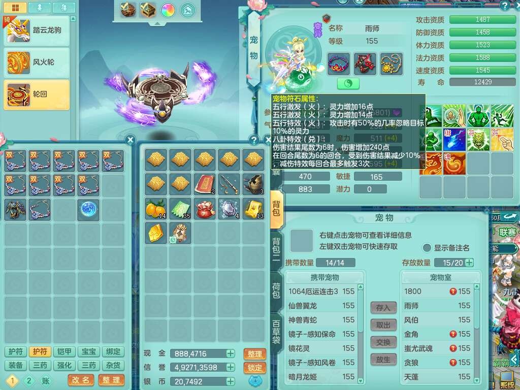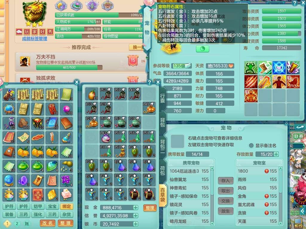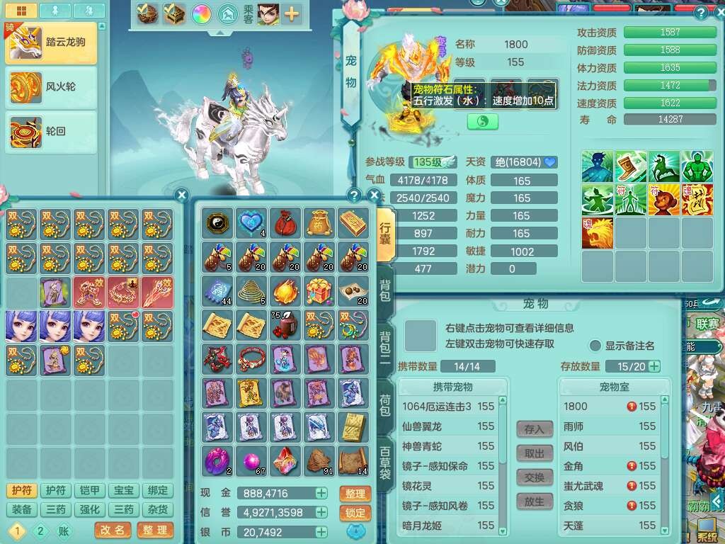 J22335风驰电掣159男无量,精灵舞,2龙(1龙没内),1内胆神,1神兽+30个神兽内丹碎片,5觉醒,2特殊(风卷,雷厉),3只六技能镜花灵,1只六技能龙姬,愤怒疾速腰带,易成长慈航单加50鞋子,五特,有愤怒单加54腰带,4.5基础鼎,1个五字,6只满果子,双人坐骑。➕159女五庄,精灵舞,2觉醒,3特殊(剑气,登云,勇猛),1只六技能镜花灵,易成长止戈单加57链子,震怒心神合一单加55腰带,六特,4.5基础鼎,带1246金币。➕159男鬼谷,精灵歌,1觉醒,易成长单加57头,法爆单加56武器,易成长玉清单加53衣服,易成长烽火单加55腰带,迅捷单加57鞋子,有24个神兽内丹碎片,1294金币。