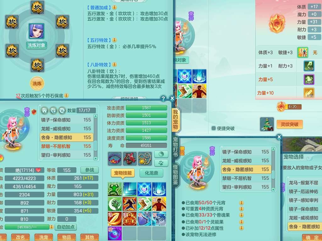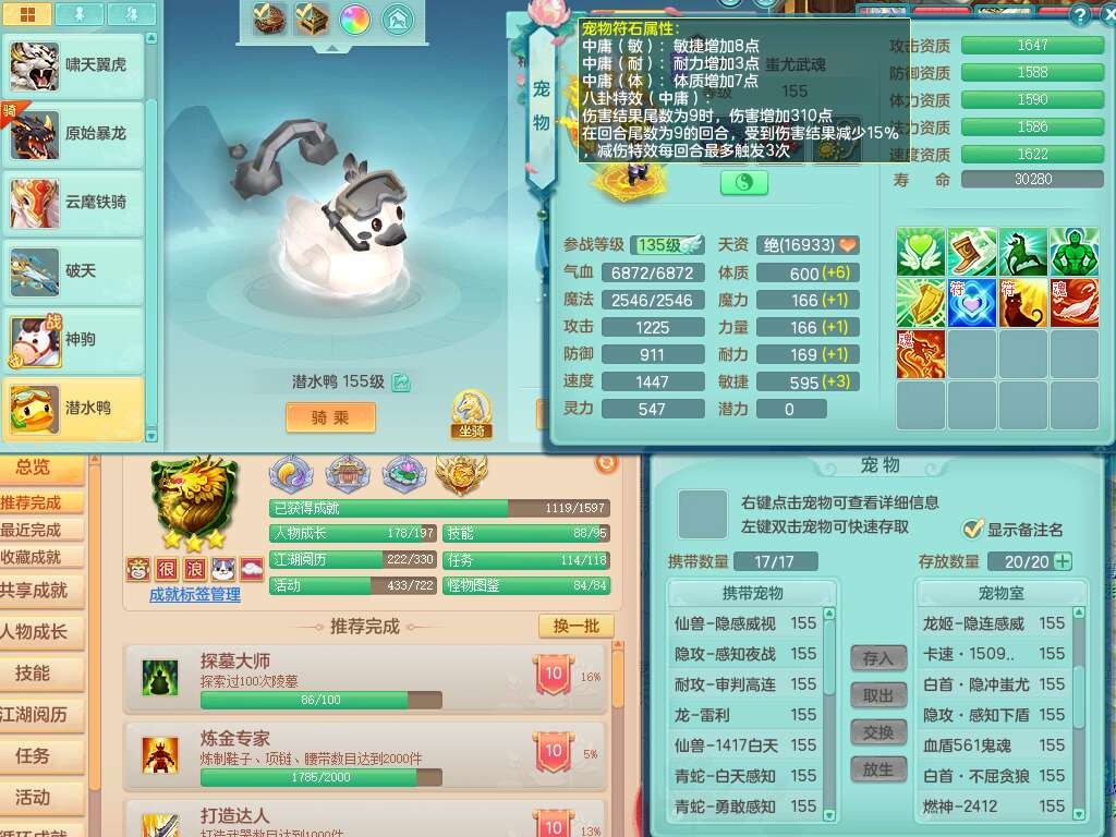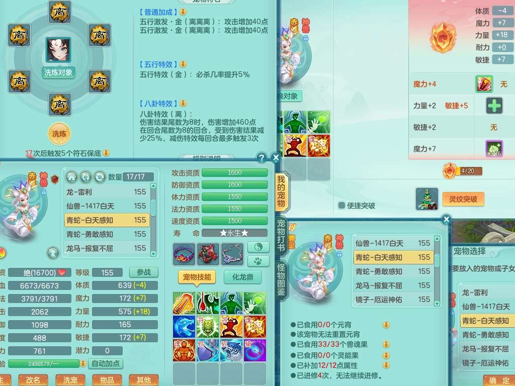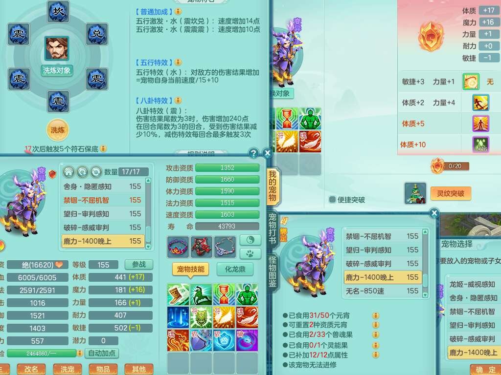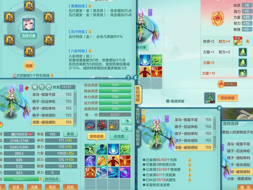 a22327天下无双159男龙宫,精灵舞,5龙1龙皮,3内胆神(2蛇1马),1破镜,【17觉醒,已潜龙】,4位靓号不含4,5宠皮,4特殊(怒破,舍身,禁锢,噬风),5只六技能镜花灵,1只六技能龙姬,伤害四溅五雷单加武器,易成长单加51衣服,272易成长净心术单加54链子,易成长单加57腰带,有法缭鞋子,法爆单加武器,5.5基础鼎+280血,15个永久格子,20个纯六字,1个五字,28只满果子,宠排在榜,7只坐骑,暴龙泰坦+神驹马上发财,冰晶庭院,带82天月卡。