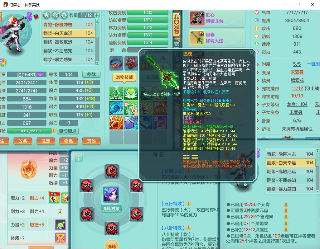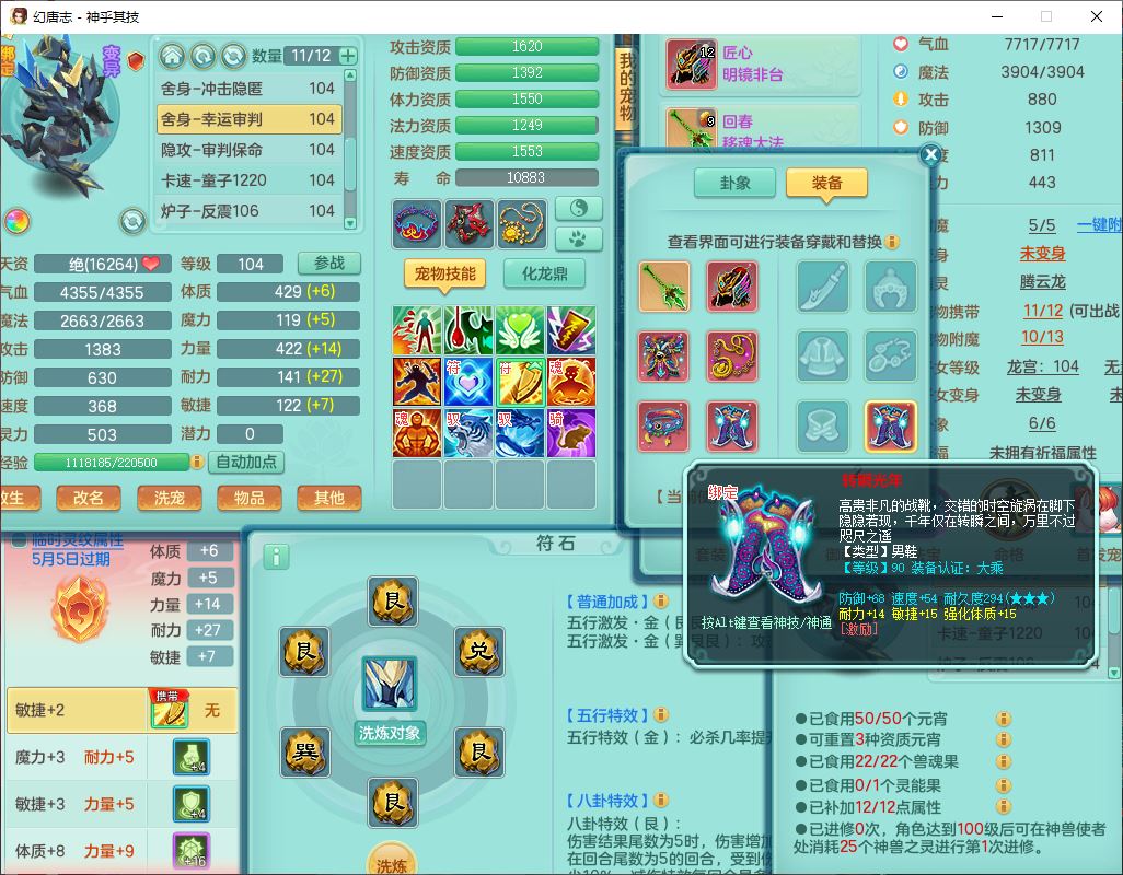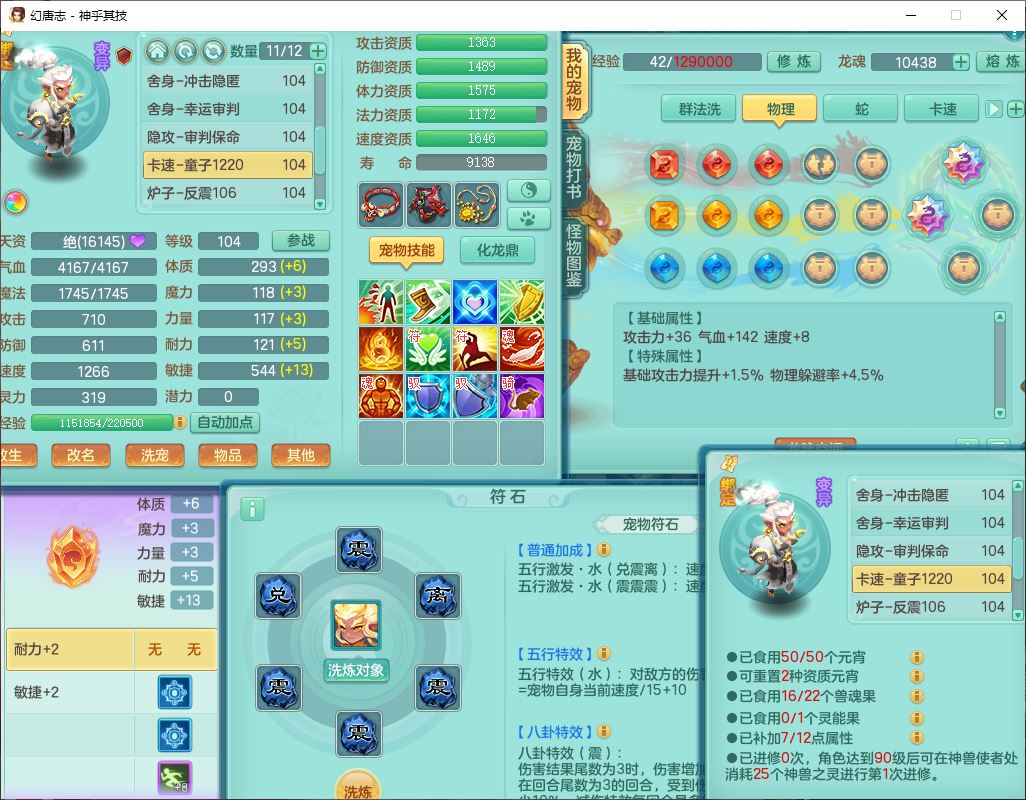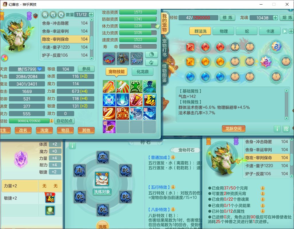 99797神乎其技99男普陀【暴龙逍客+西瓜冰】体敏耐精灵,1内丹小马(带蛇影)4翻江2舍身1童子1金炉,2觉醒1宠皮2六字1五字10四字,9红装备,匠心明镜帽子,回春移魂武器,愤怒群体迟滞腰带,鼎1.2,34天月卡,永久外观、精灵皮肤,33个内丹碎片,2坐骑