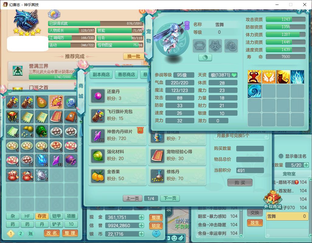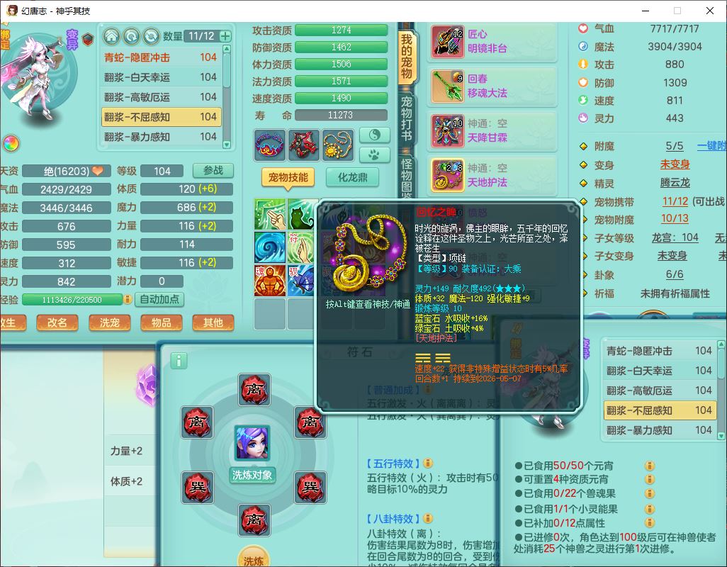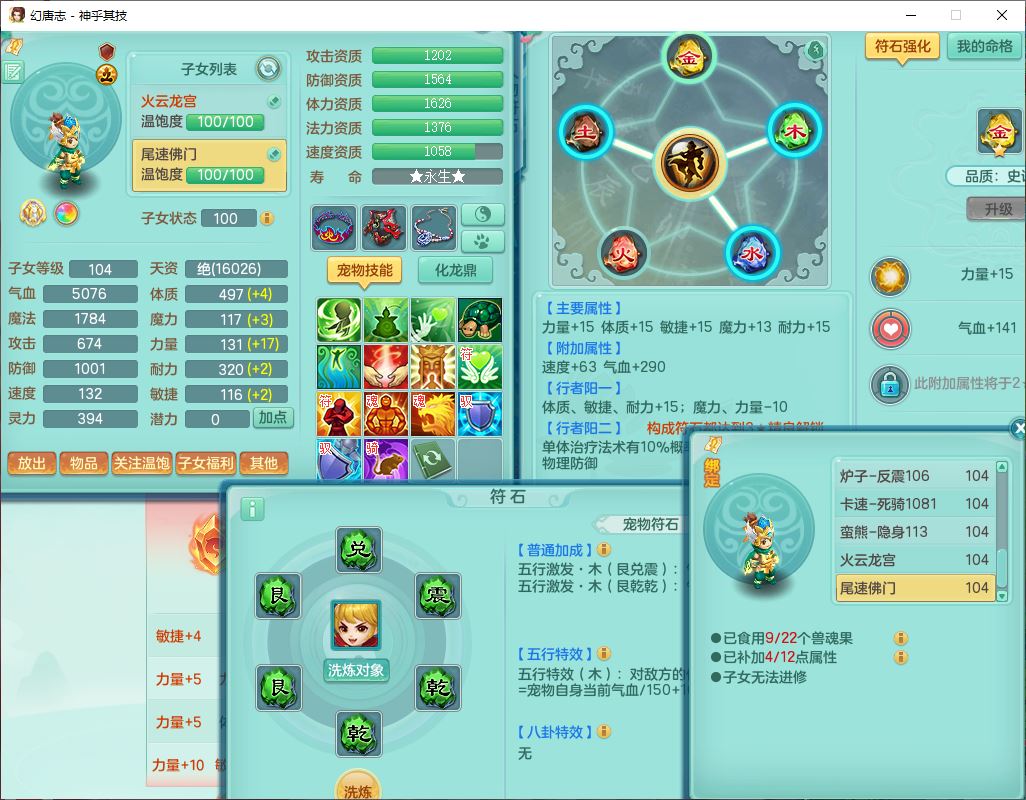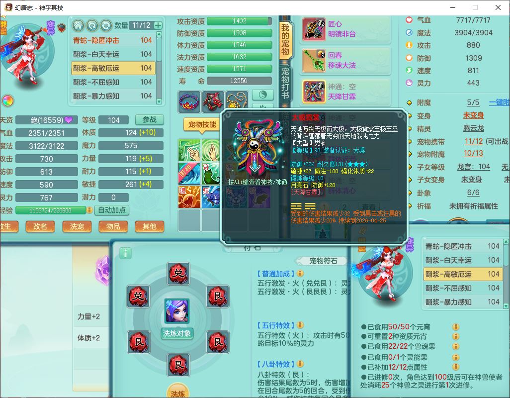 99797神乎其技99男普陀【暴龙逍客+西瓜冰】体敏耐精灵,1内丹小马(带蛇影)4翻江2舍身1童子1金炉,2觉醒1宠皮2六字1五字10四字,9红装备,匠心明镜帽子,回春移魂武器,愤怒群体迟滞腰带,鼎1.2,34天月卡,永久外观、精灵皮肤,33个内丹碎片,2坐骑