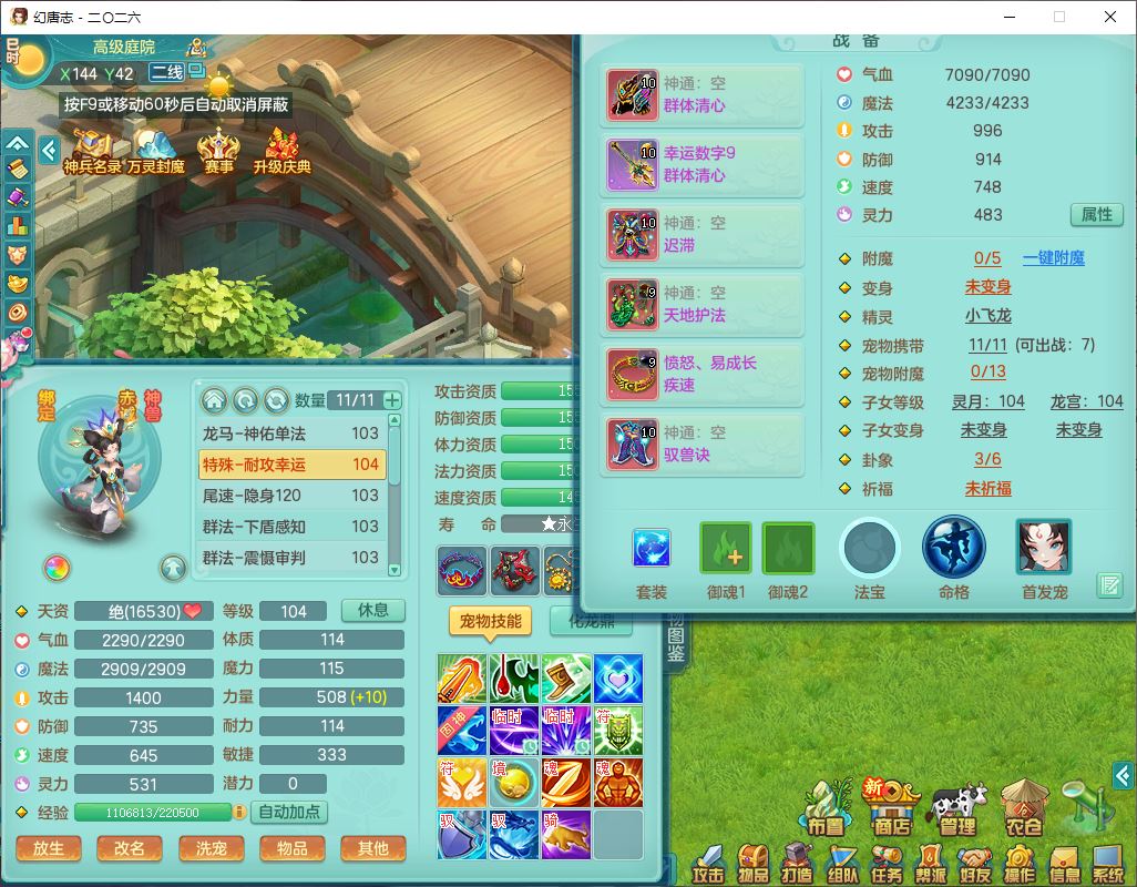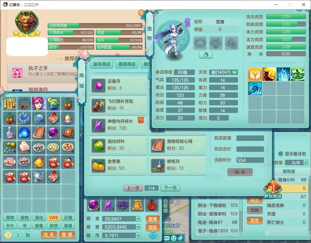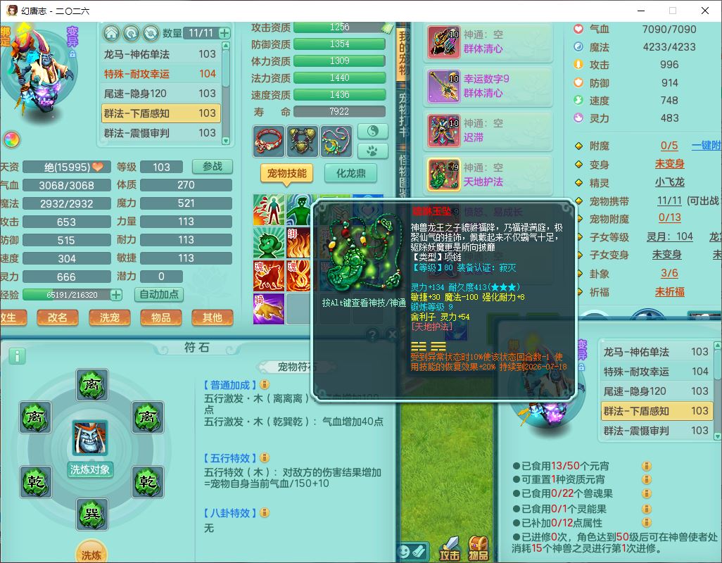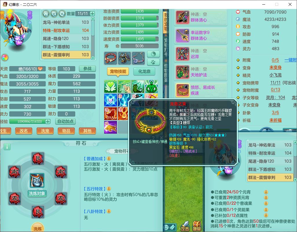 99796,2026区99男盘丝【马到成功+火焰之力+流光翎】体敏耐精灵,2内(1青蛇1龙马)1金炉1童子,10只成品满高书宝宝,2孩子(龙宫+灵月),9红装备,幸运玉清武器,愤怒Y疾速腰带,抗灵五件套,63天月卡,满修炼,永久外观,17个内丹碎片