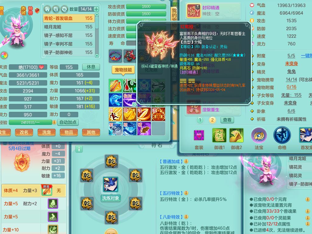 tx10424天下无双159女方寸【火焰之力】精灵舞,1内丹青蛇1皮,3特殊(祈雨/羽袭/藕断)3镜花1龙姬,11只满果子6觉醒3个纯6字,9红,封印头,Y四海项链,愤怒绝幻腰带,Y慈航鞋,鼎5.5+70,80天月卡,庭院159房屋150,永久外观精灵皮肤,1020金币,51仙兽灵,2只双人坐骑