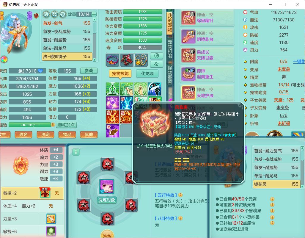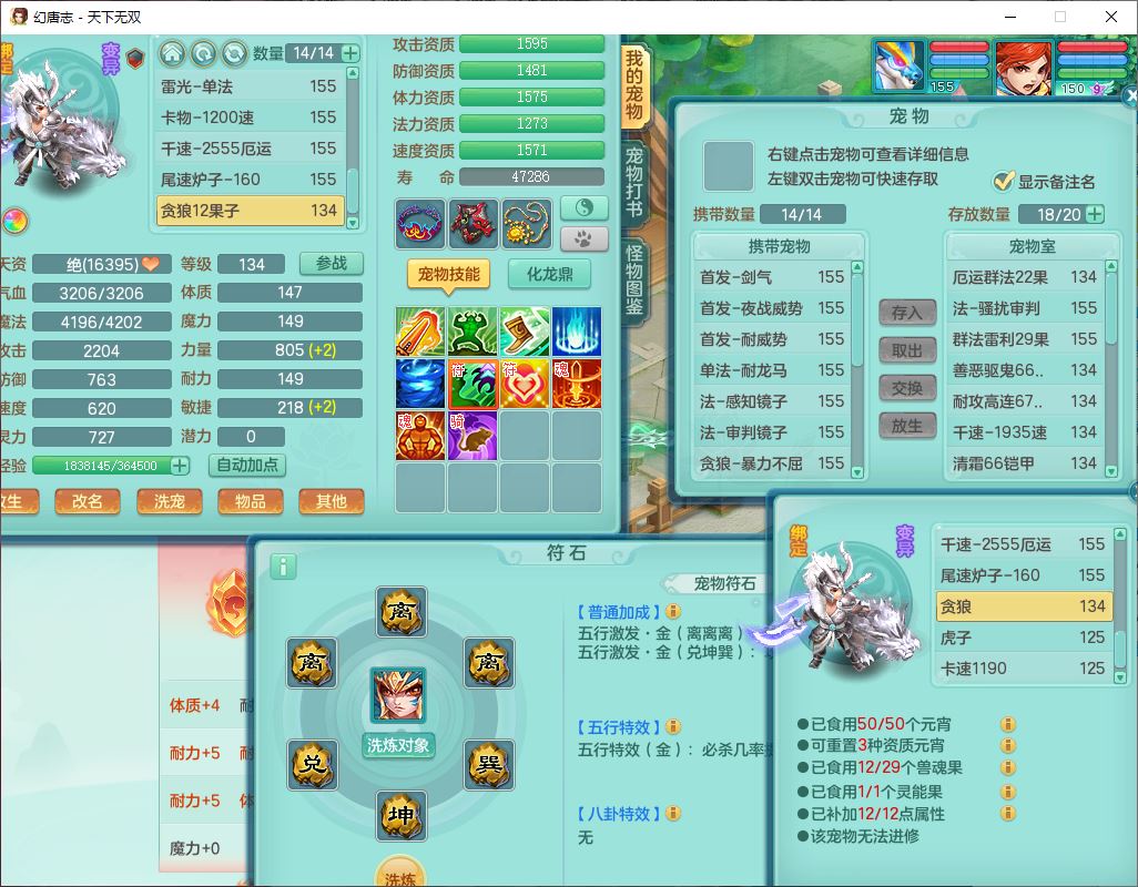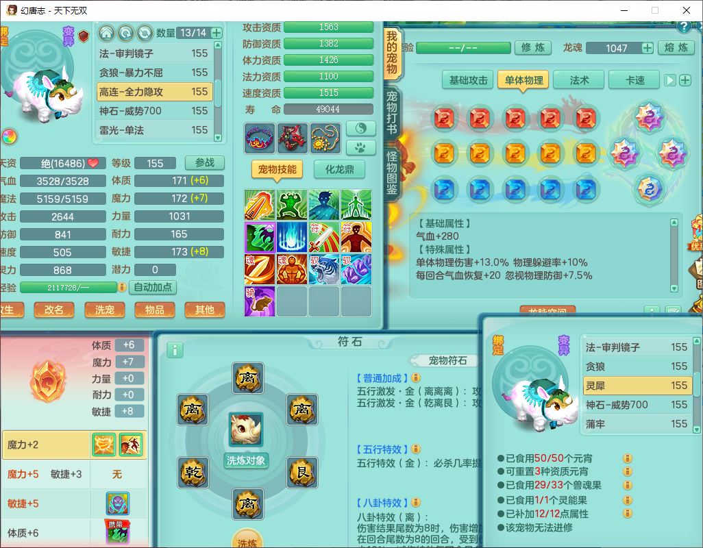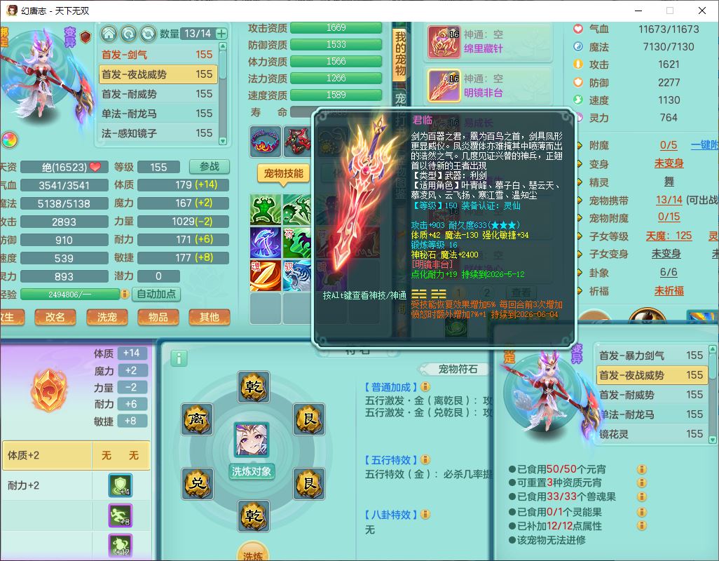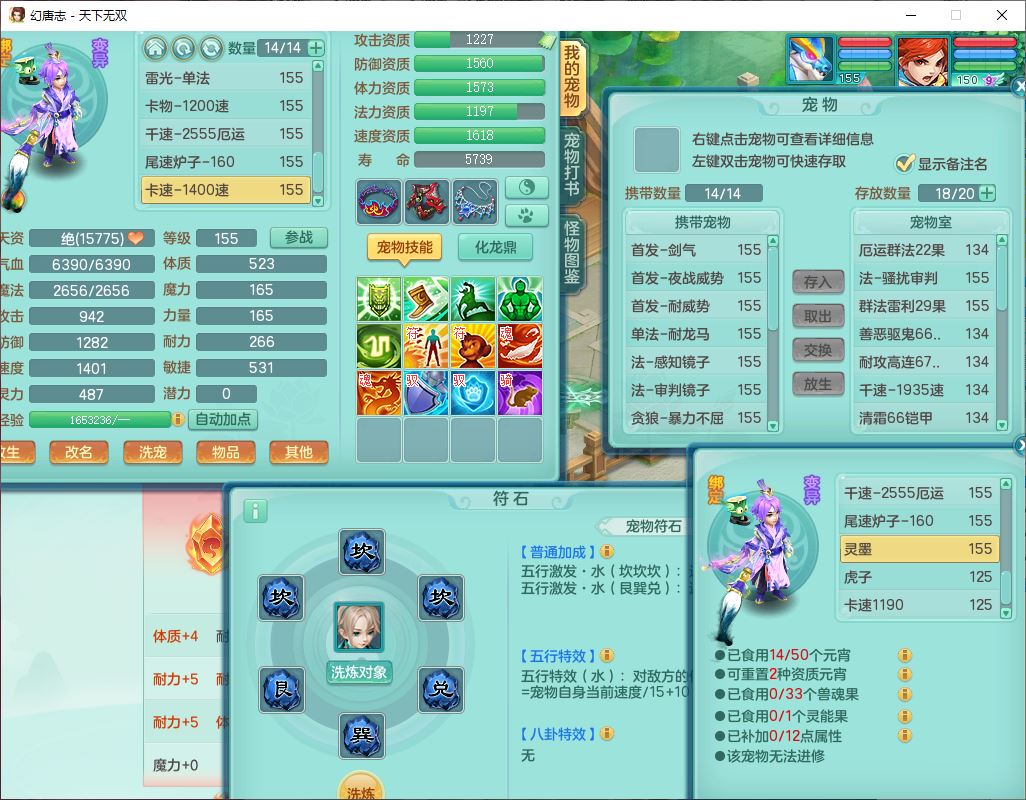 tx10427天下无双159男无量精灵舞,满级共鸣,1龙(无内)1内丹龙马1望归3镜花灵(1胚子)1龙姬1金炉,4觉醒3宠皮8四字综合13只满果子,8红6特,Y四海衣服,单加药师慈航项链,鼎5.5+70+280,化龙鼎满足潜龙要求,永久外观,29个内丹碎片,1飞行双人坐骑