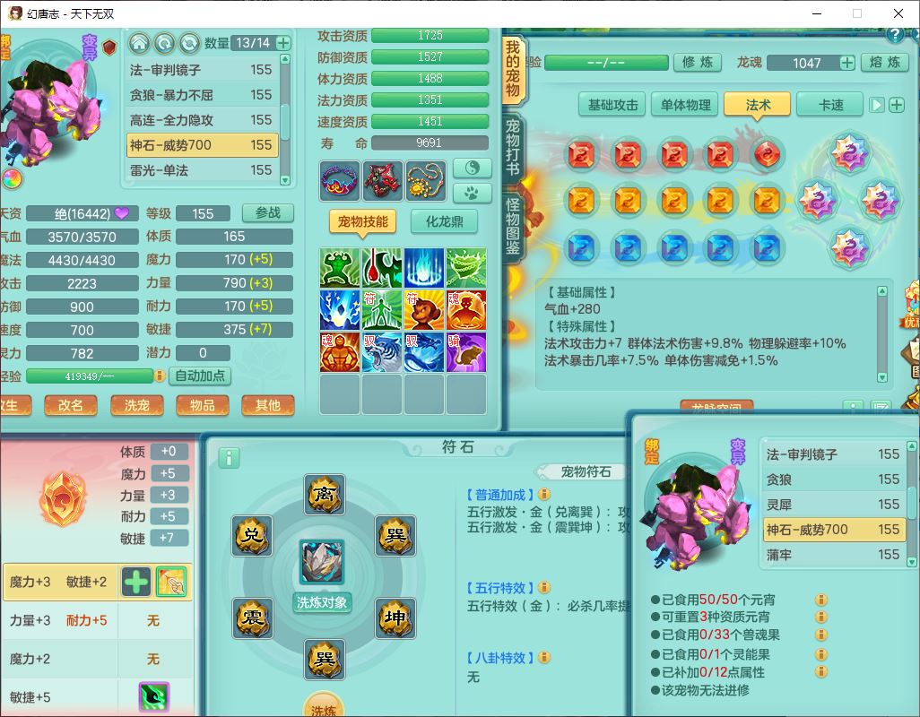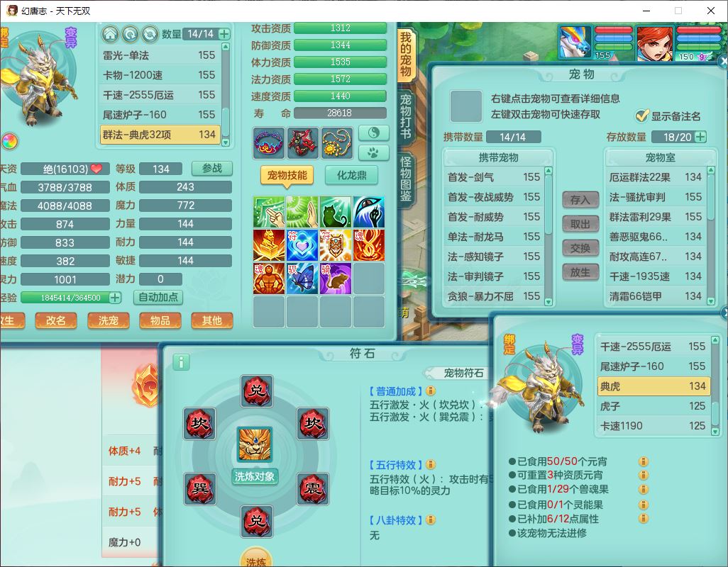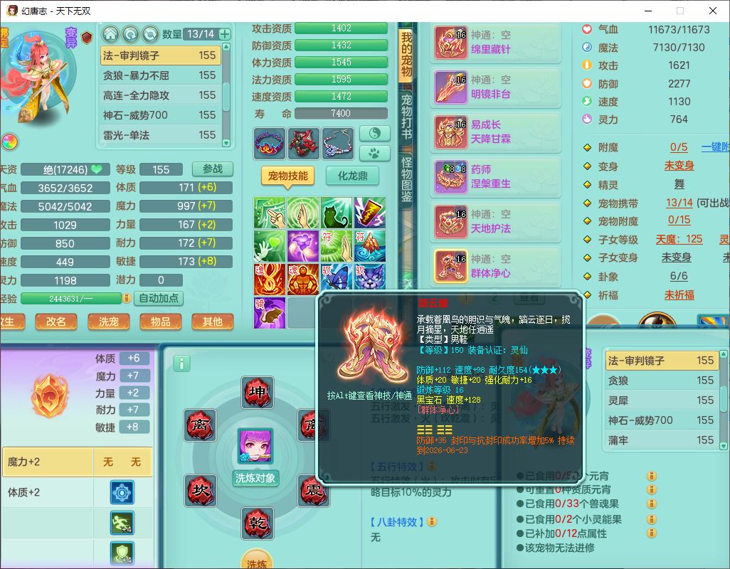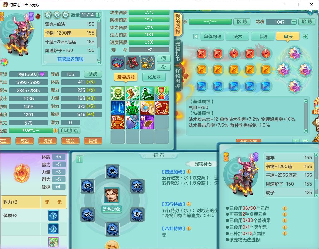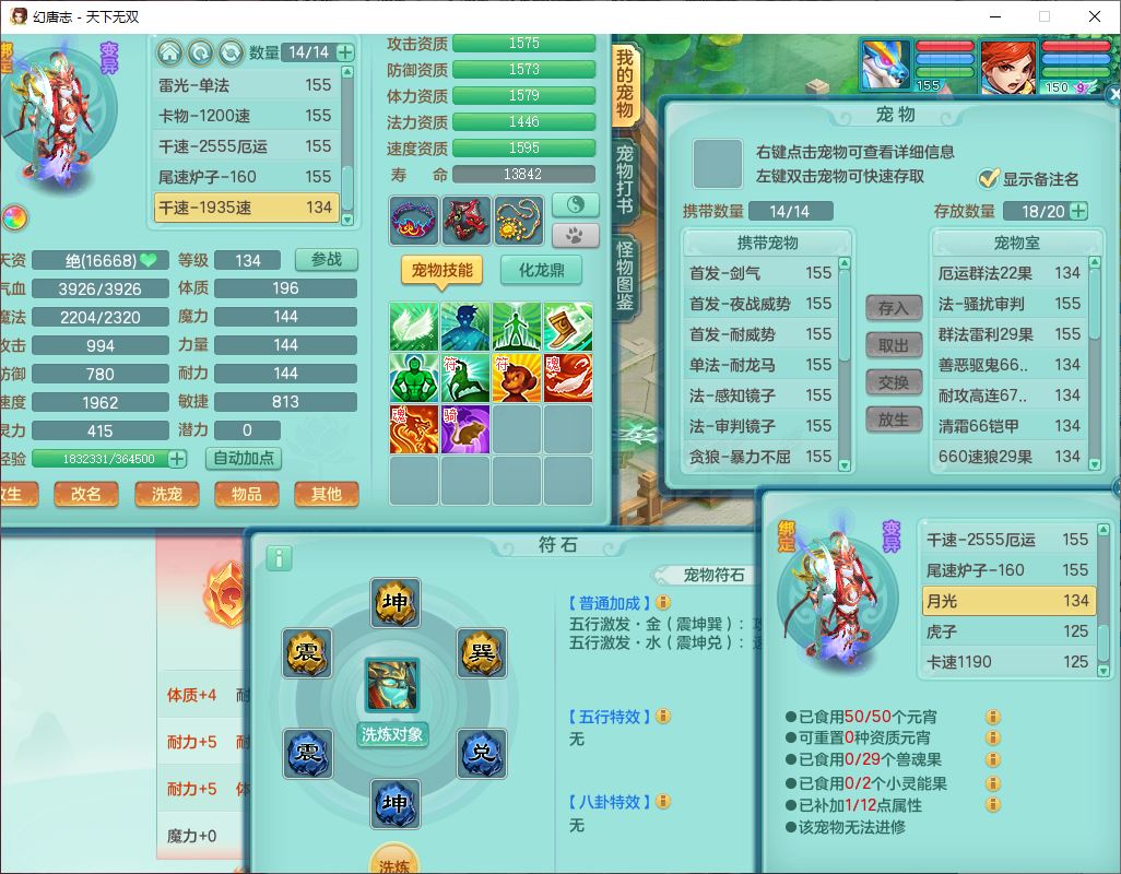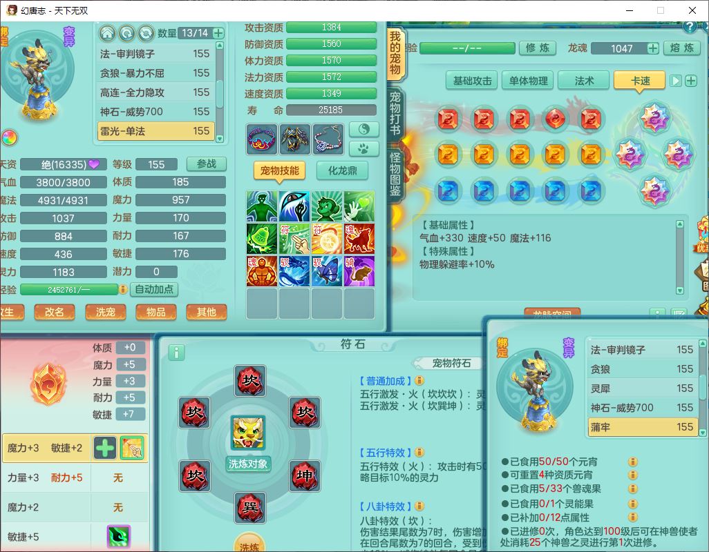 tx10427天下无双159男无量精灵舞,满级共鸣,1龙(无内)1内丹龙马1望归3镜花灵(1胚子)1龙姬1金炉,4觉醒3宠皮8四字综合13只满果子,8红6特,Y四海衣服,单加药师慈航项链,鼎5.5+70+280,化龙鼎满足潜龙要求,永久外观,29个内丹碎片,1飞行双人坐骑