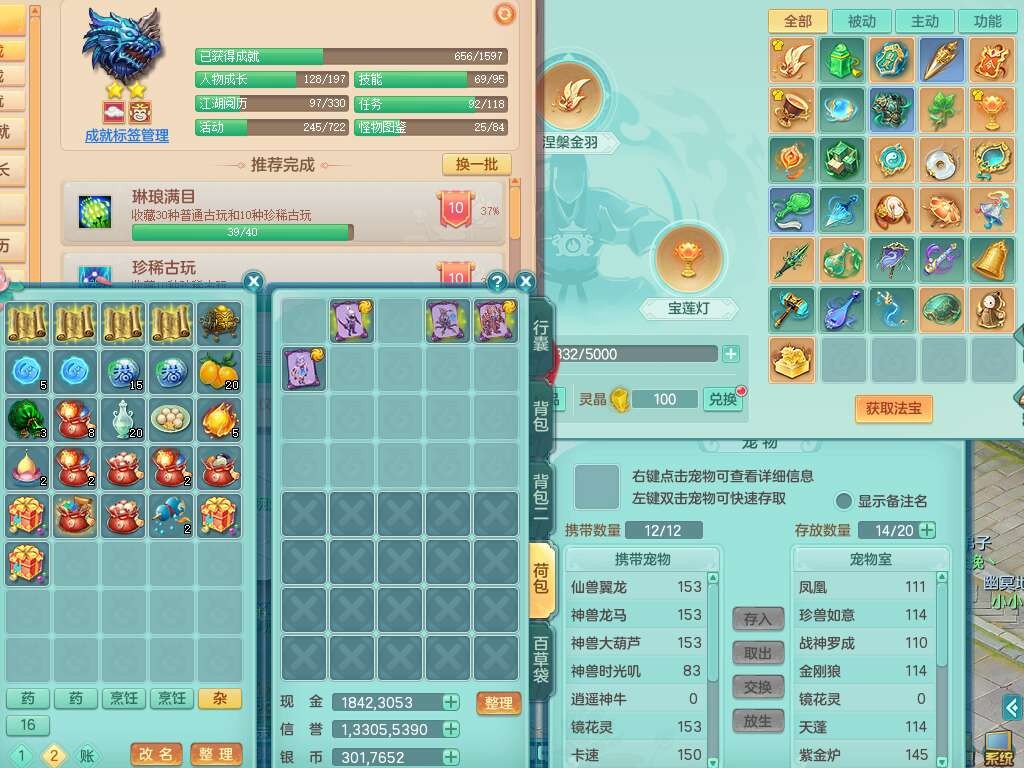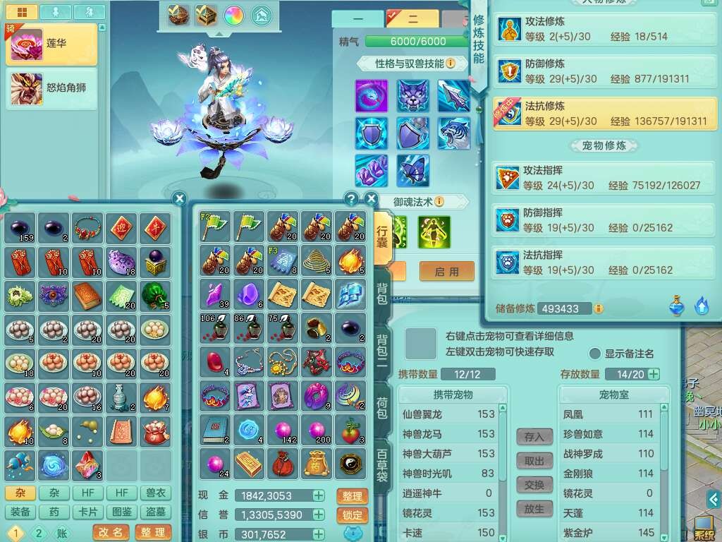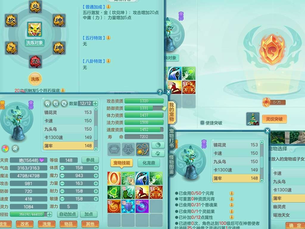 s22349风华绝代148男无量,1龙1内胆神(马),3神兽+39个神兽内丹碎片,1觉醒,4位靓号不含4,1只六技能镜花灵,双红易成长群体守护单加衣服,双红幸运7四海链子,震怒五特,带301w神武币。