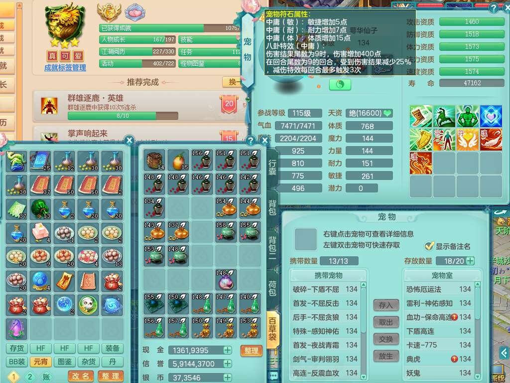 A22347今年勇129龙宫,精灵歌,1内胆神,【7觉醒,已潜龙】,封印精通烽火单加头,匠心法爆单加46武器,三红易成长强化防御群体激励单加45衣服,214易成长单加41链子,易成长四海单加腰带,法缭鞋子,4.0基础鼎+56攻+224血,7个纯六字,2个五字,12只满果子,宠排在榜,有32个神兽内丹碎片,34天月卡。➕129女盘丝,愤怒五特,3.5基础鼎,1只坐骑。