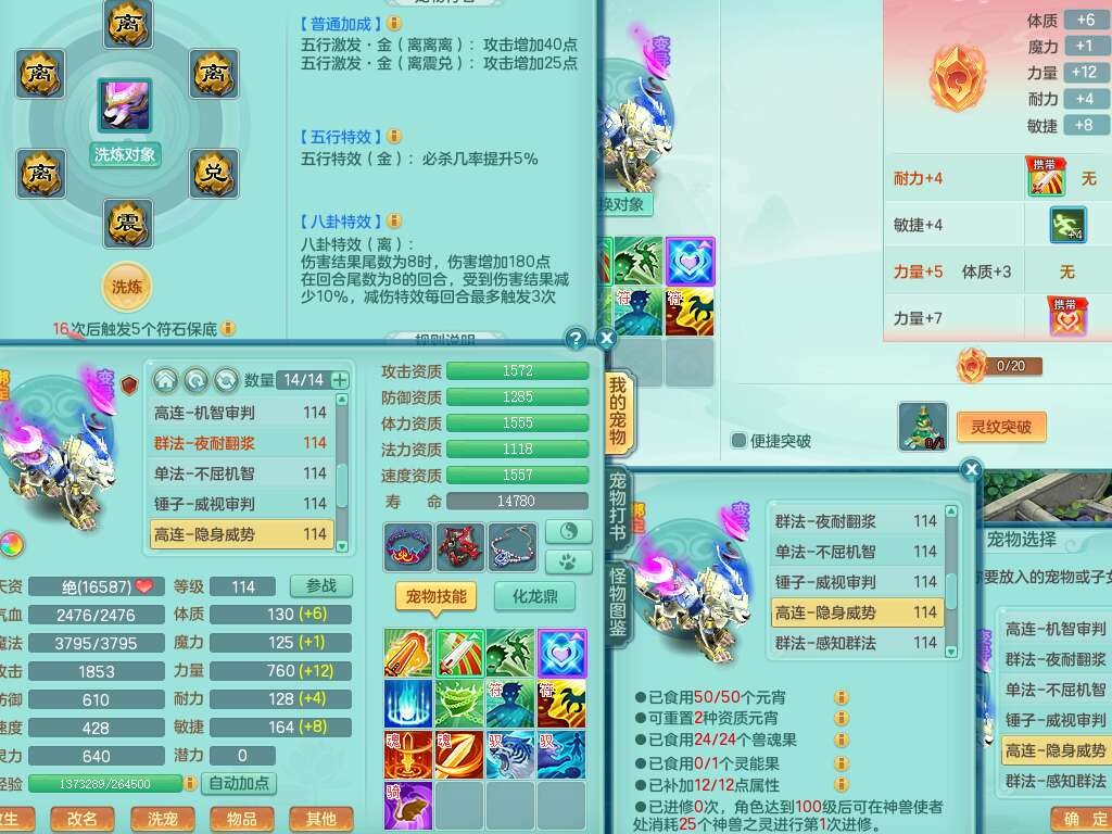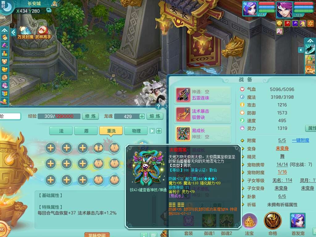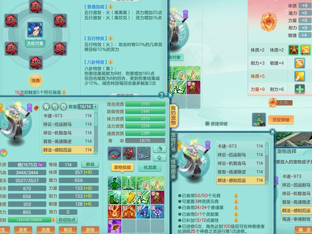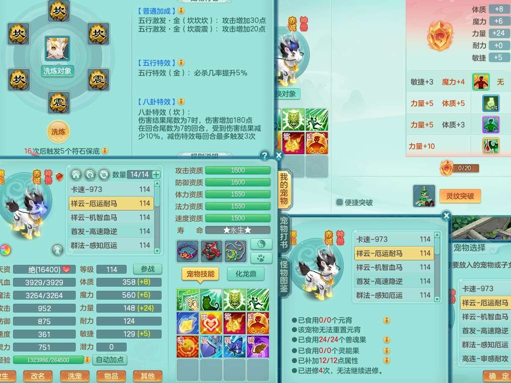 p22346超凡入圣109男魔王,精灵舞,1龙无内,2内胆神(马),7觉醒(潜龙条件化龙鼎满足,宝宝满足1只,符石差3个附加属性),3宠皮,五雷单加38头,法爆驭兽决单加34武器,易成长单加35衣服,166易成长卸甲单加38链子,愤怒静心术单加30腰带,法缭单加30鞋子,物理有破甲群体守护头,603必杀野兽武器,608狂暴卸甲单加武器,神佑单加37链子,愤怒崩山腰带,易成长笑里单加36鞋子,3.0基础鼎+42攻+168血,3个纯六字,2个五字,16只满果子,宠排在榜,4只坐骑,神驹马到成功+火焰之力武器,有24个神兽内丹碎片,141天月卡。