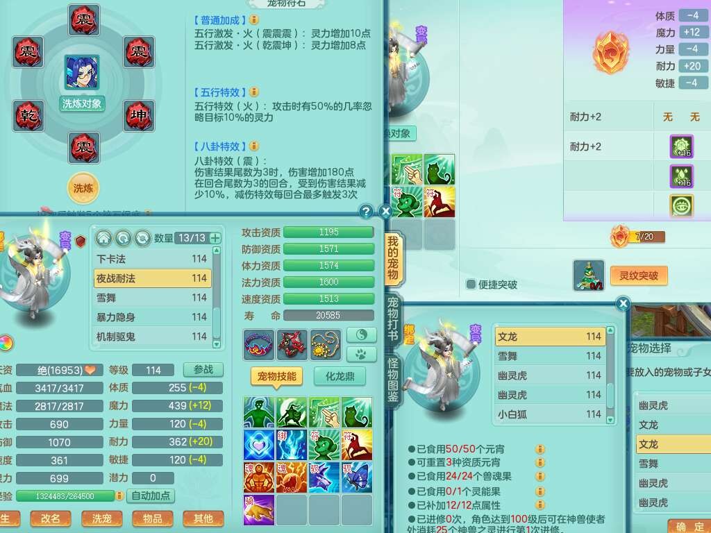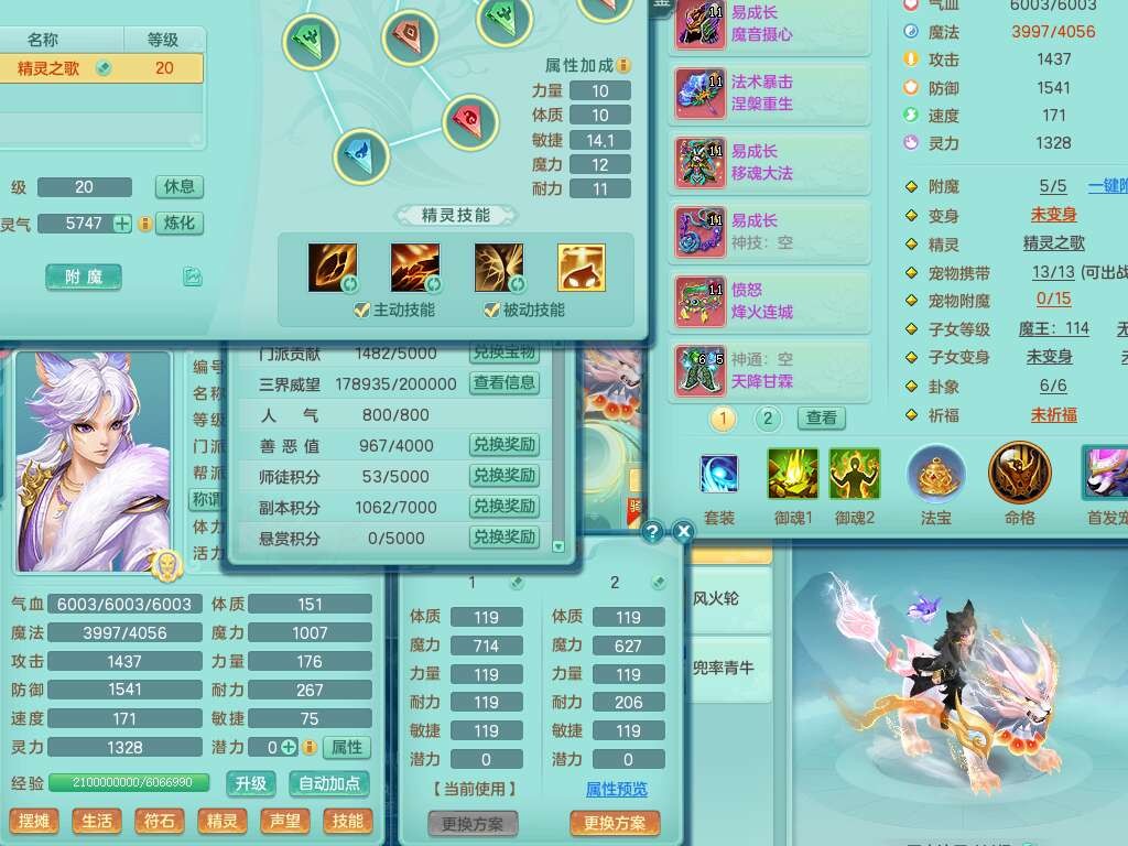 p22345花好月圆109男魔王,精灵歌,1龙没内,1神兽+35个神兽内丹碎片,4觉醒,易成长魔音摄心单加35头,法爆慈航单加31武器,易成长移魂大法单加39衣服,176易成长单加36链子,愤怒烽火单加30腰带,有易成长五雷单加鞋子,物理有595狂暴武器,神佑单加30链子,坚毅单加36链子,迅捷单加37鞋子,装备超多,3.0基础鼎+42攻+168血,2个五字,13只满果子,宠排在榜,双人坐骑。➕109女万兽,精灵歌,1神兽,易成长愈气诀单加35头,591必杀单加35武器,易成长破血衣服,神佑链子,易成长群体迟滞单加36腰带,易成长回气术单加38鞋子,有605易成长单加35武器,3.0基础鼎。