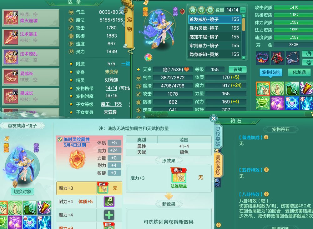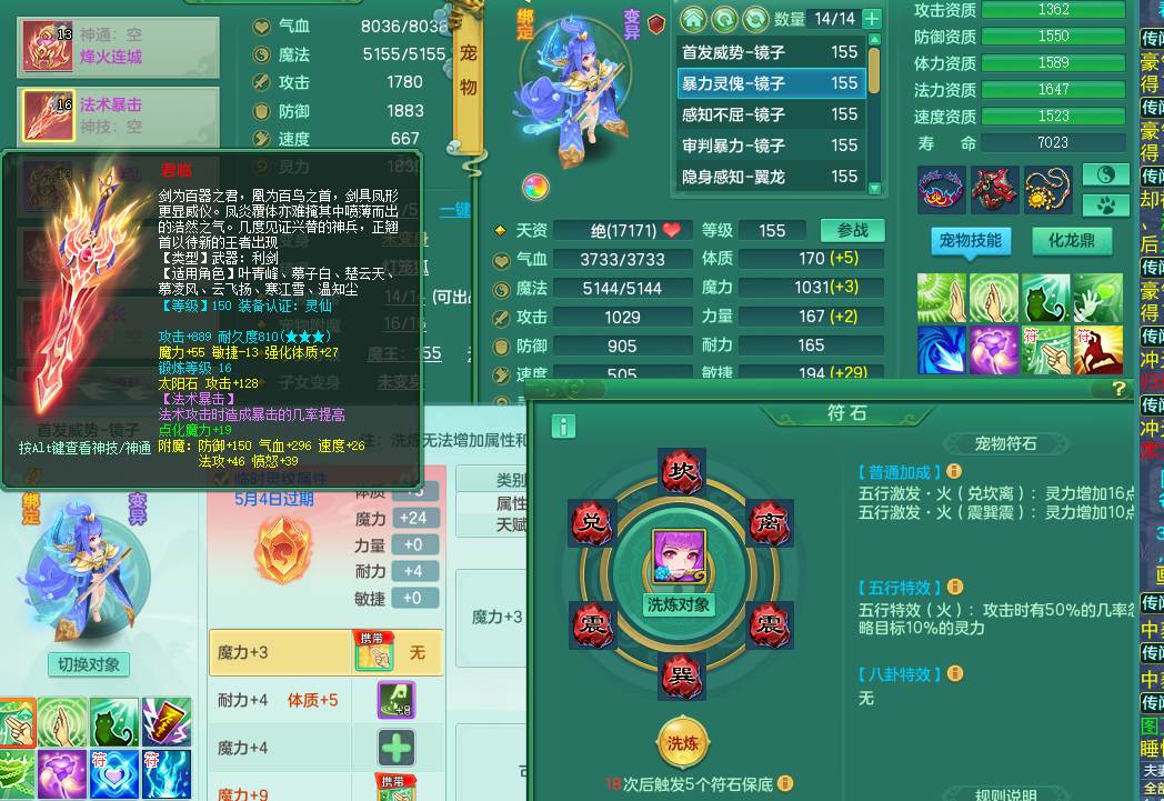 jt10432九天揽月159法FC 潜龙 可改密有双重介意勿扰2龙1内精灵歌 4位绝版靓号不含4 龙都带内丹4个镜子 缭乱+四海鞋 缭乱衣服 法爆武器 上手服战 法爆8.7群法伤13 七个觉醒七个纯6字