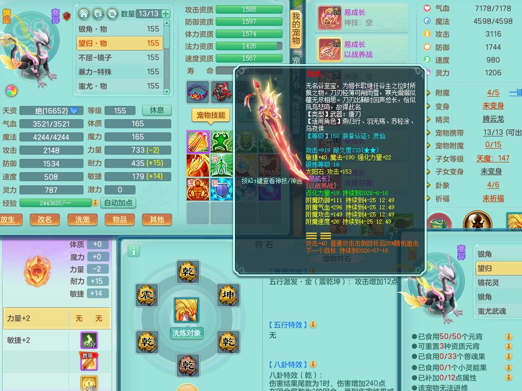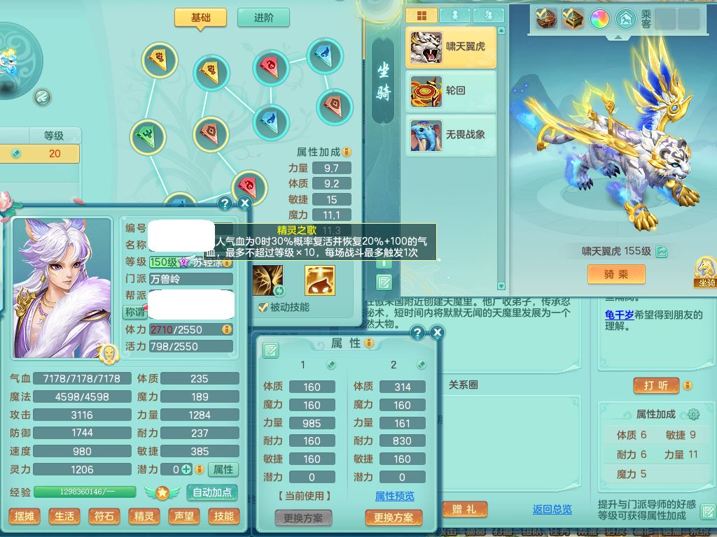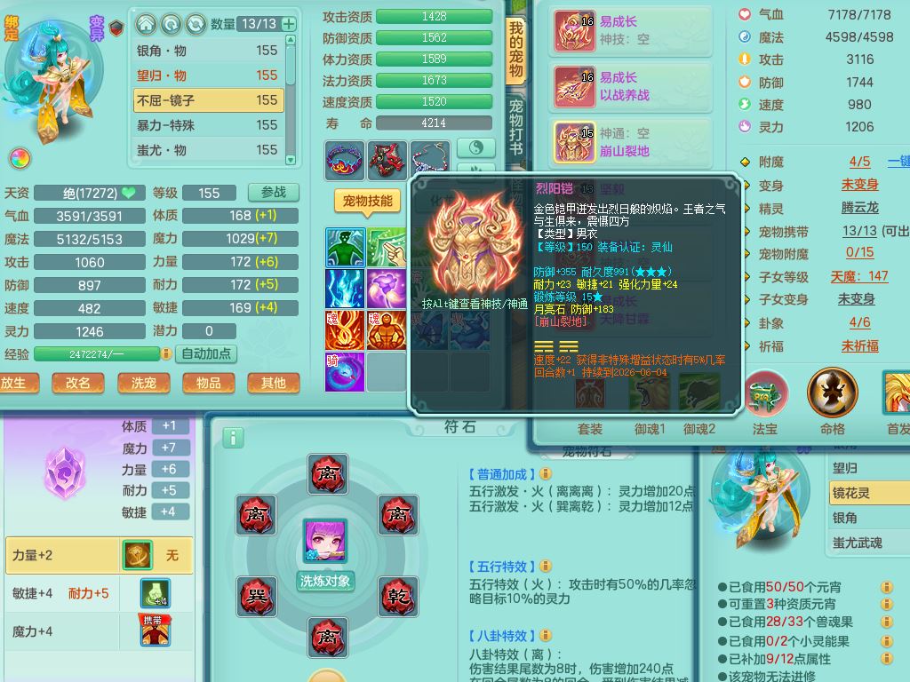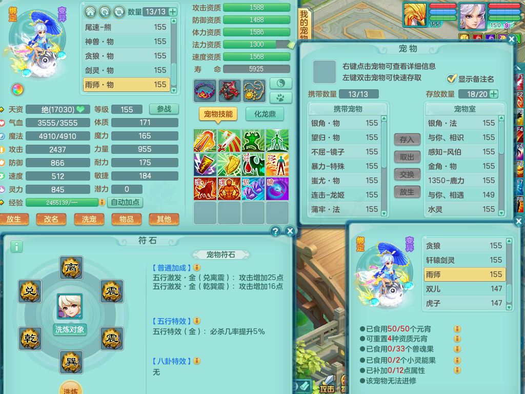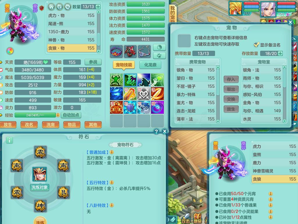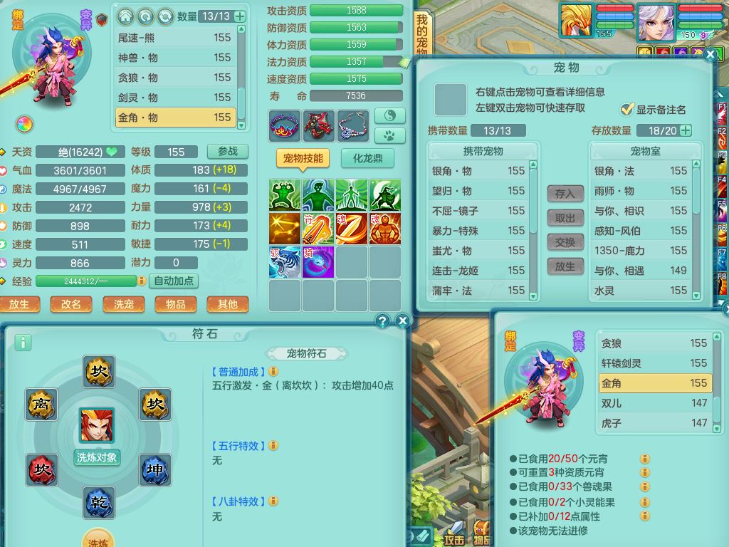 tx10431天下无双159男万兽精灵歌,1神兽(无内)1特殊(冲锋)1镜花1龙姬,1觉醒1个纯6字,8红,919Y以战武器,Y头,崩山衣服,坚毅项链,Y四海鞋,鼎4.0,16仙兽灵,飞行双人坐骑,带150奶粉魔王,支持7天换绑