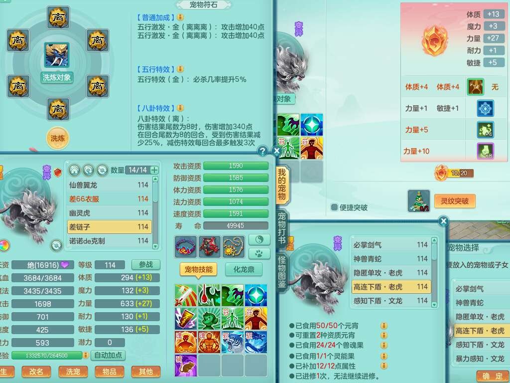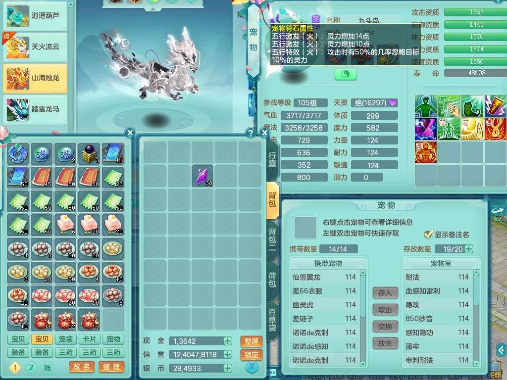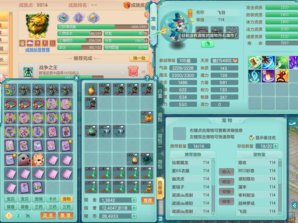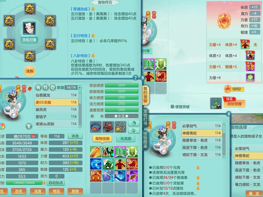 J22357风驰电掣109男力天宫,1龙1内胆神,1破镜,9只觉醒(潜龙条件化龙鼎满足,符石差2个附加属性,宠物1只满足),4宠皮,615必杀单加武器,匠心破血单加腰带,有愤怒玉清腰带,愤怒群体守备腰带,可玩辅助愤怒六特,2.5基础鼎+42攻+168血,3个纯六字,2个5字,16只满果子,宠排在榜,背包38神兽内胆碎片,3个黑白染色坐骑,月卡还有62天。➕109女无名谷,精灵歌,1神兽+36神兽内胆碎片,4只觉醒。