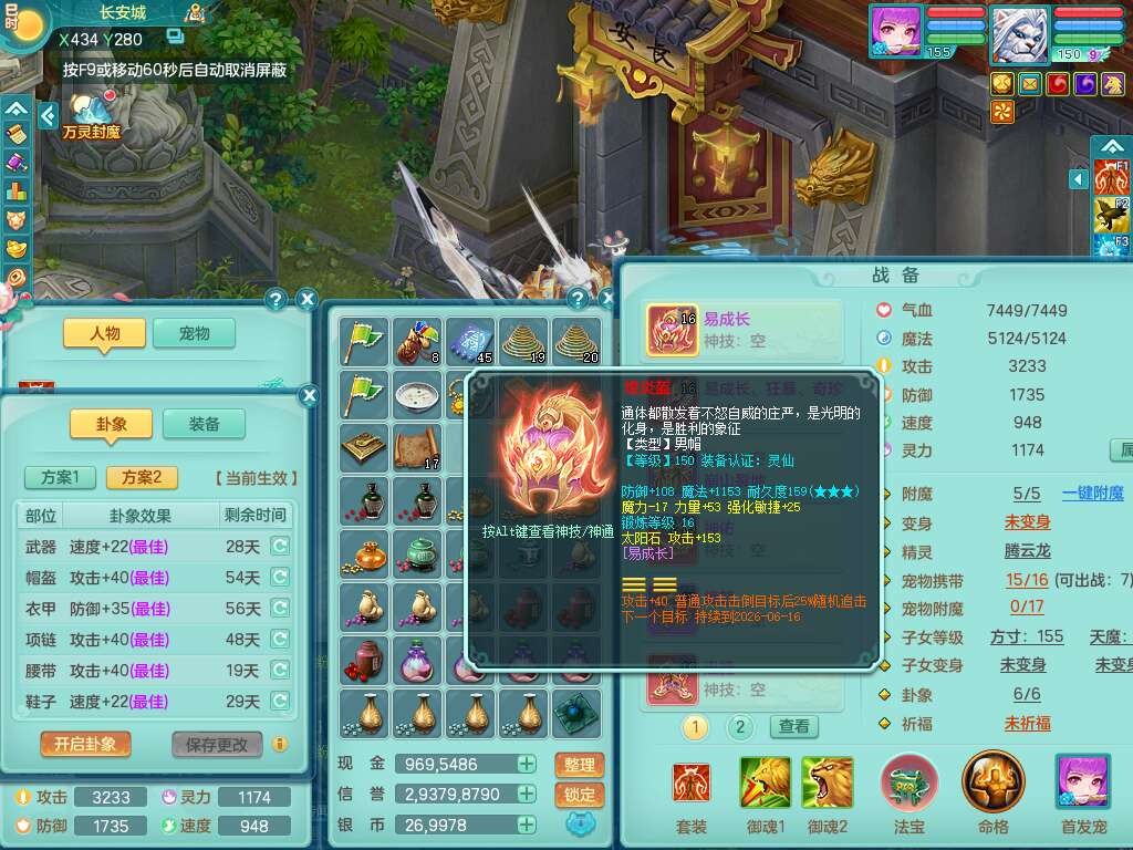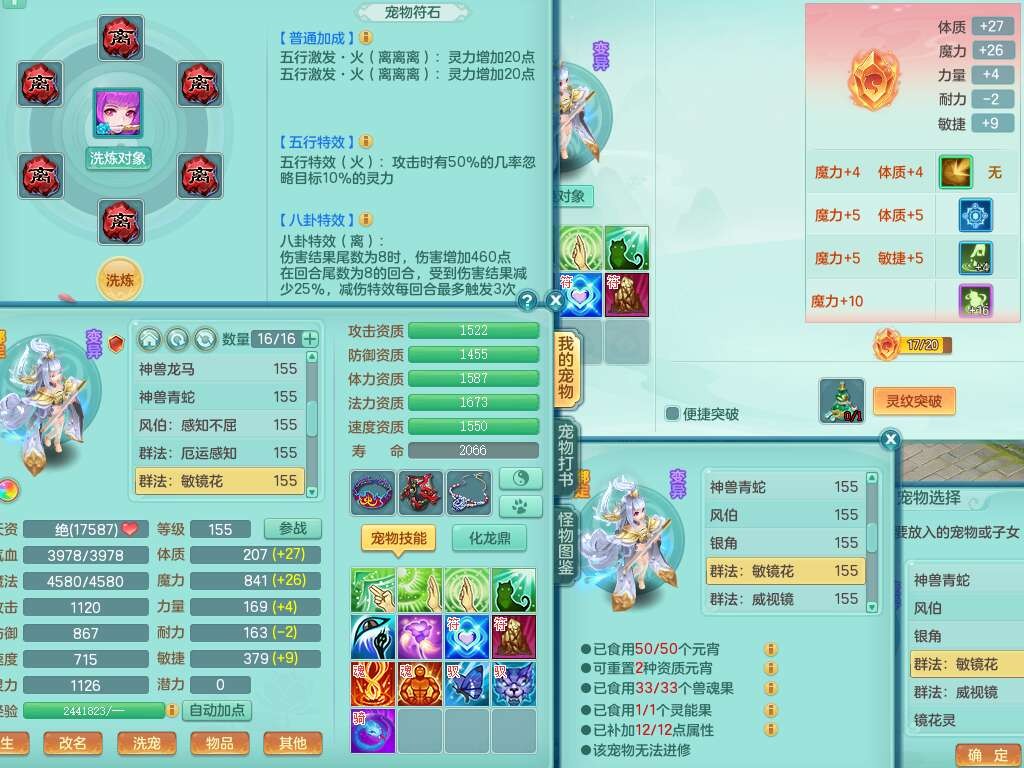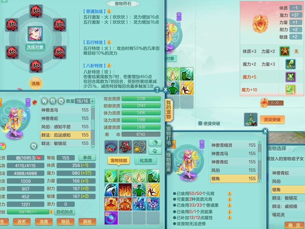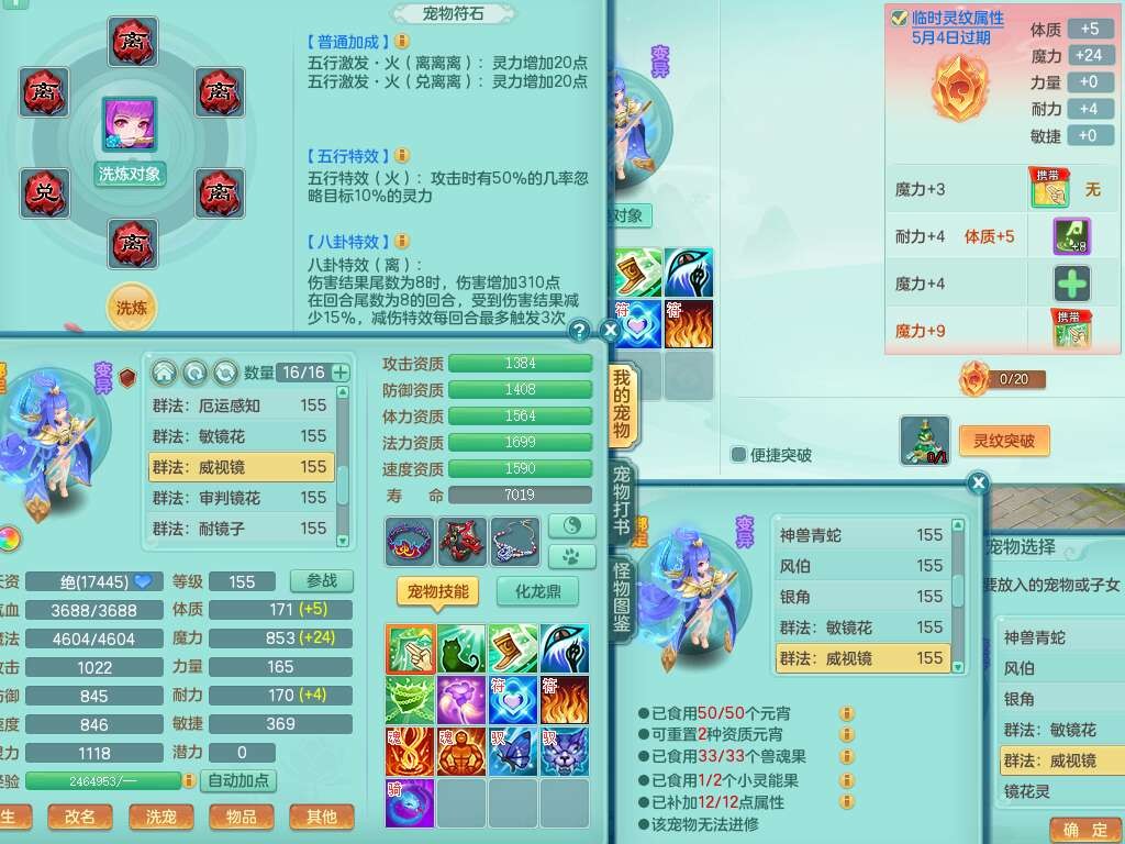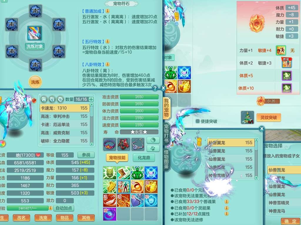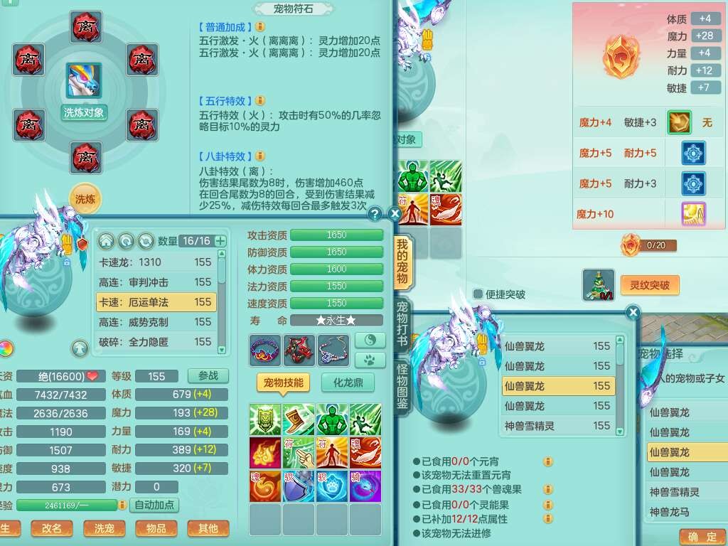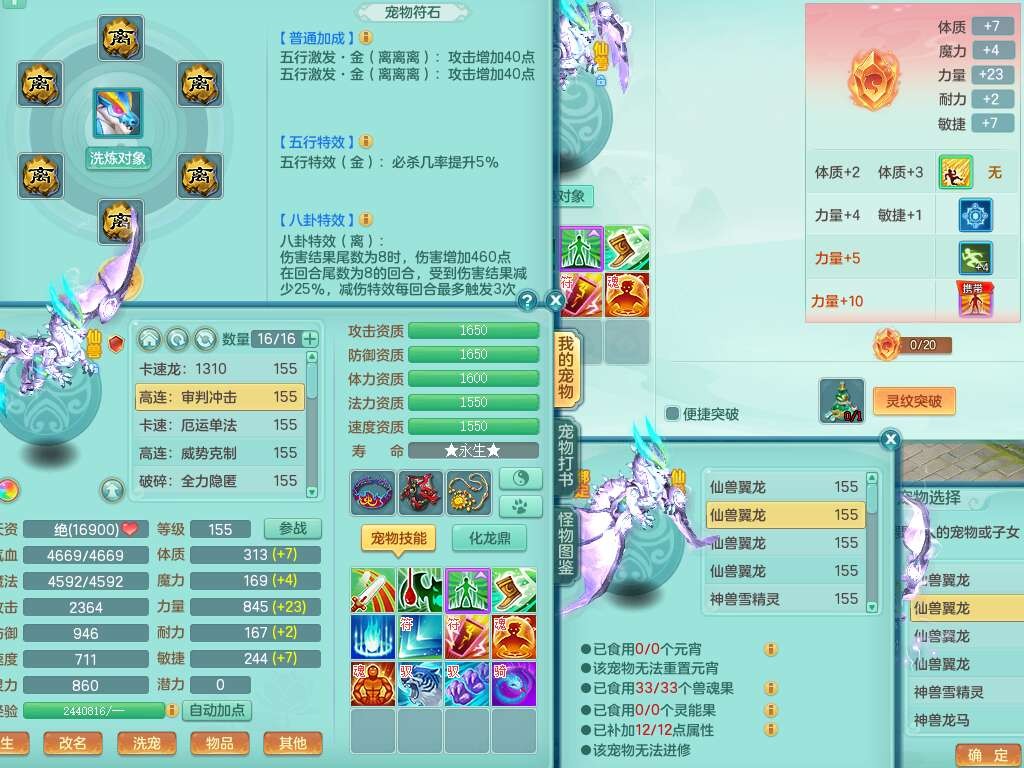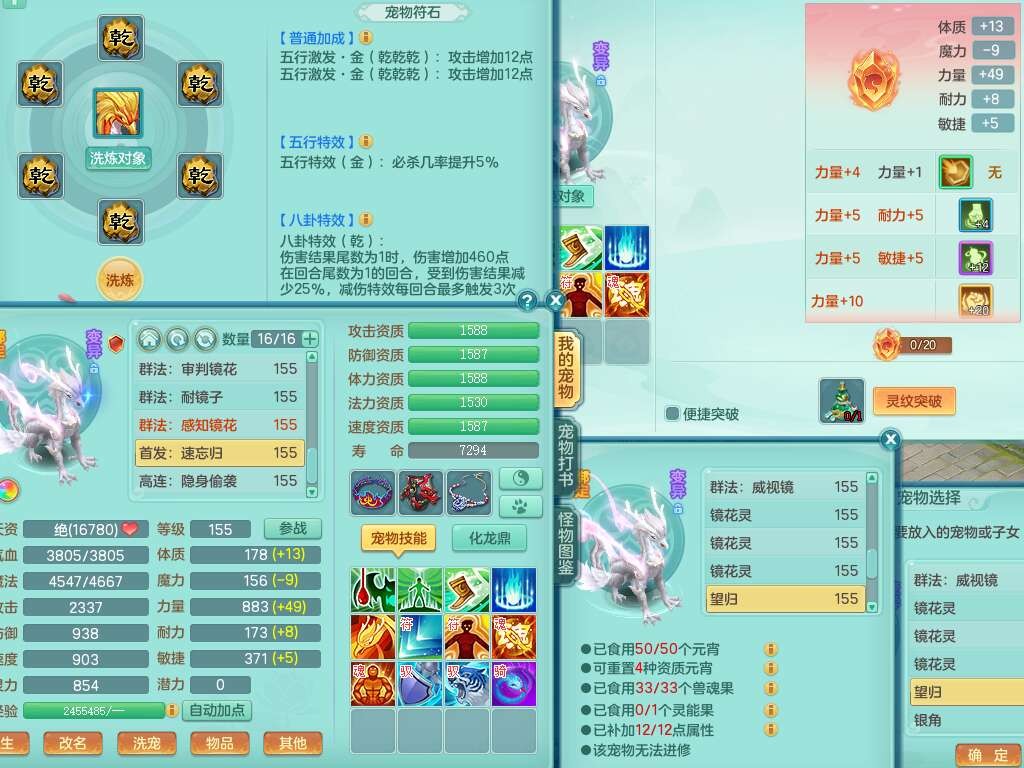 J22355少年游159男万兽,精灵歌,5龙(1龙无内),3内胆神,1破镜,【12只觉醒,已潜龙】,4位靓号不含4,6宠皮,1特殊(虎虎),5只六技能镜花灵,1只6技能龙姬,三红易成长狂暴奇珍武器,崩山裂地单加56衣服,神佑单加56链子,迅捷单加56鞋子,有易成长五雷单加55衣服,5.5基础鼎+70攻、280血,物理躲避10%,14个格子,9个纯六字,5个五字,21只满果子,宠排在榜,修炼在榜,3只坐骑,原始暴龙泰坦,月卡还有37天。