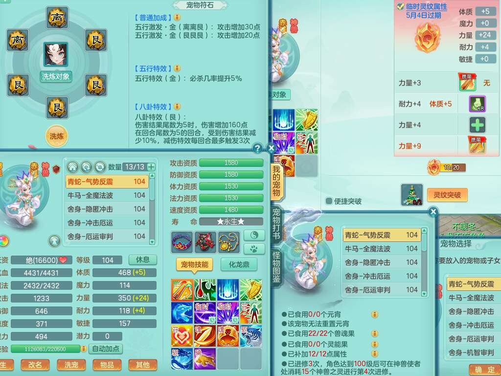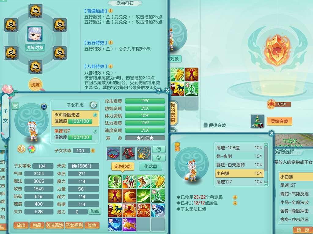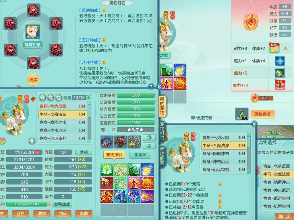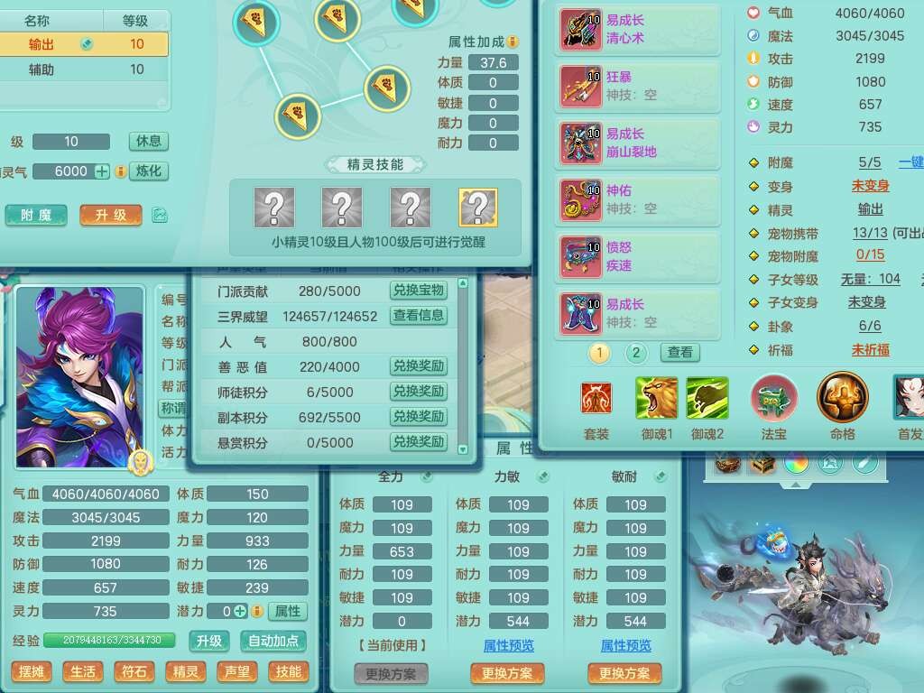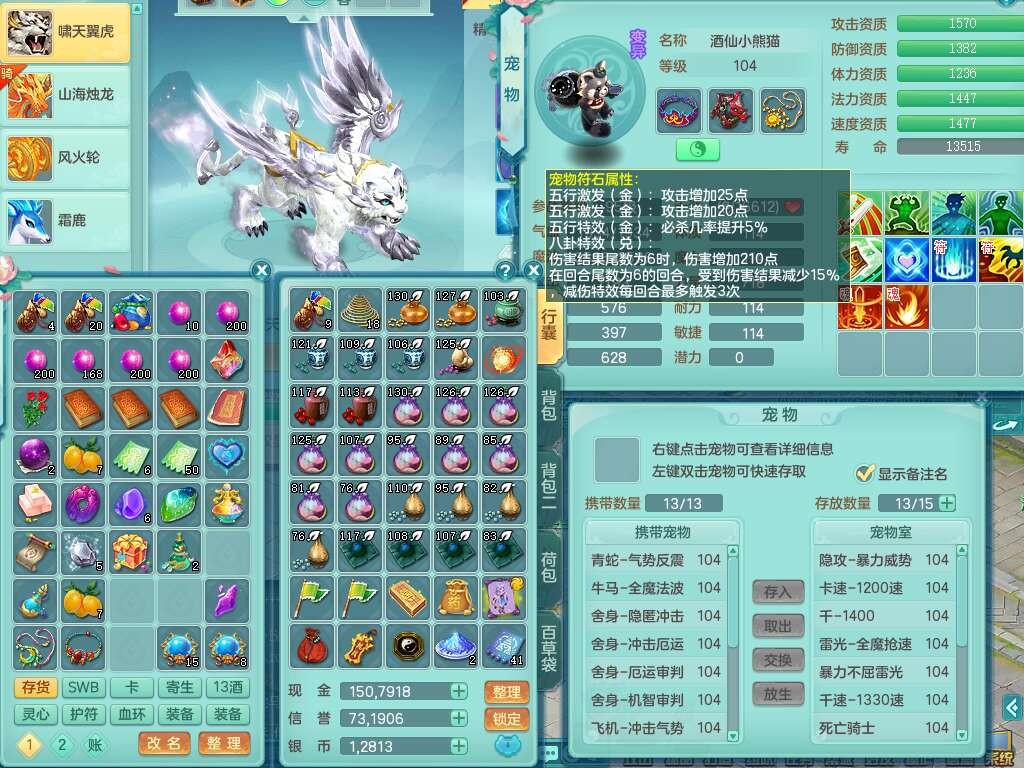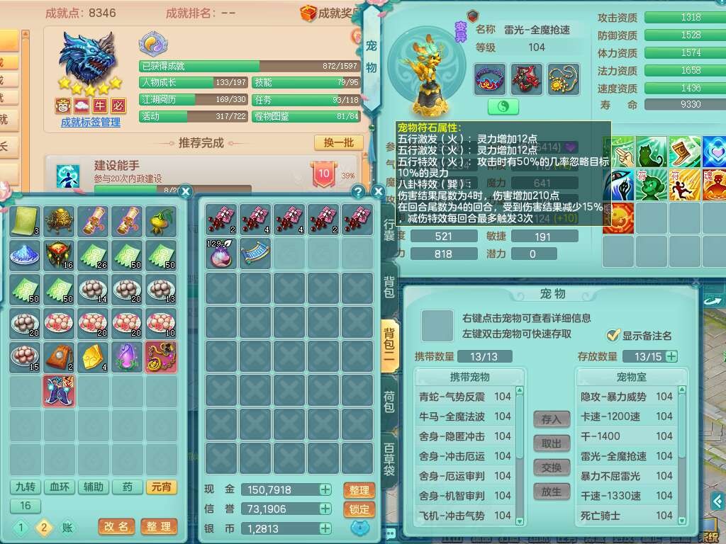 p22351风驰电掣99男万兽,2内胆神,4只觉醒,2套符石,556狂暴单加31武器,易成长崩山裂地衣服,神佑单加30链子,愤怒疾速单加腰带,易成长单加35鞋子,2套装备可玩愤怒六特,有162易成长疾速单加链子,五雷单加35鞋子,2.5基础鼎,17只满果子,3个坐骑,月卡还有51天。